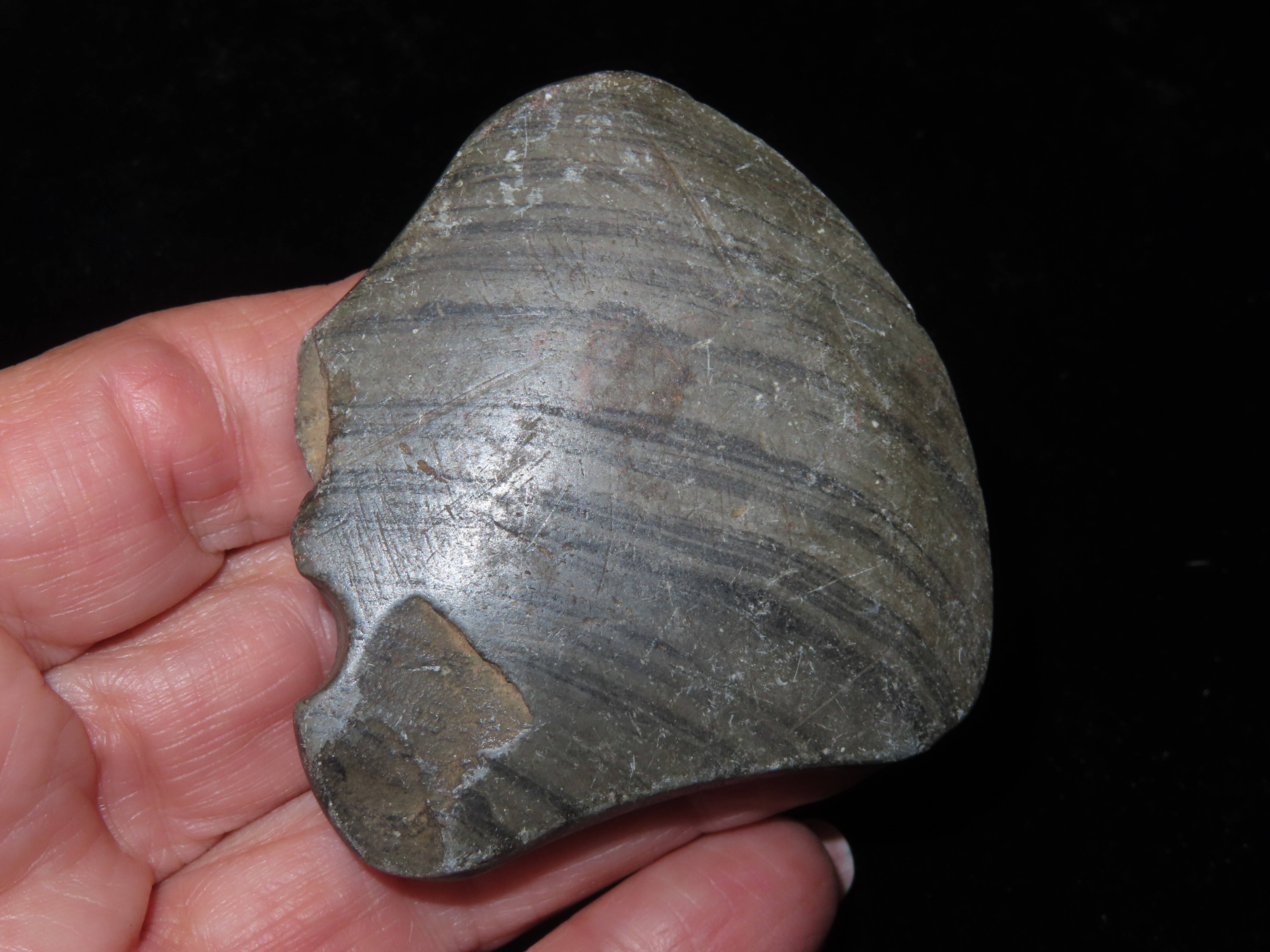 2″ Section of Banded Slate Bannerstone, found in Adams Co., Illinois