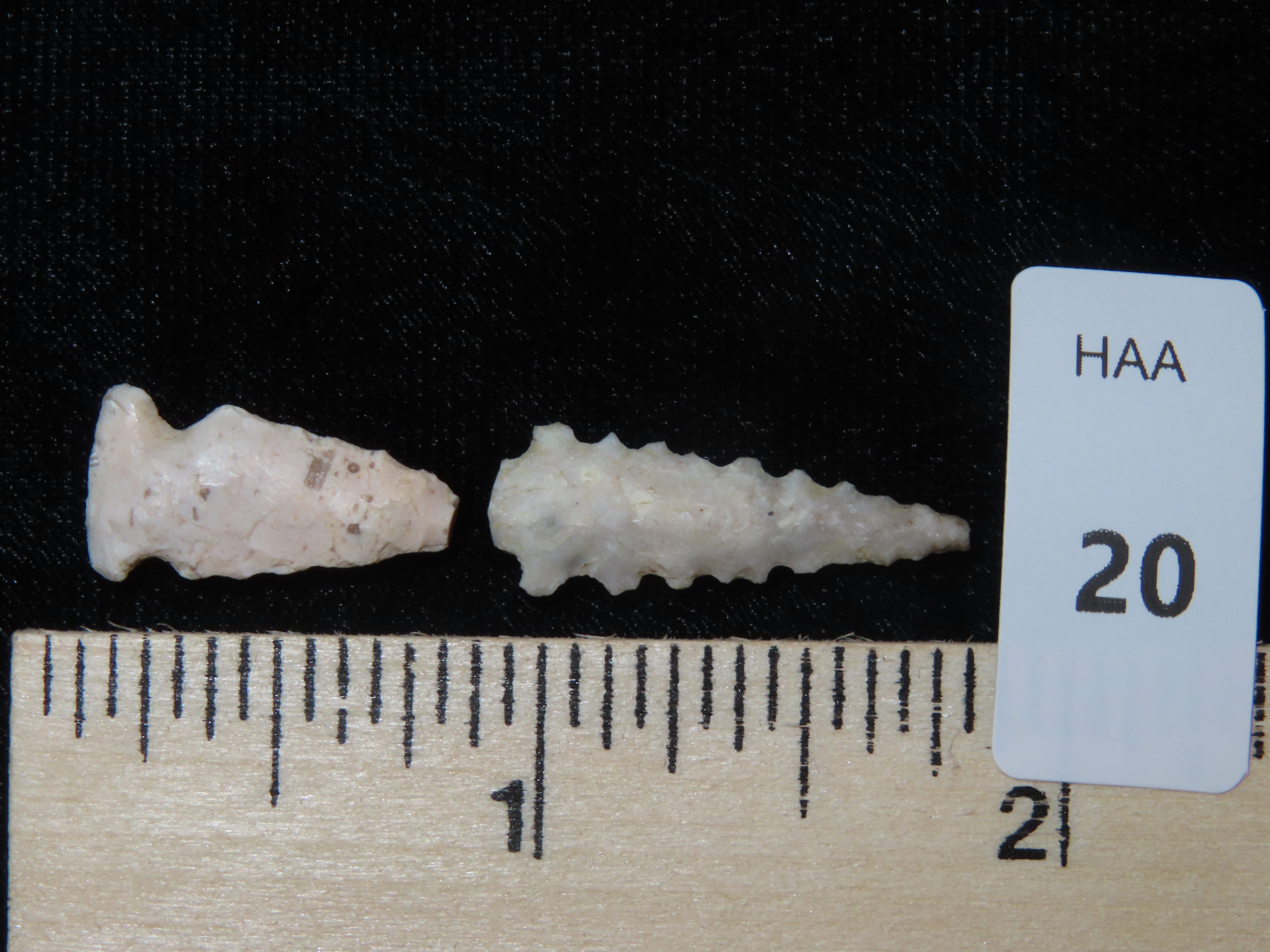 Lot of 2 Birdpoints, longest 1″, found by Eric Emanual Near Columbia, Missouri