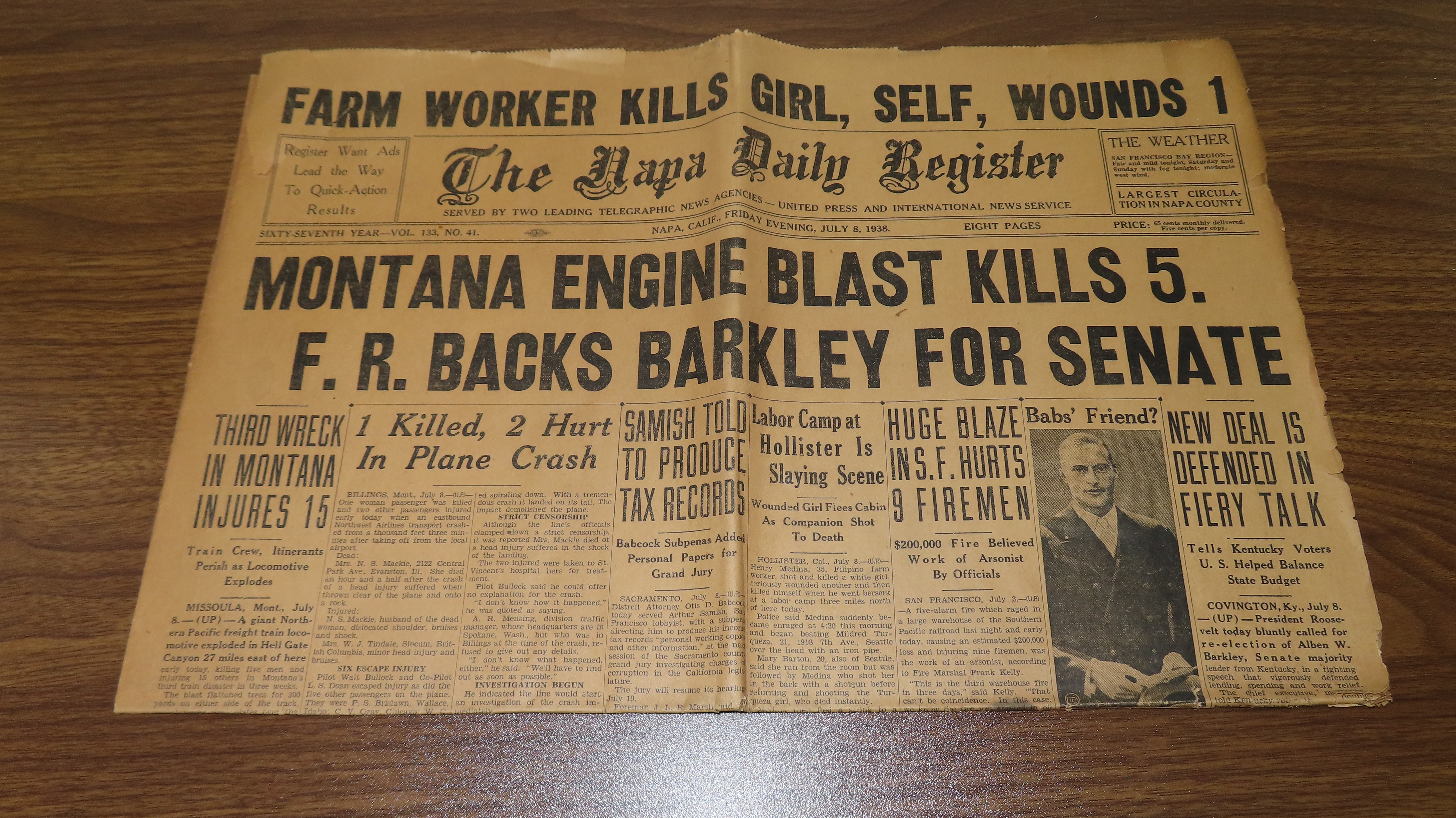The Napa Daily Register, Napa California Newspaper from Friday evening, July 8,1938