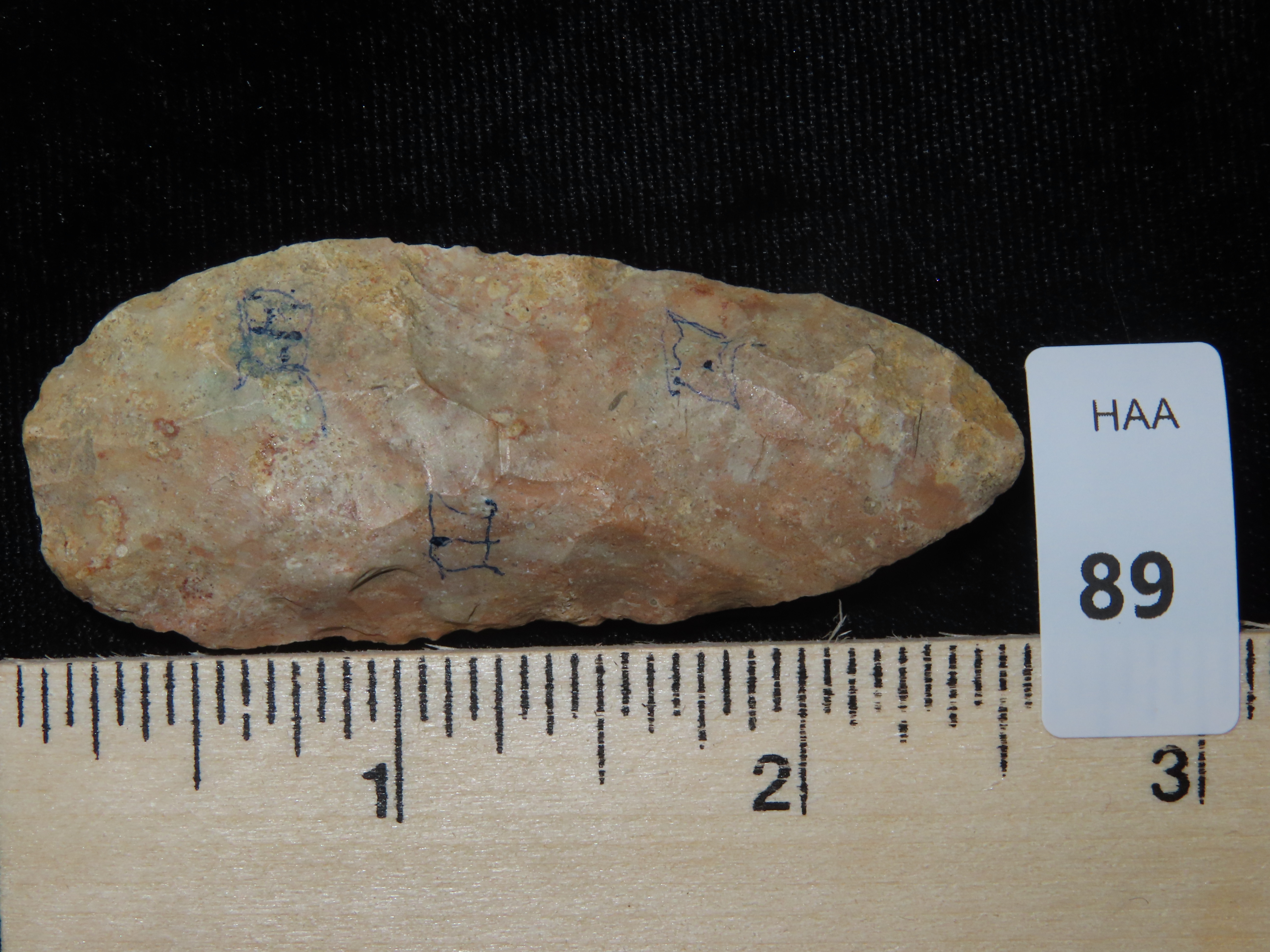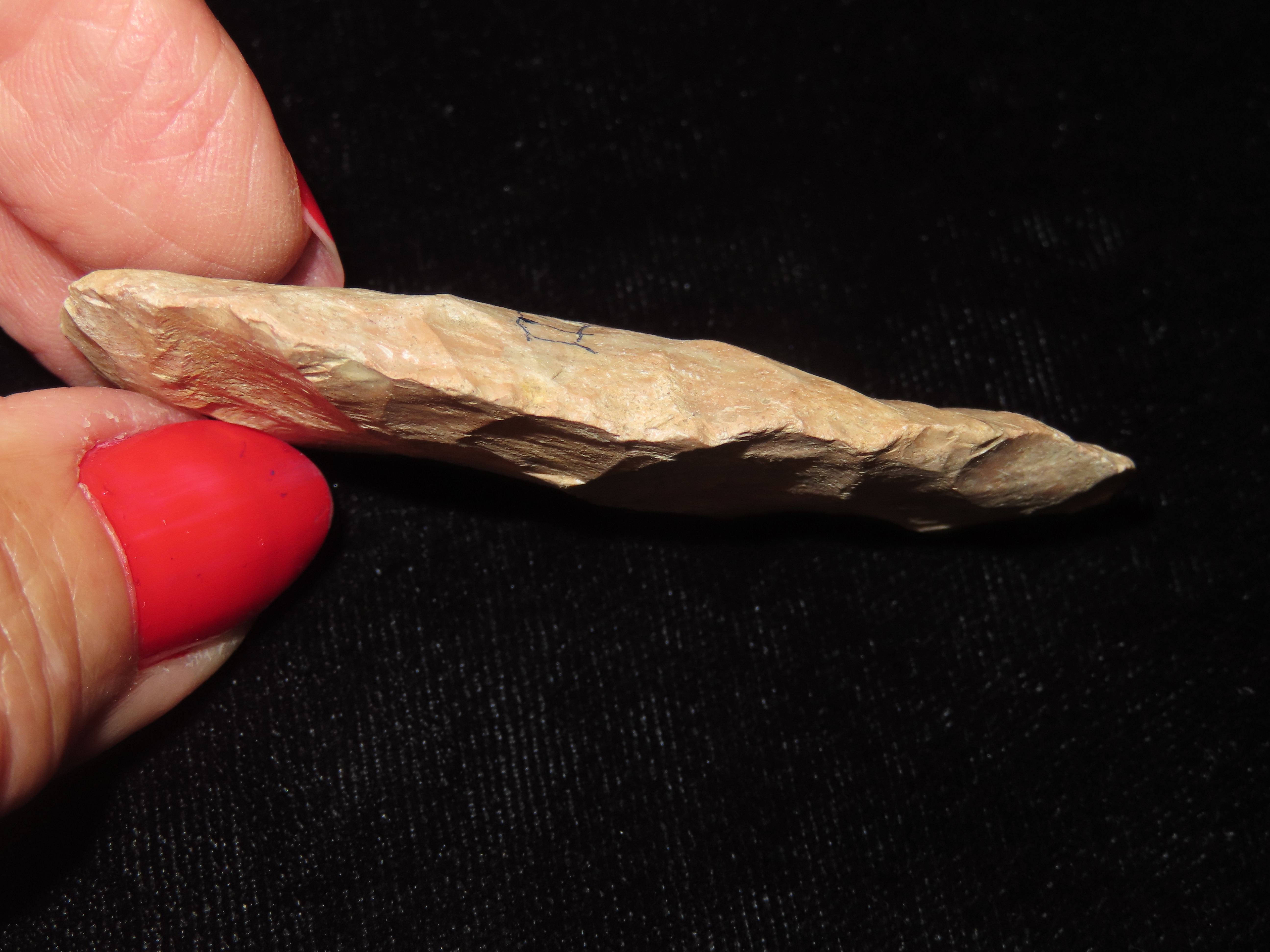 2 3/8″ Adena Blade, found by Delbert Roush, Scott Co., Illinois