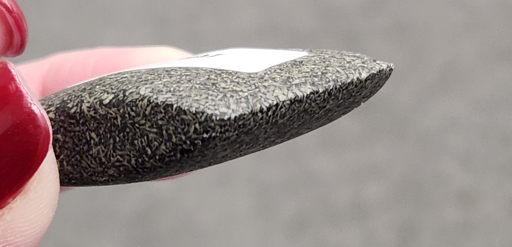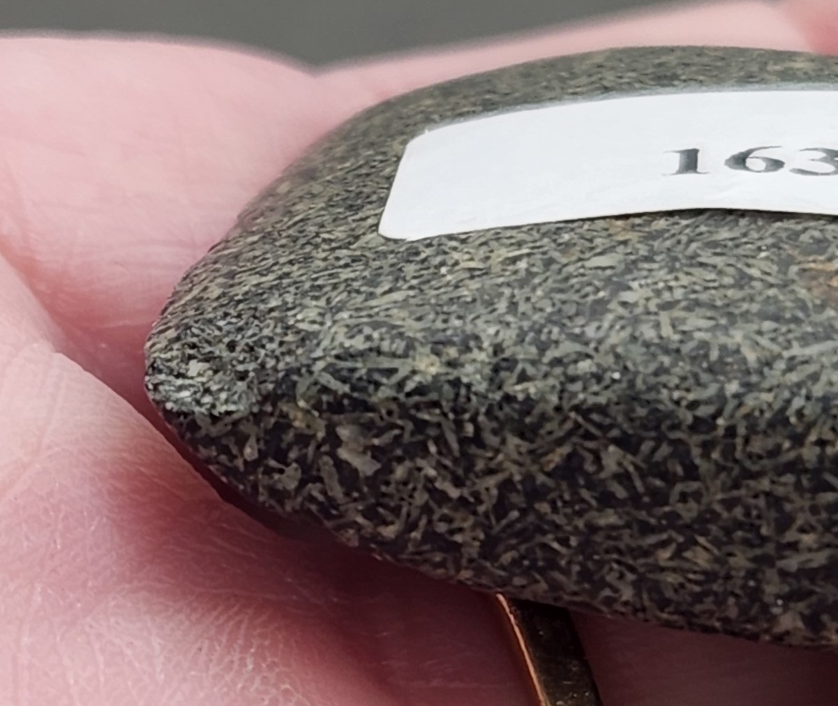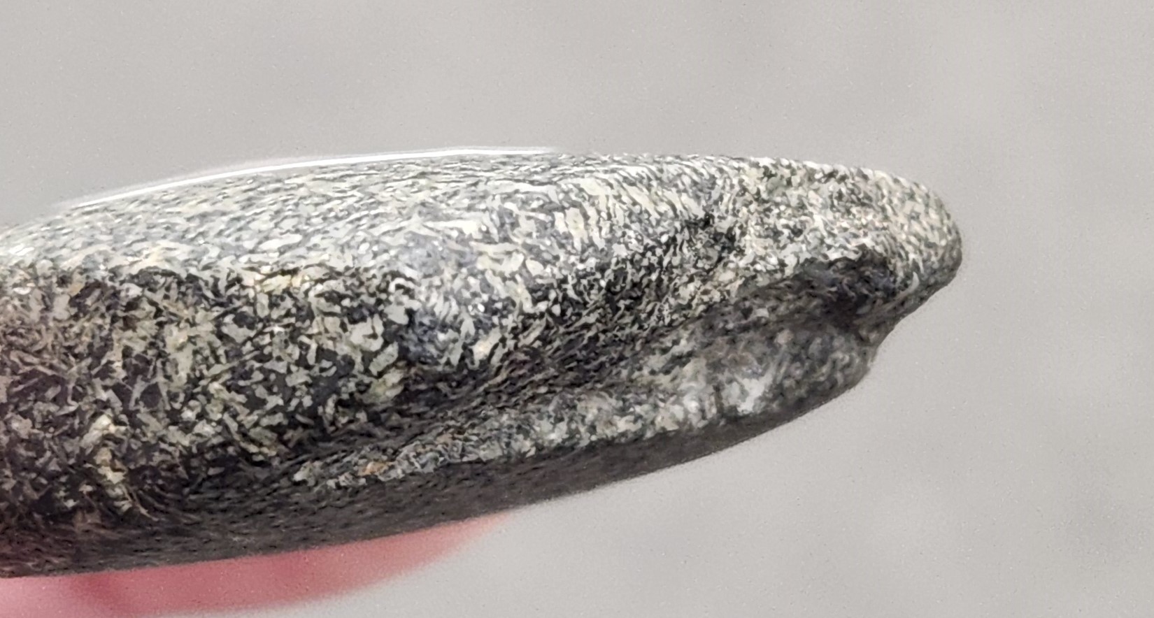AMAZING 1 11/16" MINIATURE CELT / ADZE, ADAMS COUNTY ILLINOIS, BEAUTIFUL WIREY GRANITE, NICELY SQUARED SIDES, OUTSTANDING POLISH