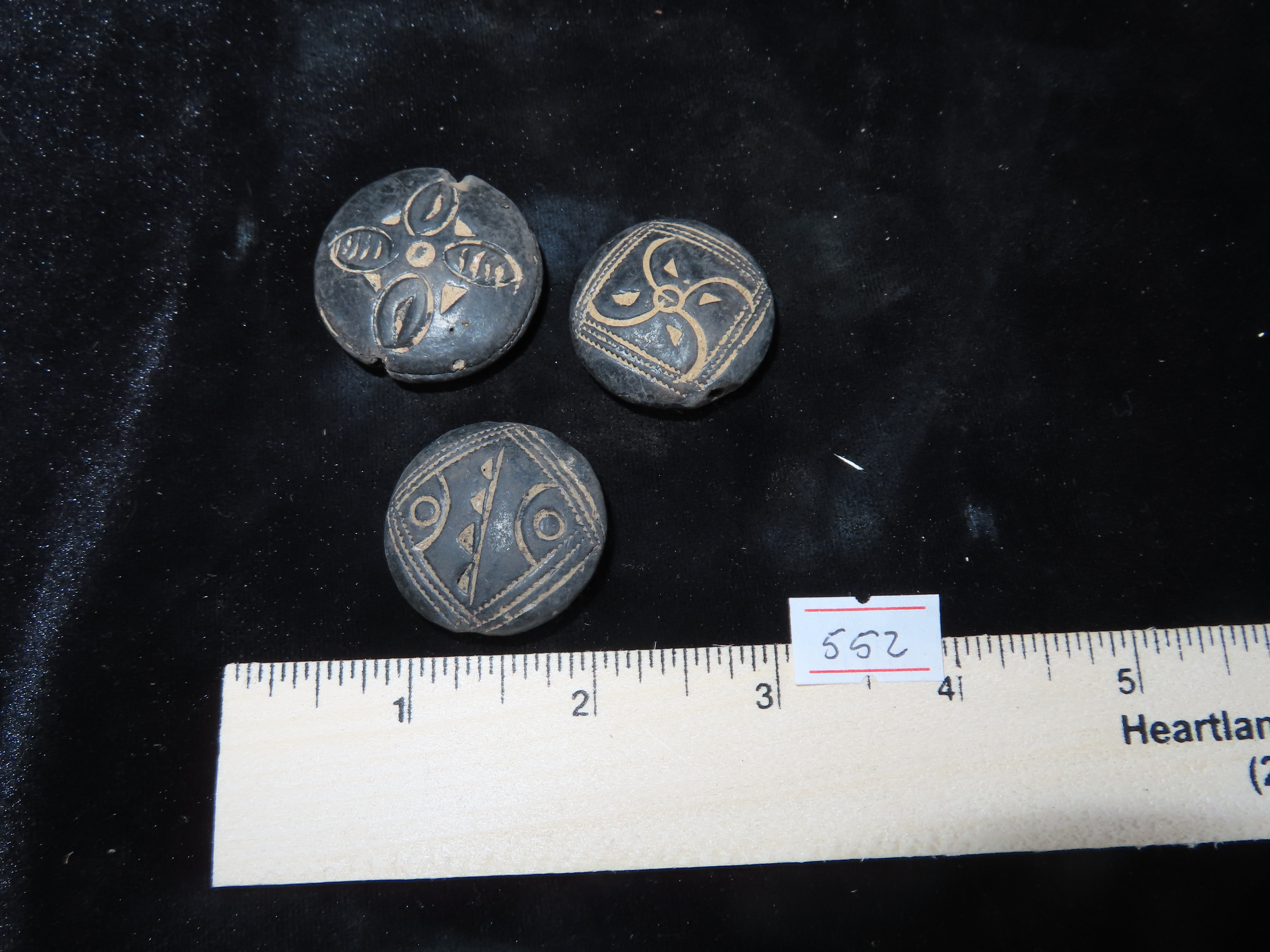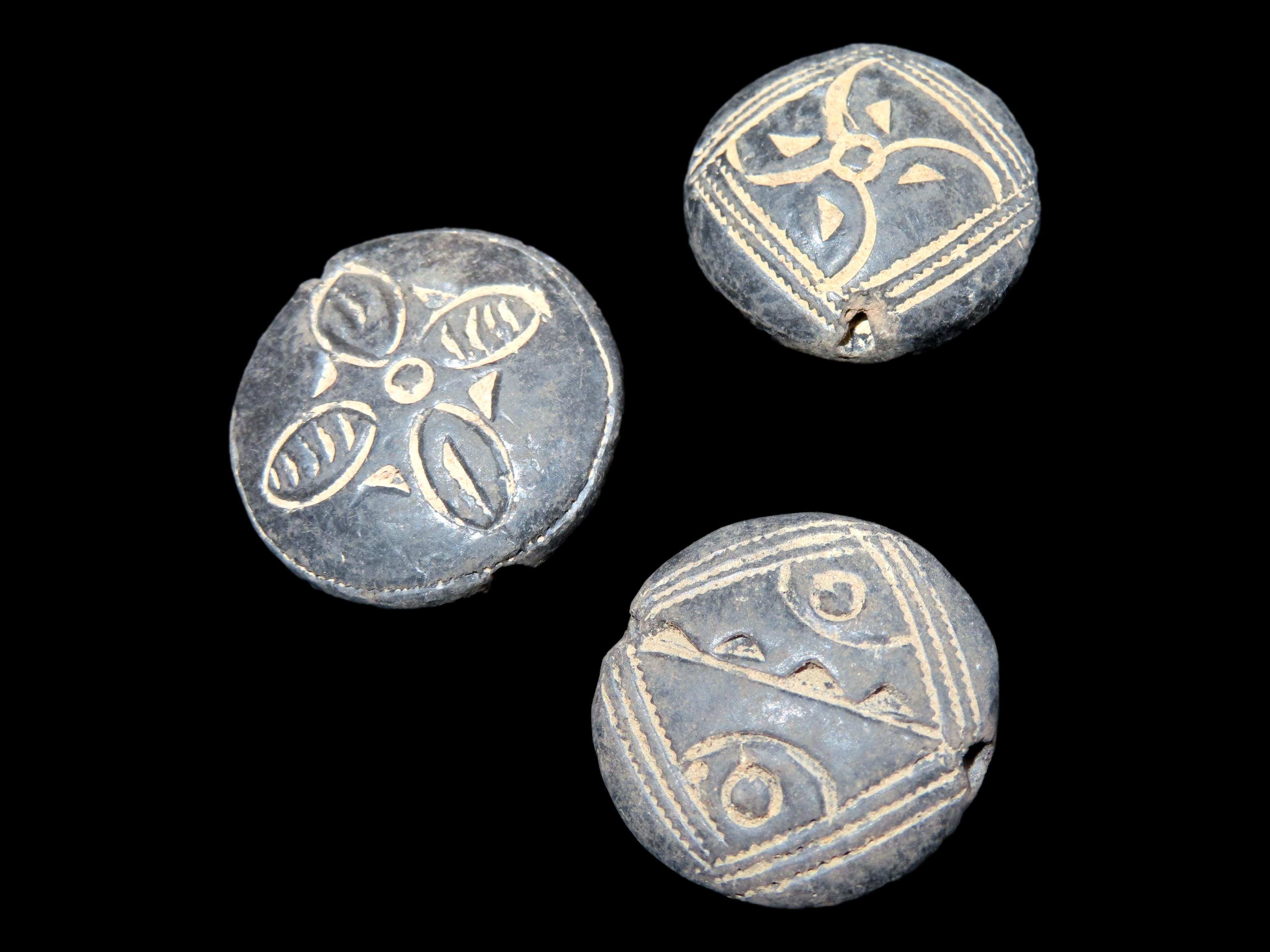 3 Pottery Clay Beads Engraved Neolithic, Africa