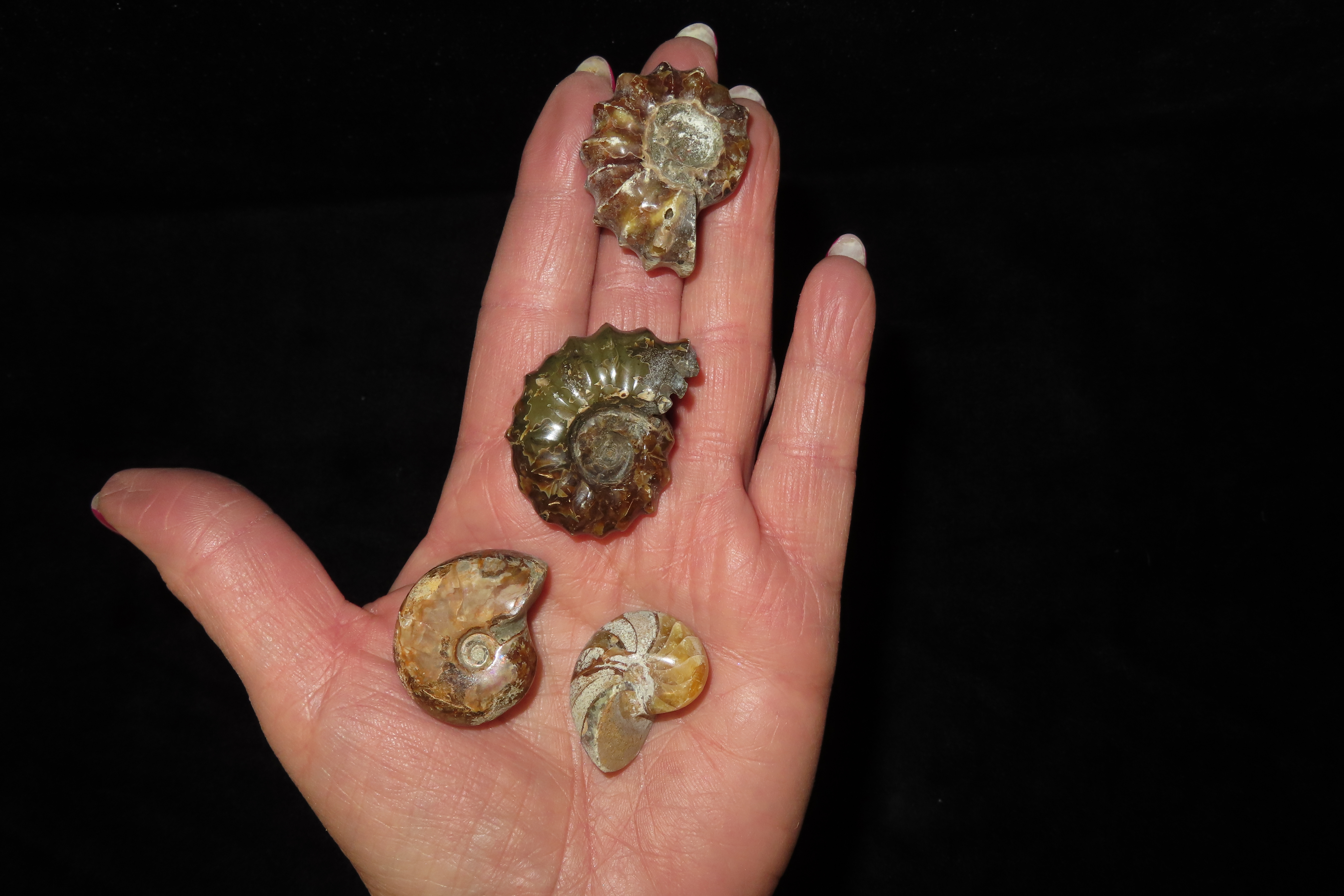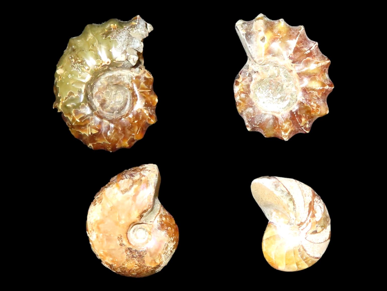 Group of 4x Tractor Ammonites & Nautilus Fossils. Largest is 1 1/2″.Auctioning as Authentic & Unaltered