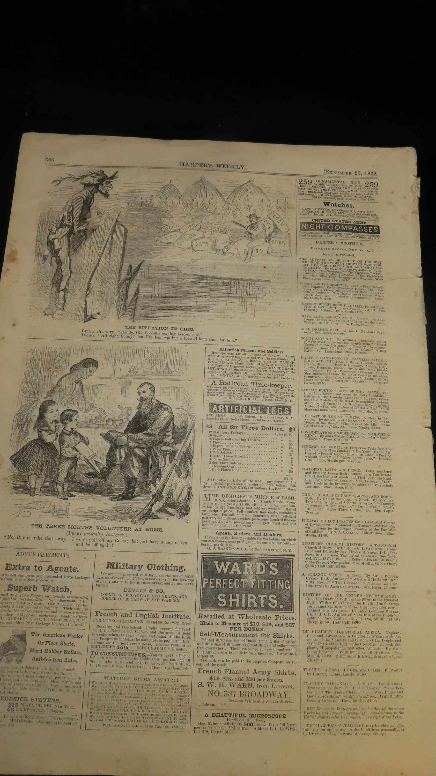 Sept 1862 Harpers Weekly Paper. Complete 14 pages.Auctioning as Authentic & Unaltered