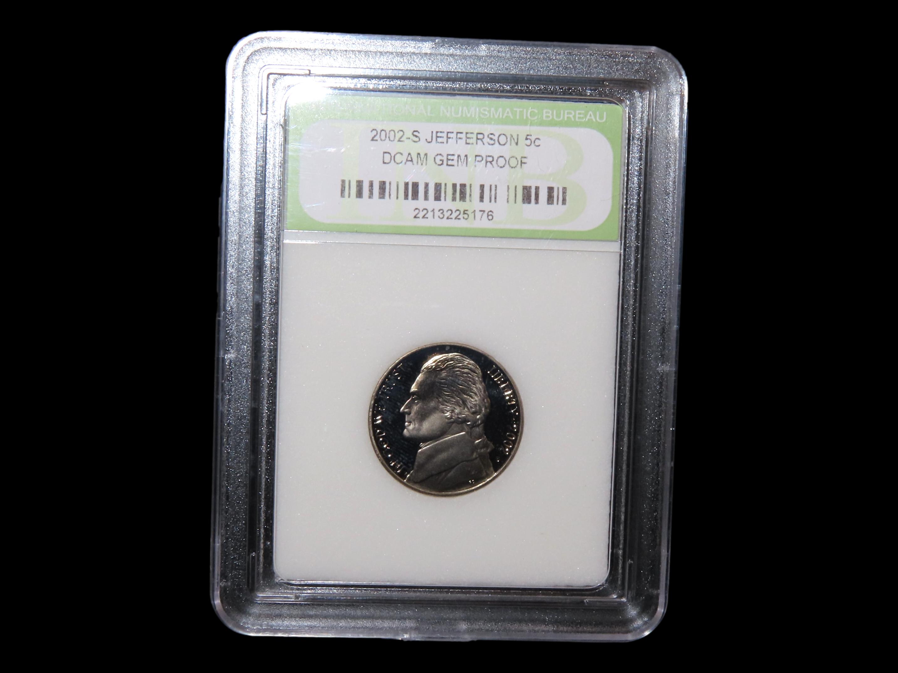INB Slabbed Deep Cameo Gem Proof 2002-S Jefferson Nickel.Auctioning as Authentic & Unaltered