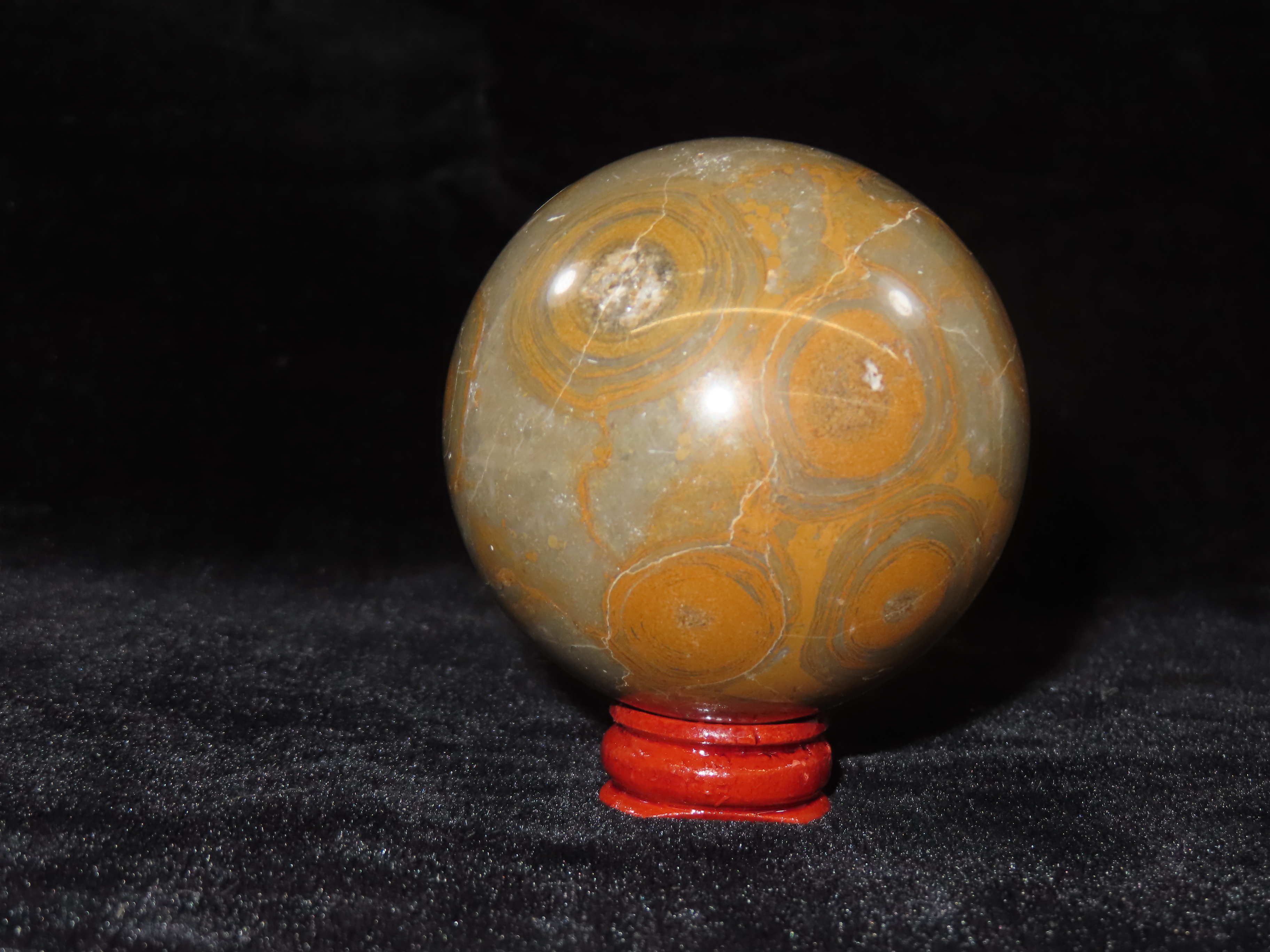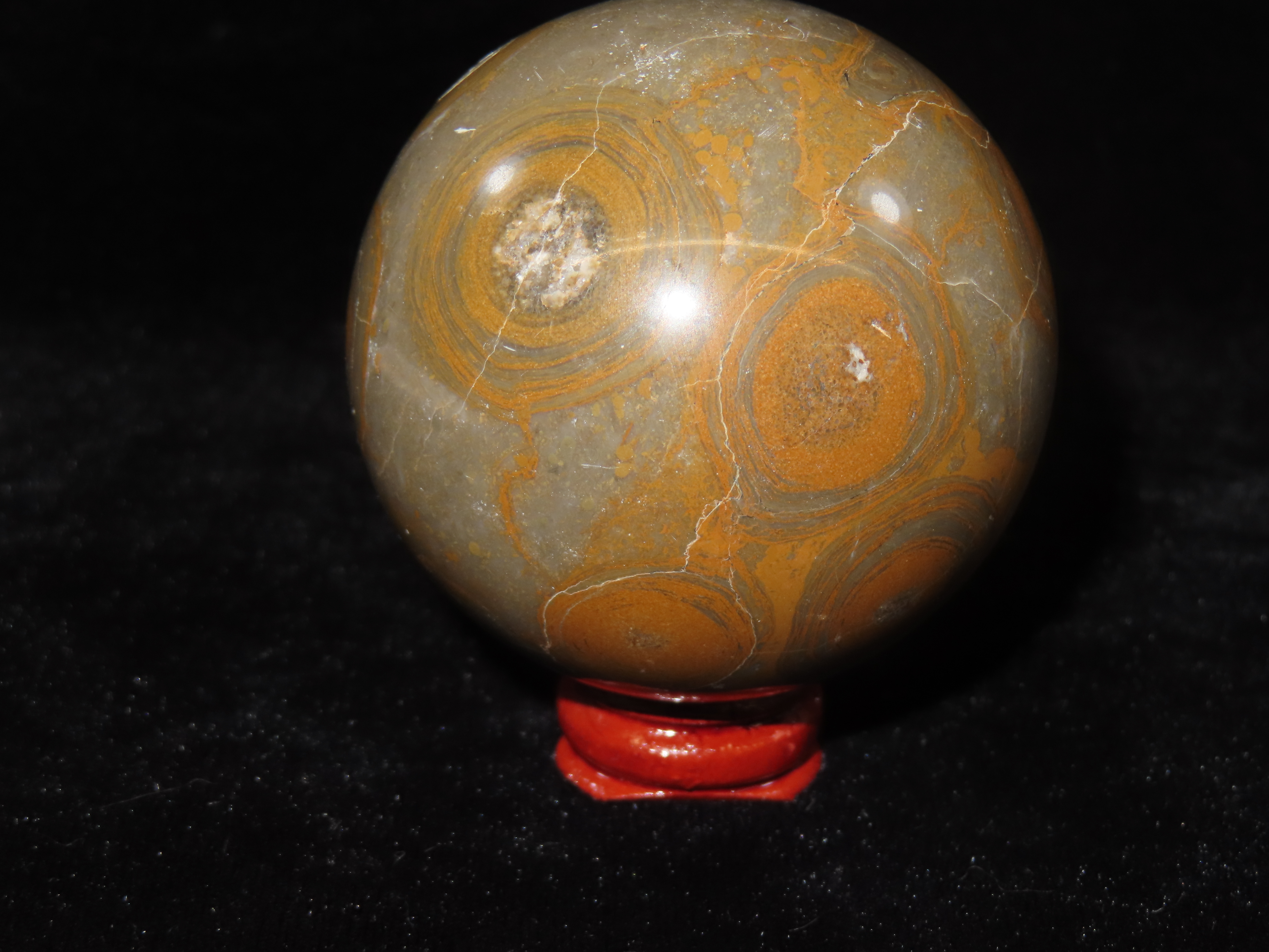 Unique, Uncommon Coloration, Ocean Jasper Sphere. 2 1/2″ Diameter.Auctioning as Authentic & Unaltered