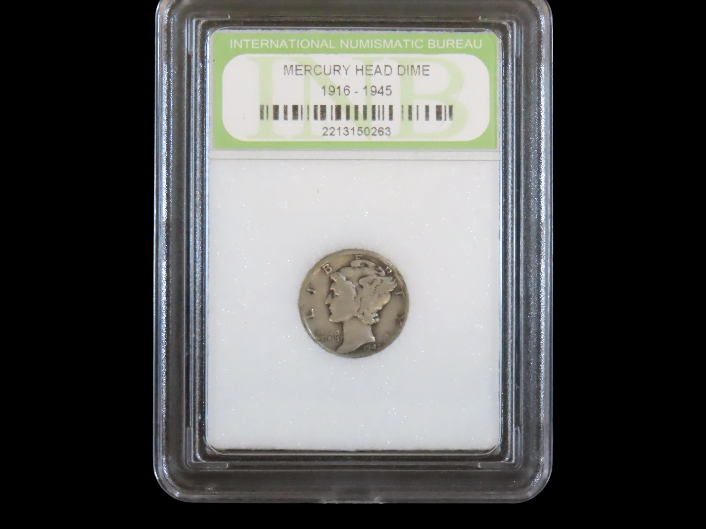 INB Slabbed Silver Mercury Dime.Auctioning as Authentic & Unaltered