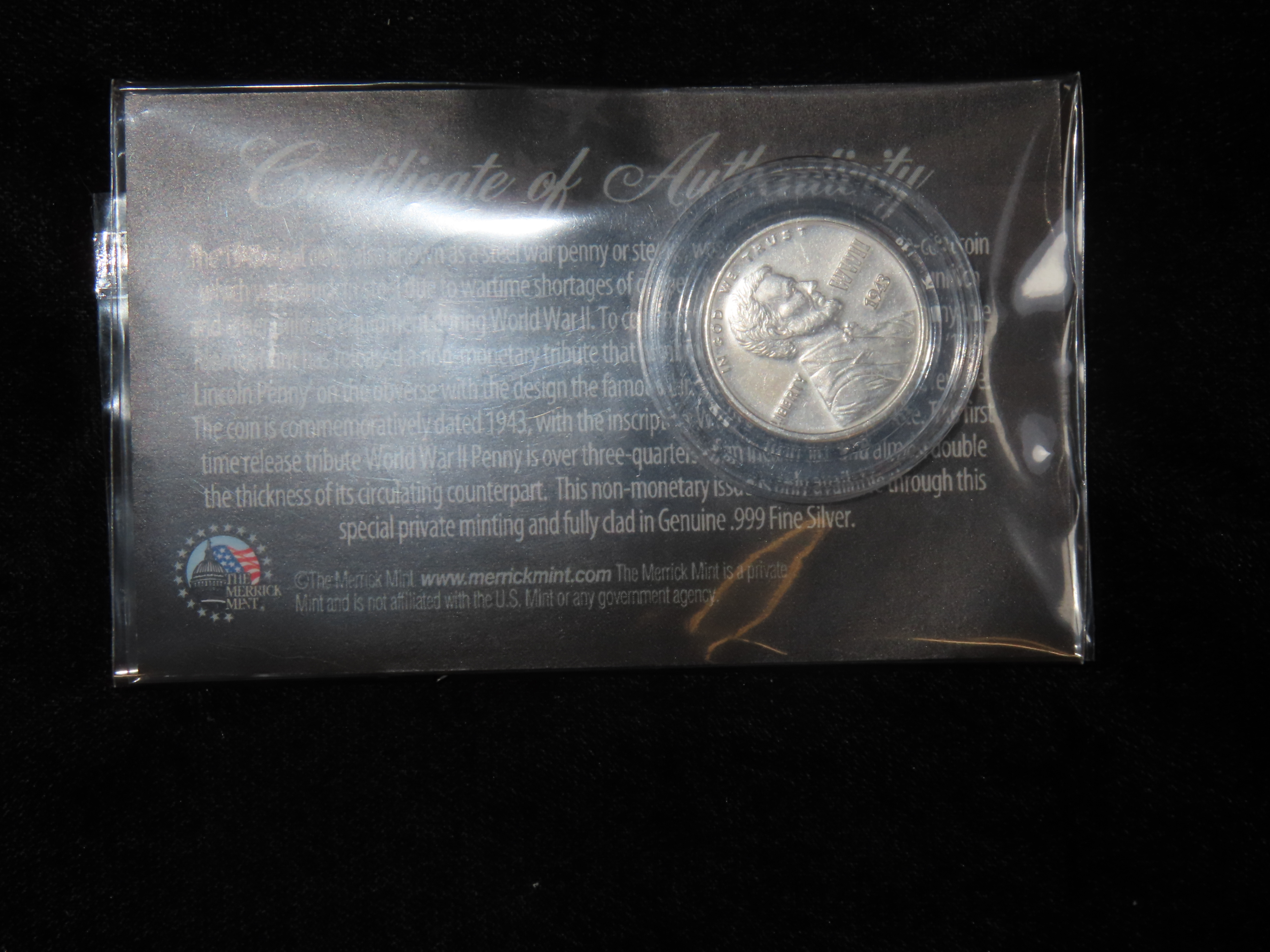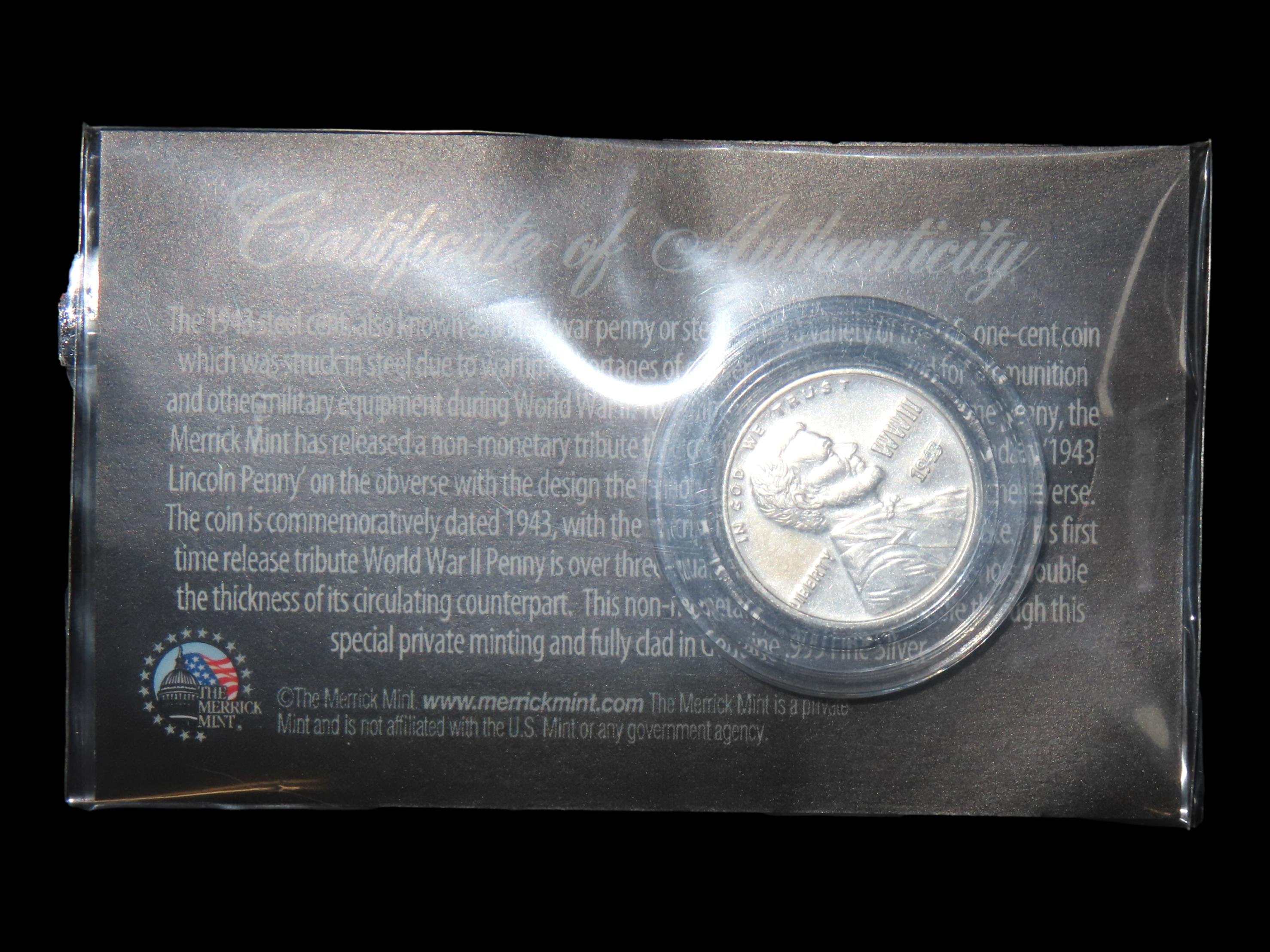 1943 World War II Tribute Silver Clad Penny. Encapsulated.Auctioning as Authentic & Unaltered