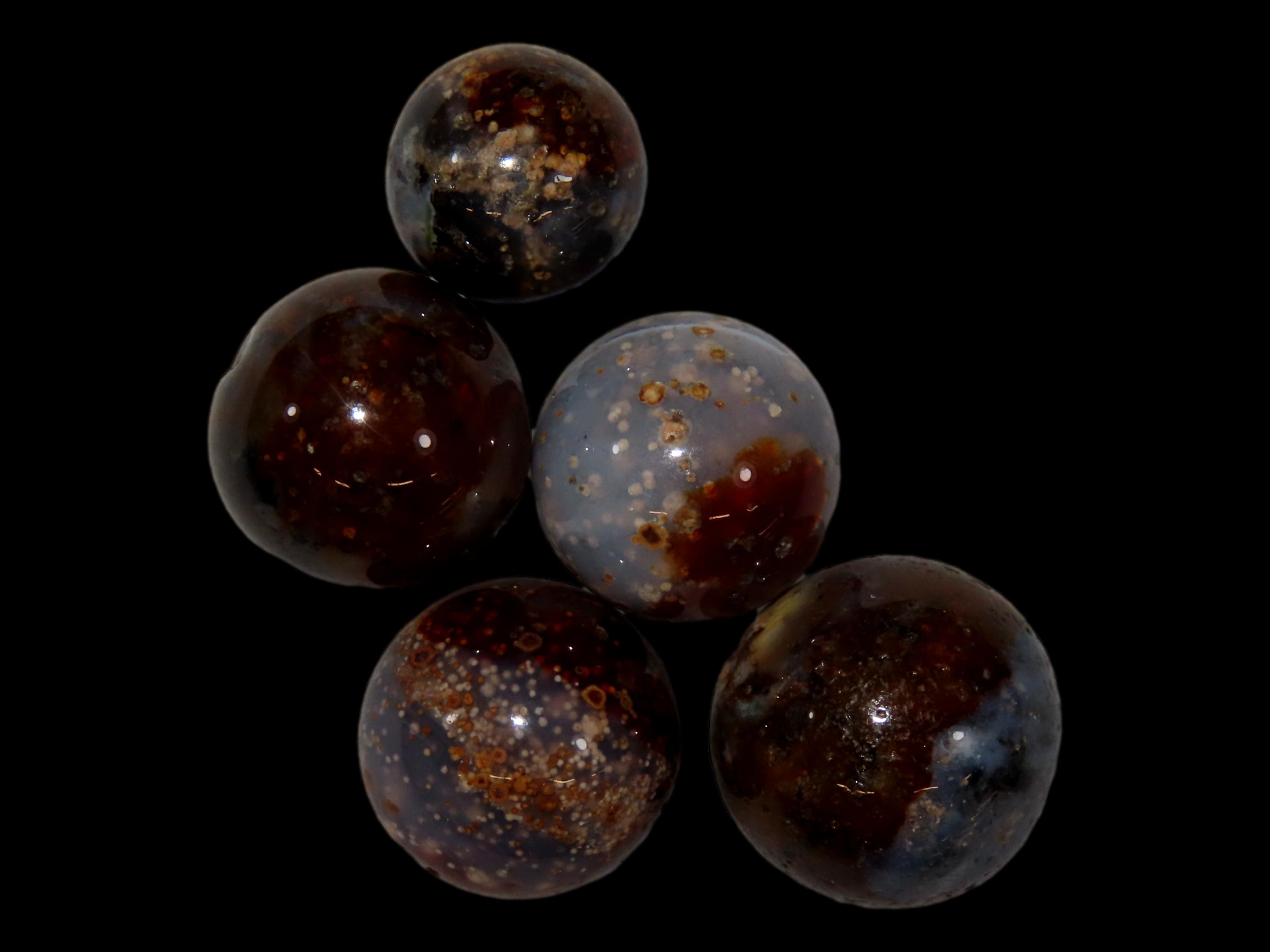 Group of 5 Ocean Hasper Marbles. Largest is 3/4″.Auctioning as Authentic & Unaltered