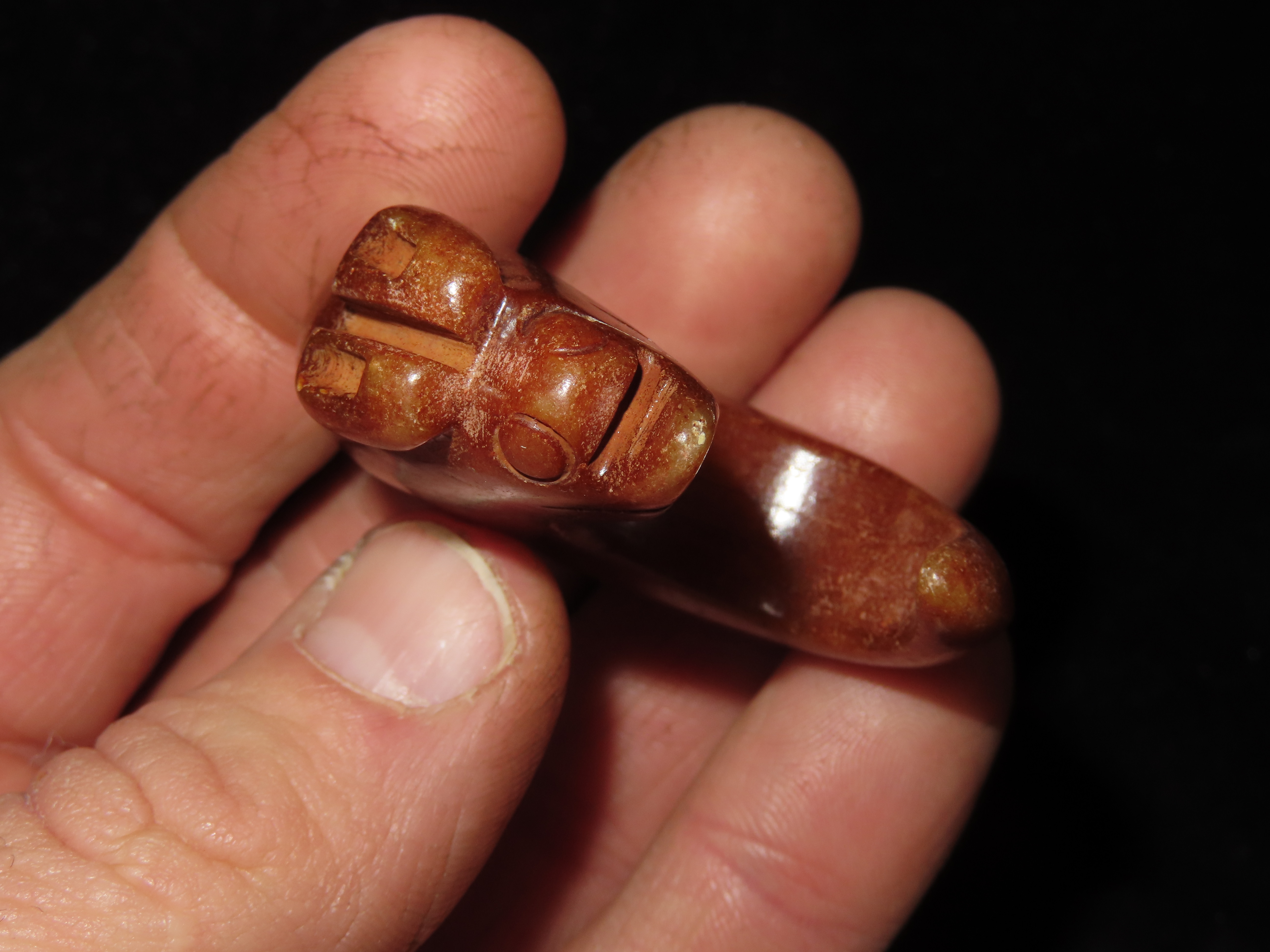 2″ Old Chinese HongShan Jade Effigy Carving