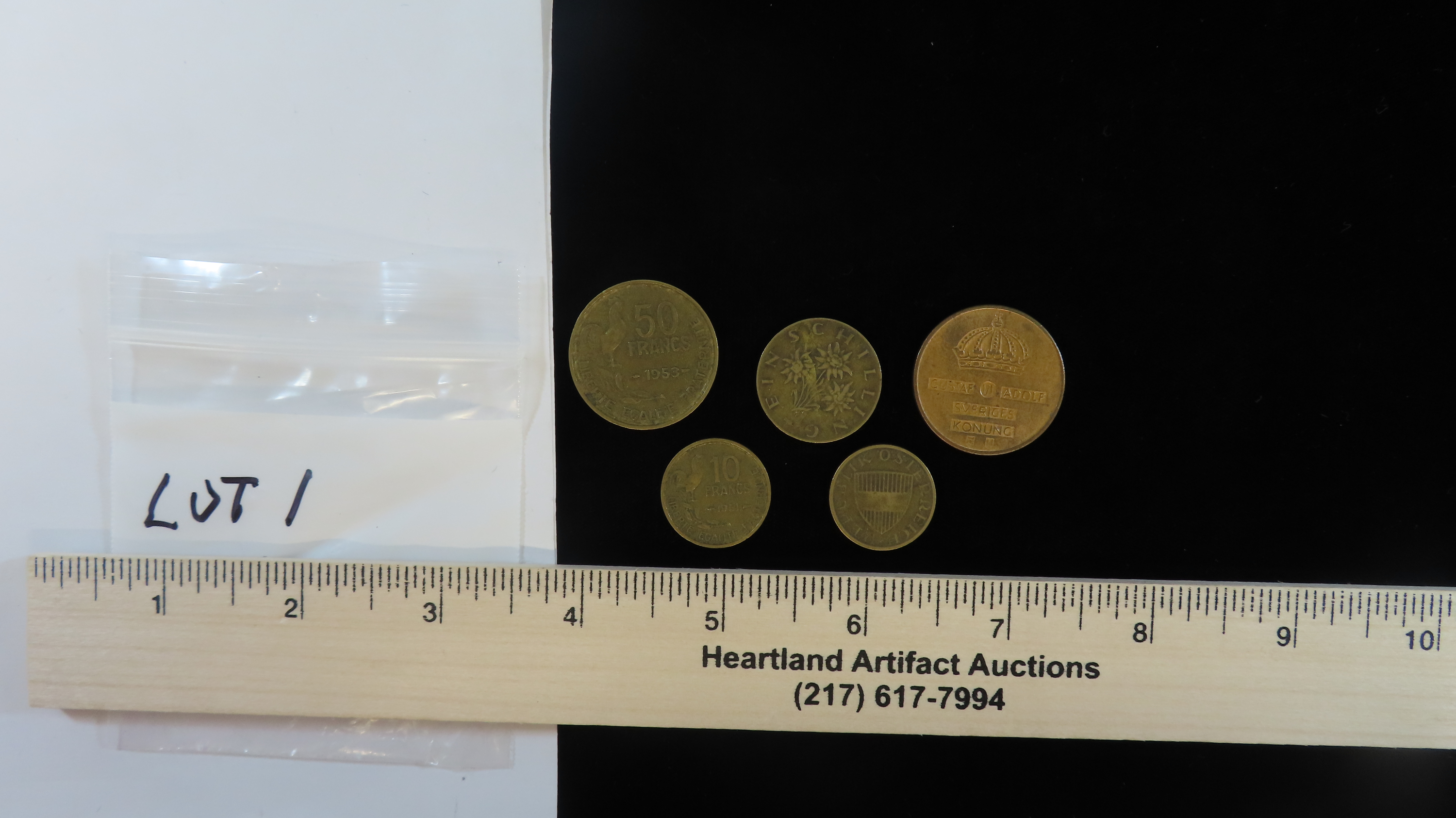 Lot of 5 Coins, 50 Francs 1950-1958, Sweden 5 ore 1952 – 1971,Austria 1 schilling 1959-2001,France 10 1950-1958, Austria 50 1959-2001