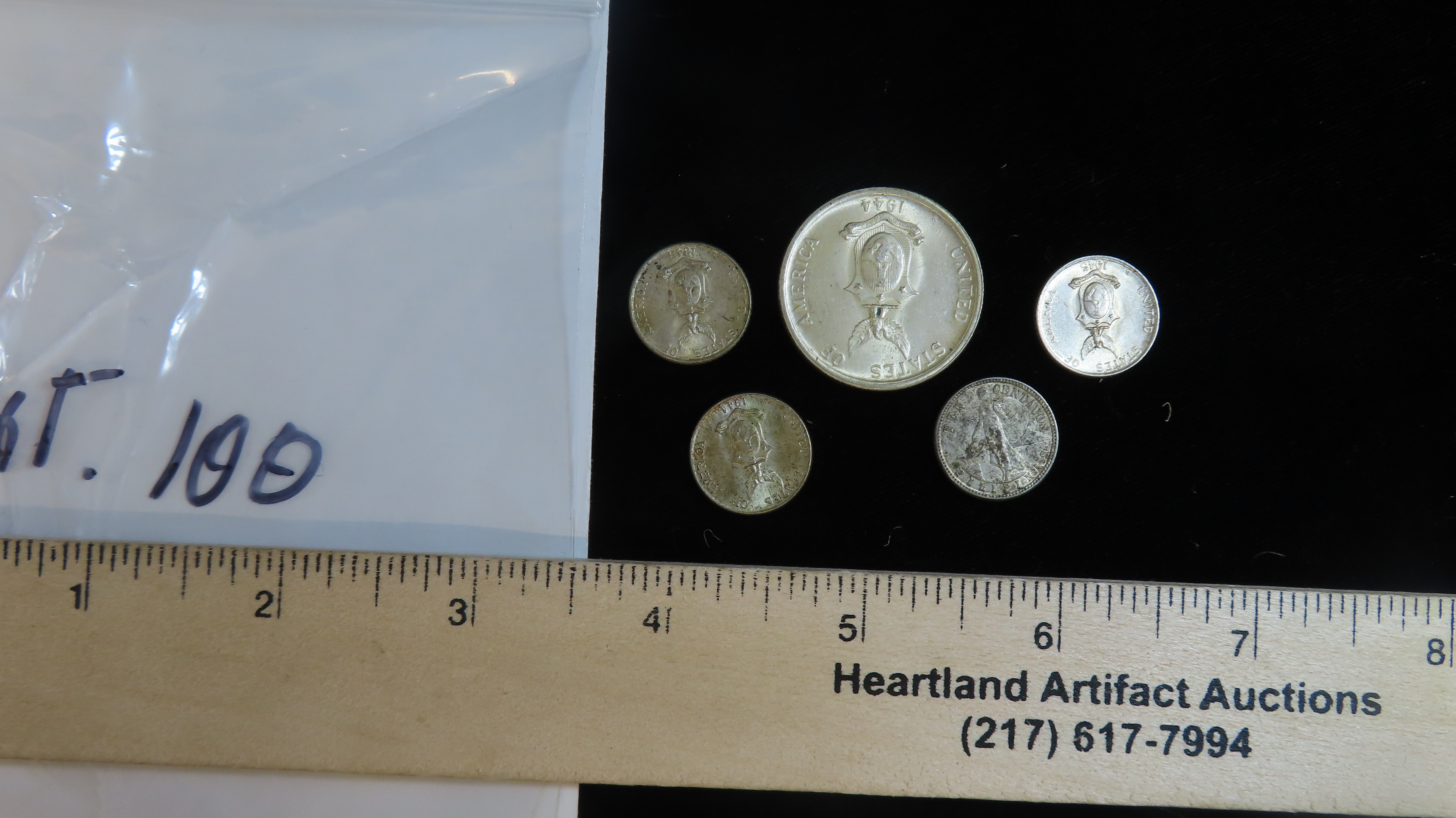 Lot of 5 Coins, Philippines 50 centavos 1944-1945, Philippines 10 centavos 1937-1945, Philippines 10 centavos 1937-1945, Philippinws 10 centavos 1937-1945, Philippines 10 centavos 1937-1945.