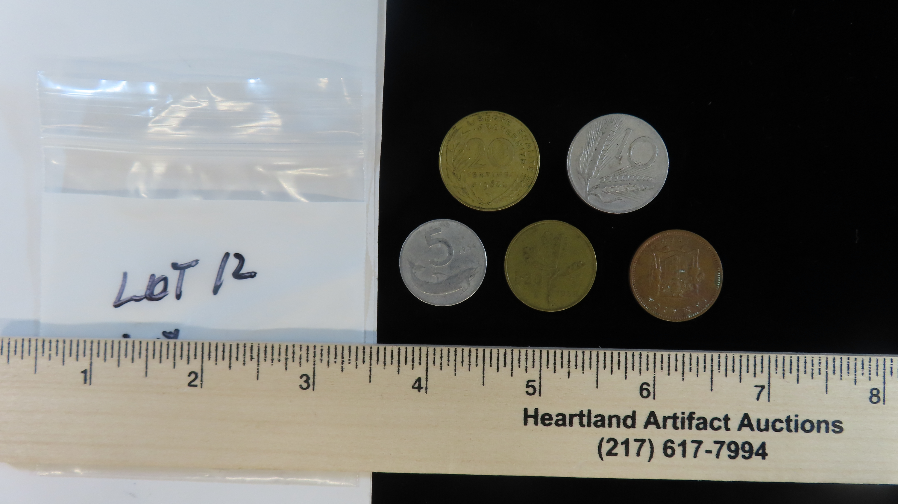 Lot of 5 Coins, Italy 10 lire 1951-2001, Italy 5 lire 1951-2001, Jamaica 1 cent 1969-1971, Italy 20 lire 1957-2001, France 20 centimes 1962-2001,