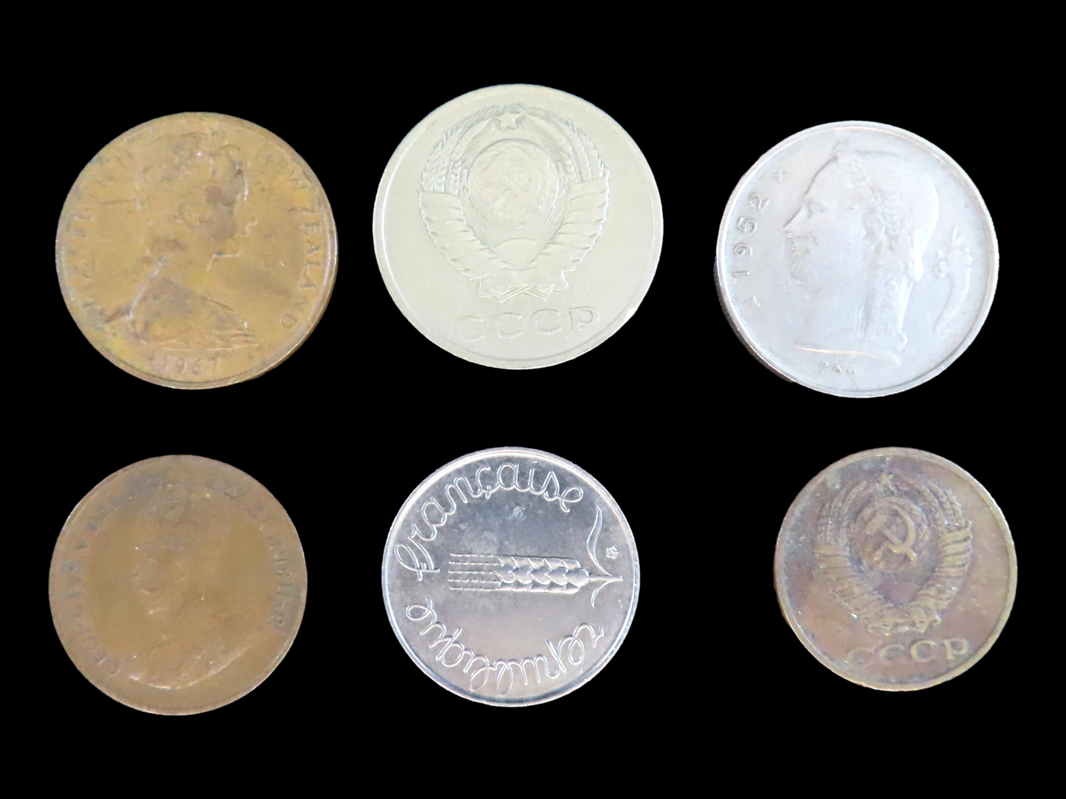 Lot of 6 Coins United Kingdom 2 shillings (florin) 1937-1948, Germany 10 pfenning 1950-2001, Luxembourg 1 franc 1952-1964, Yugoslavia 2 dinara 1990-1992, Italy 20 lire 1957-2001, Germany- Third Reich 50 reichspfenning 1939-1944,