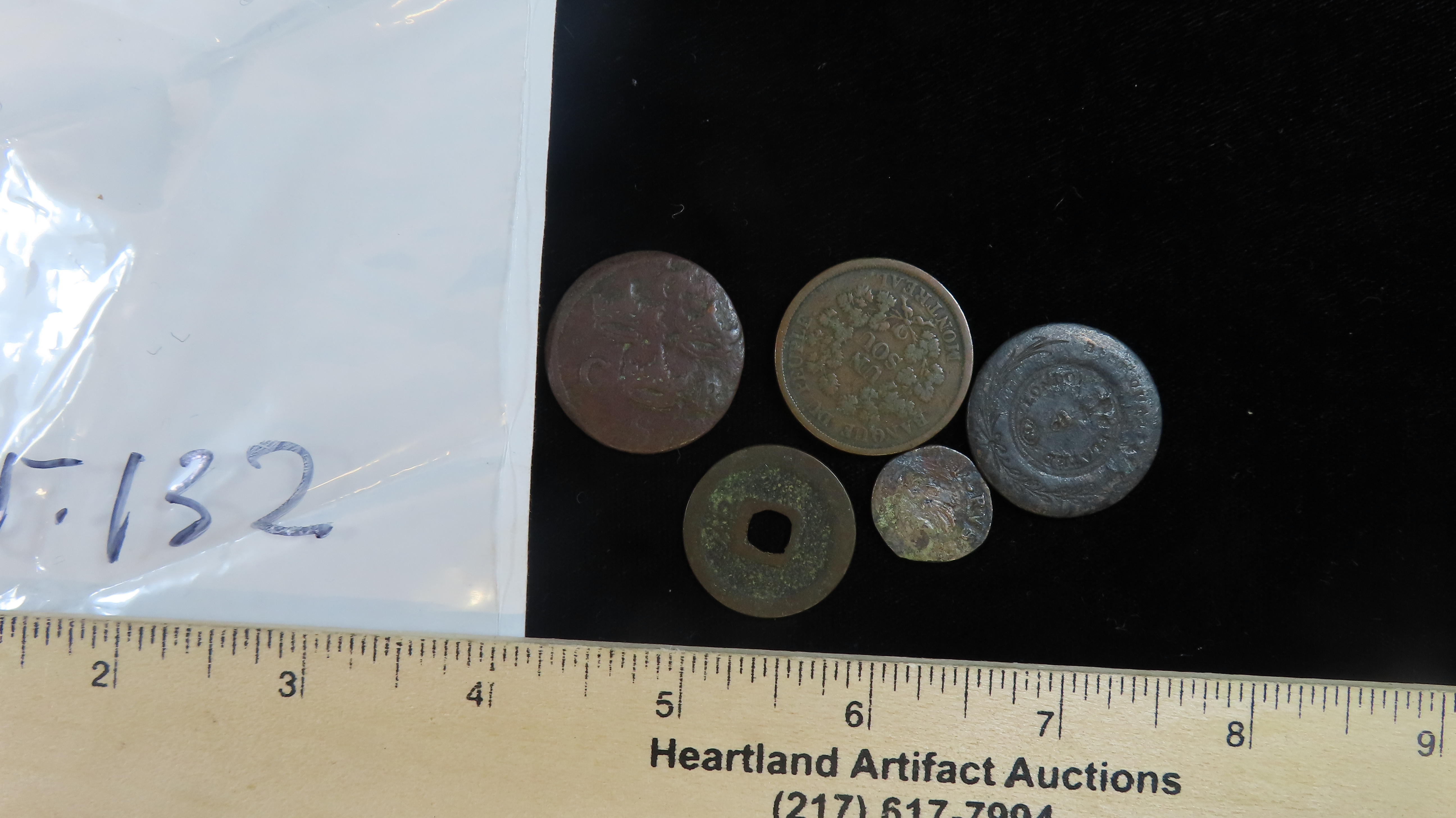 Lot of 5 Coins, Canadian provinces 1 sou, Banque du peuple Montreal 1838, Swden 1/4 ore 1655-1660, Pakistan 10 paisa 1961, Japan 1 mon, Kwan-Ei Tsu-Ho 1626, Poland 1 solid 1660-1668.