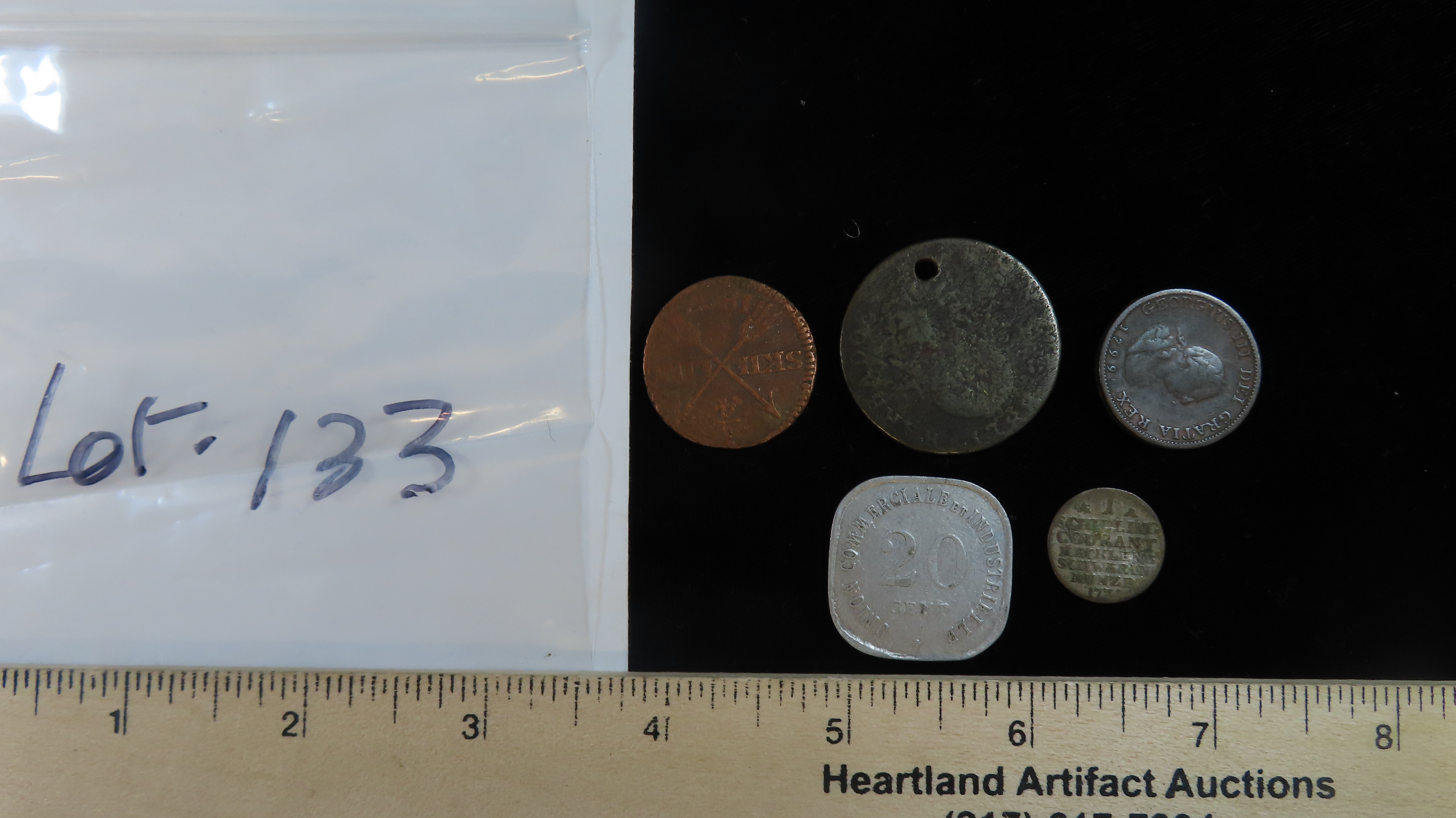 Lot of 5 Coins, Philippines 25 sentimos 1995-2003, Mecklenburg-Schwerin 1 schilling 1763-1785, Mexico 4 real 1814-1821, Sweden 1/4 skilling 1802-1808, United Kingdom 1 farthing 1799.