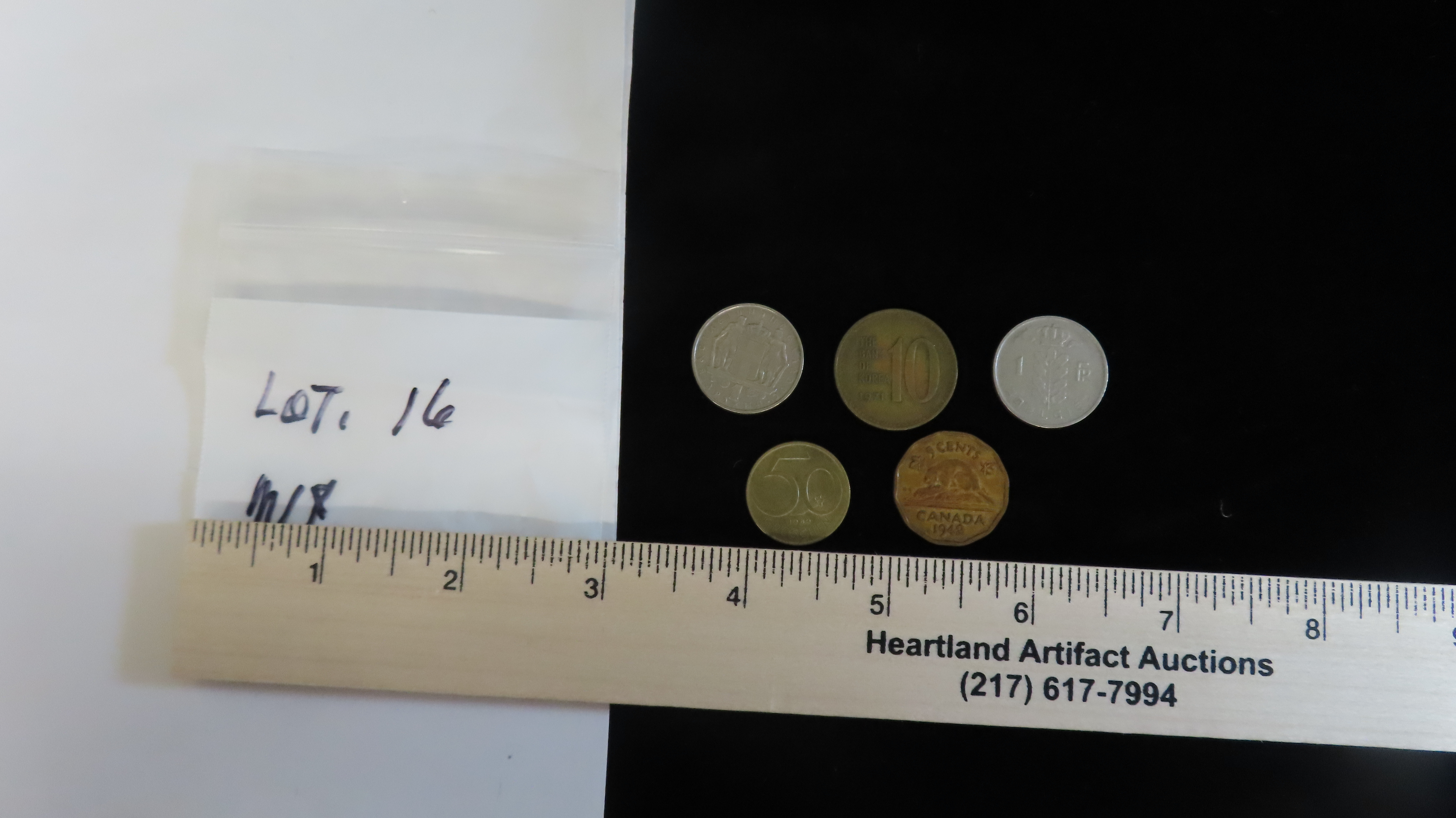 Lot of 5 Coins, Canada 5 cents 1942-1947, Austtai 50 groschen 1959-2001, Greece 1 drachma 1966-1970, South Korea 10 won 1971-1982, Belgium 1 franc, Legend in Dutch-Belgie 1950-1988