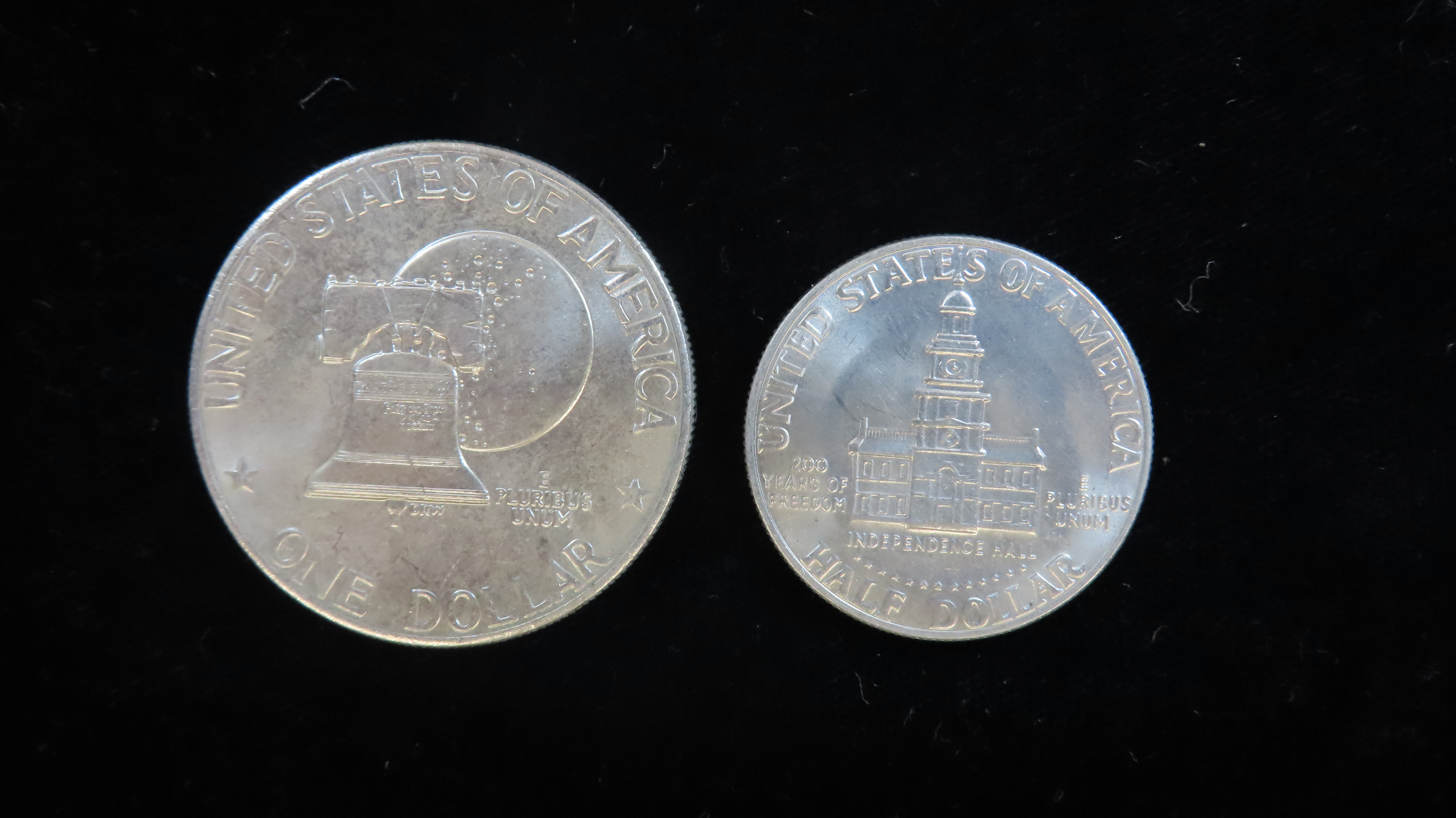 Lot of 2 Coins, USA 1 dollar, 200th Anniversary- Independence of USA 1976, USA 1/2 dollar, 200th Anniversary- Independence of USA 1976.