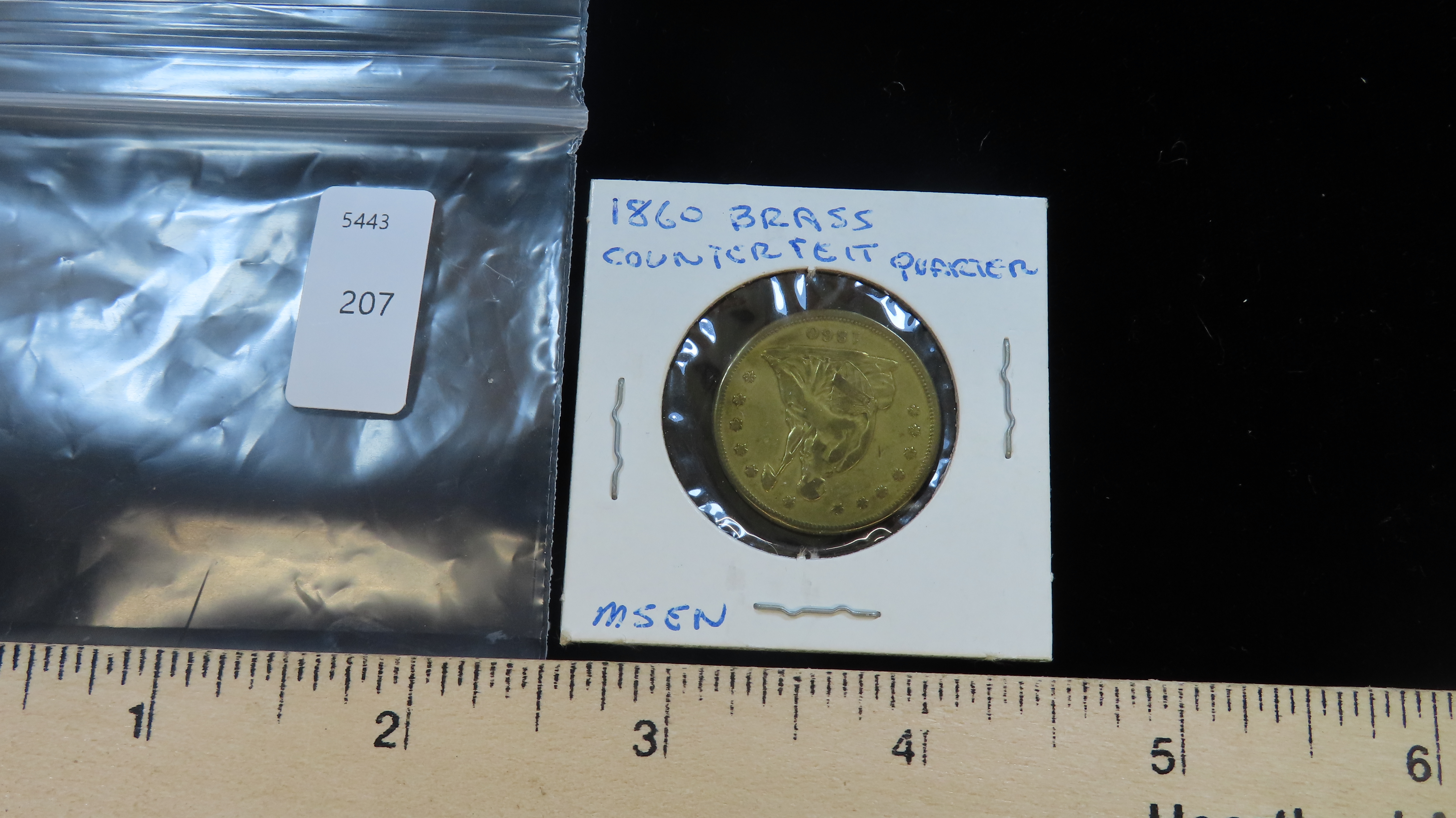 Lot of 1 Coin, 1869 Brass counterfeit Quarter