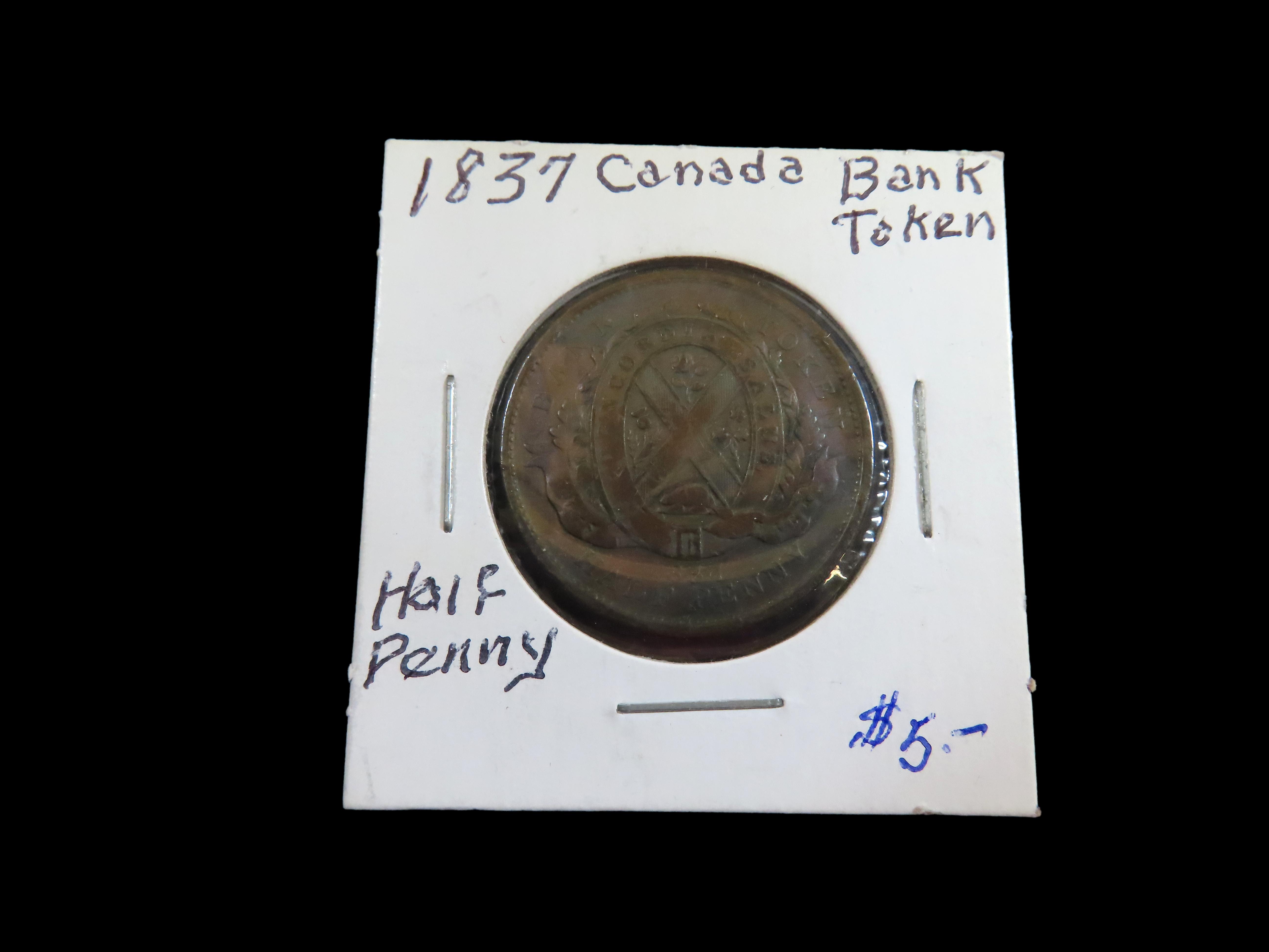 Lot of 1 Coin, Canasian provinces 1/2 penny, "Quebec Bank" on ribbon 1837.