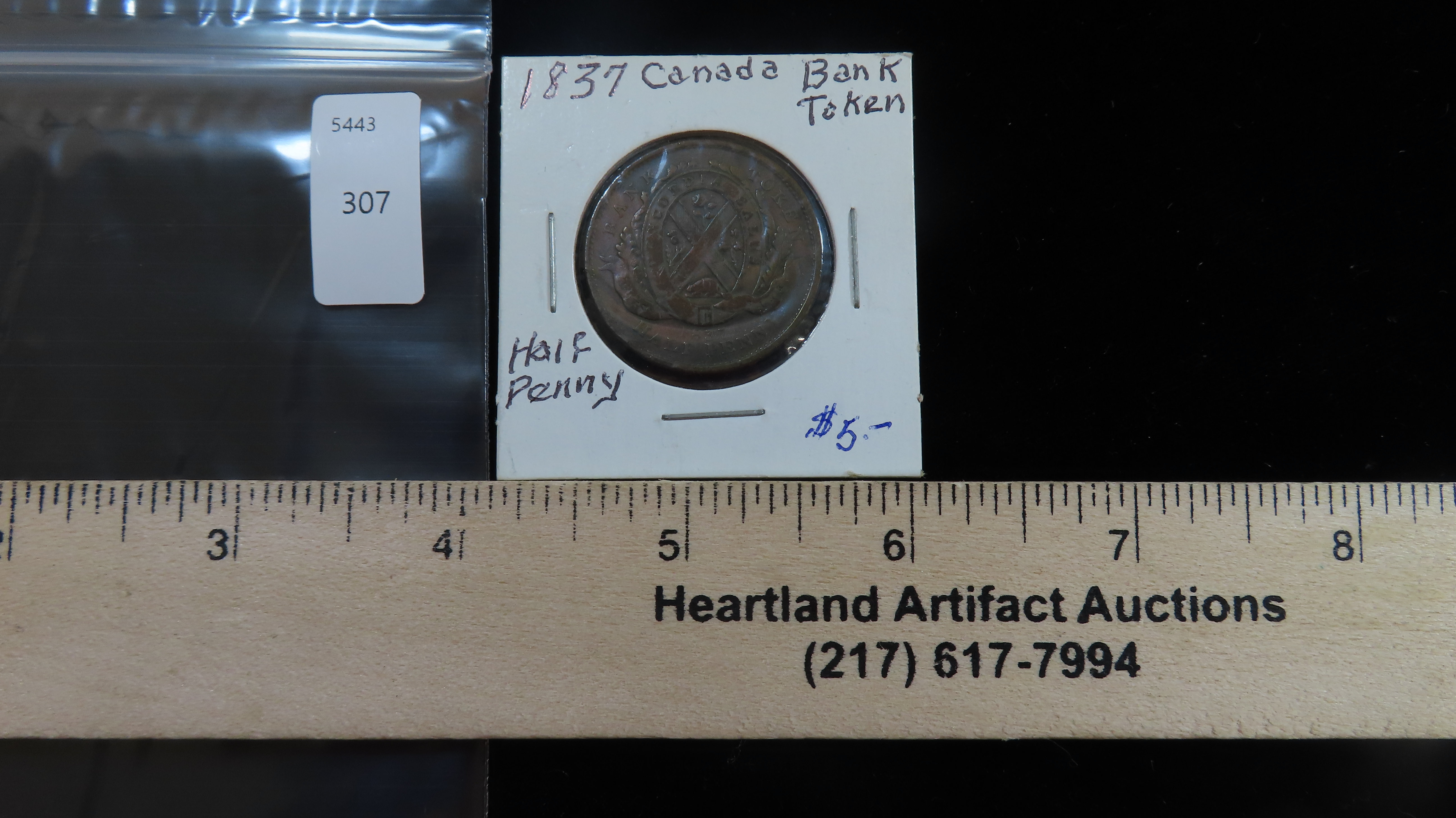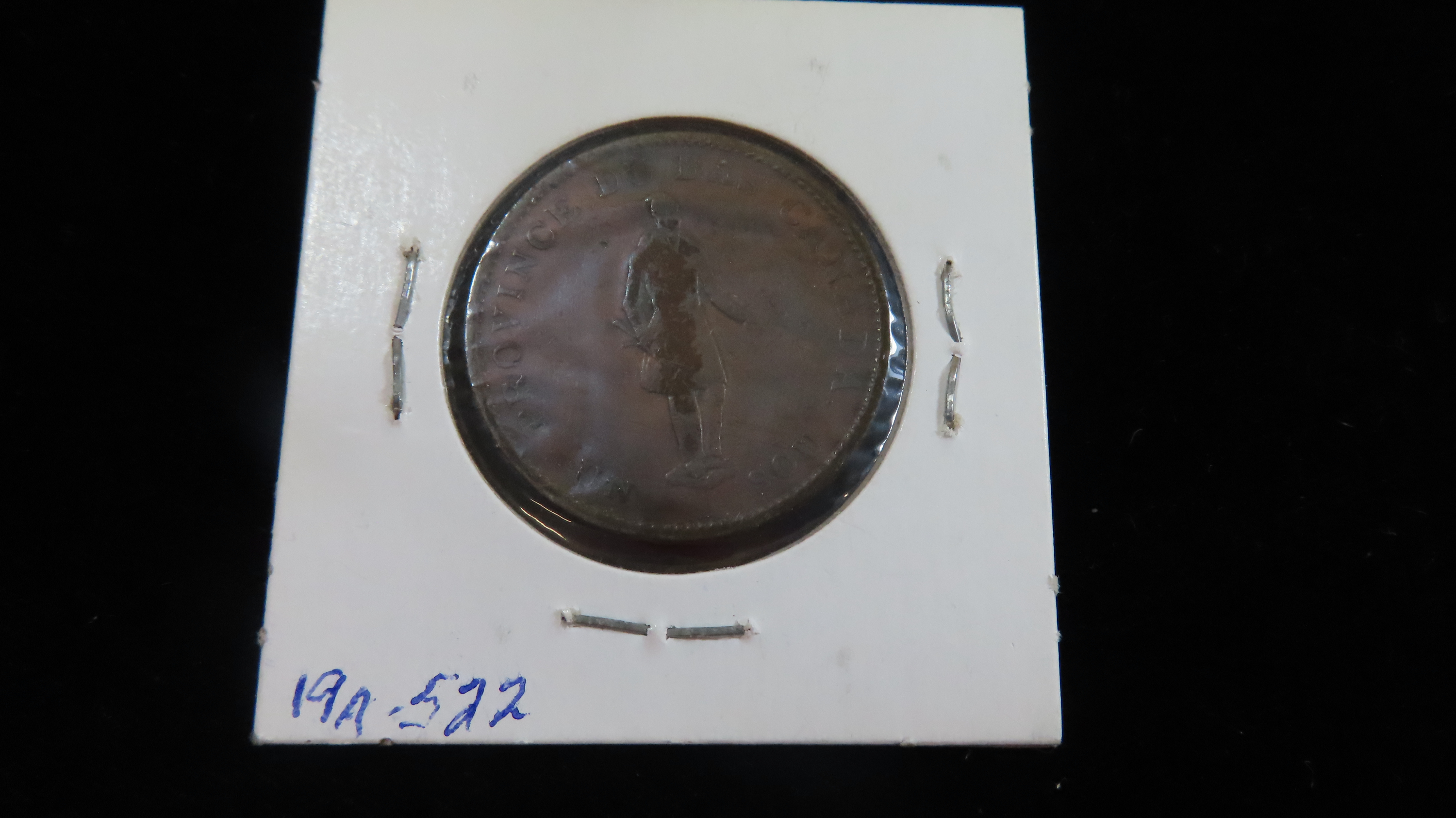 Lot of 1 Coin, Canasian provinces 1/2 penny, “Quebec Bank” on ribbon 1837.