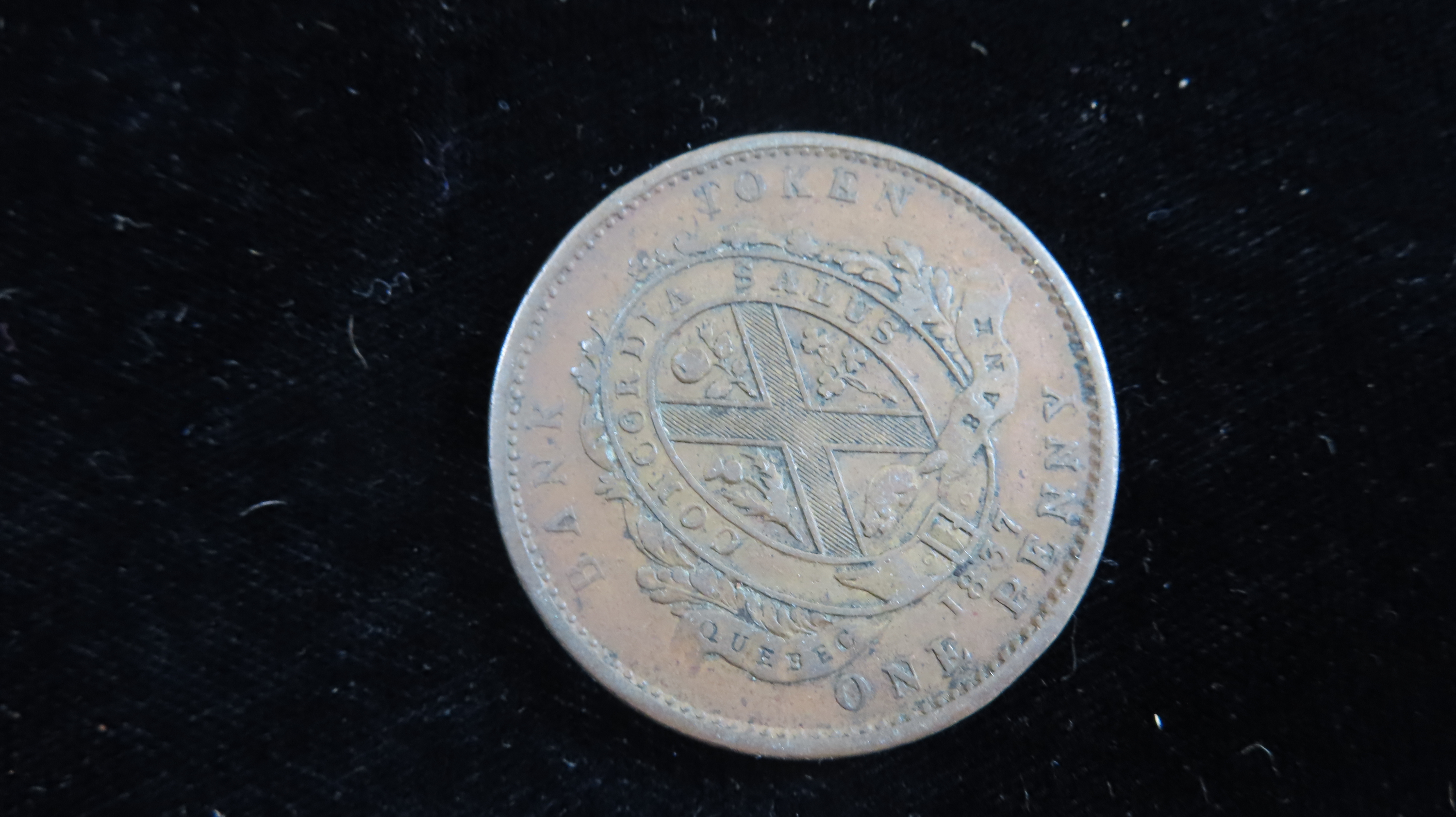 Lot of 1 Coin, Canadian provinces 1 penny, Standing Figure, “City Bank” on ribbon 1837.