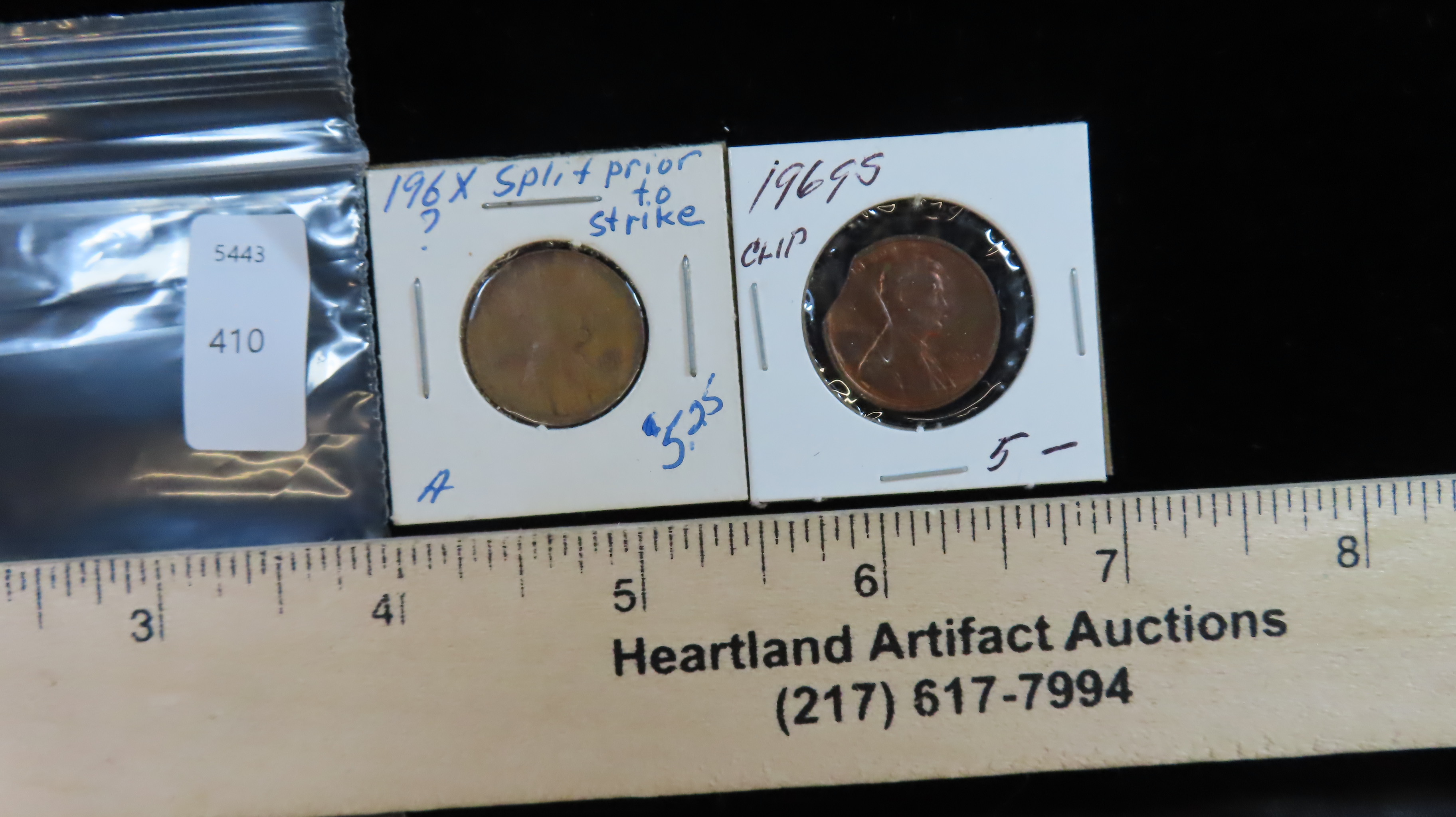 Lot of 2 Coins, USA 1 cent, Lincoln Memorial Penny 1959-2008, (1969 chipped), USA 1 cent, Lincoln Memorial Penny 1959-2008,( 196x spilt prior to strike).