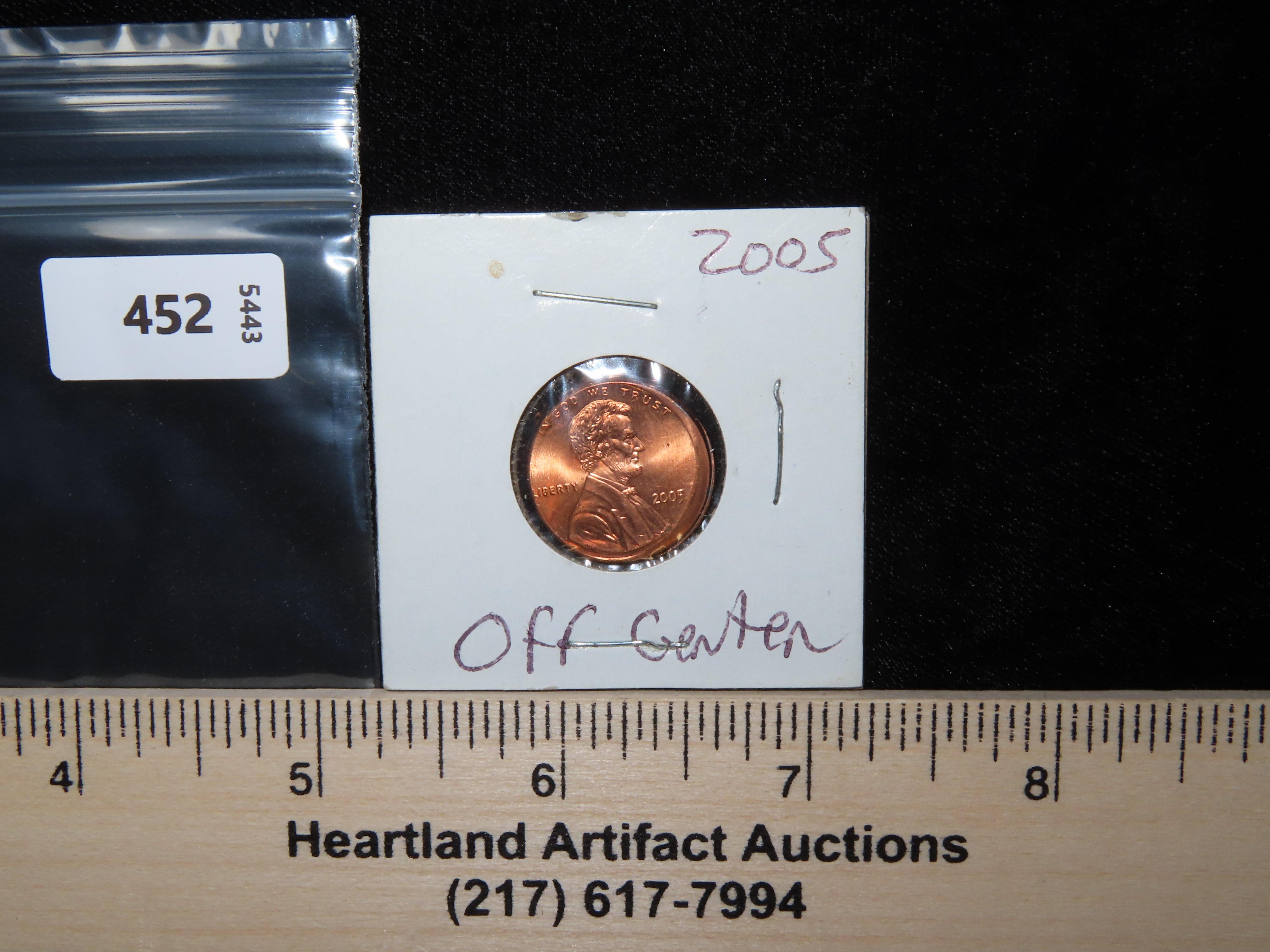 Lot of 1 Coin, USA 1 cent, Lincoln Memorial Penny 1959-2008,(2005-off centered).