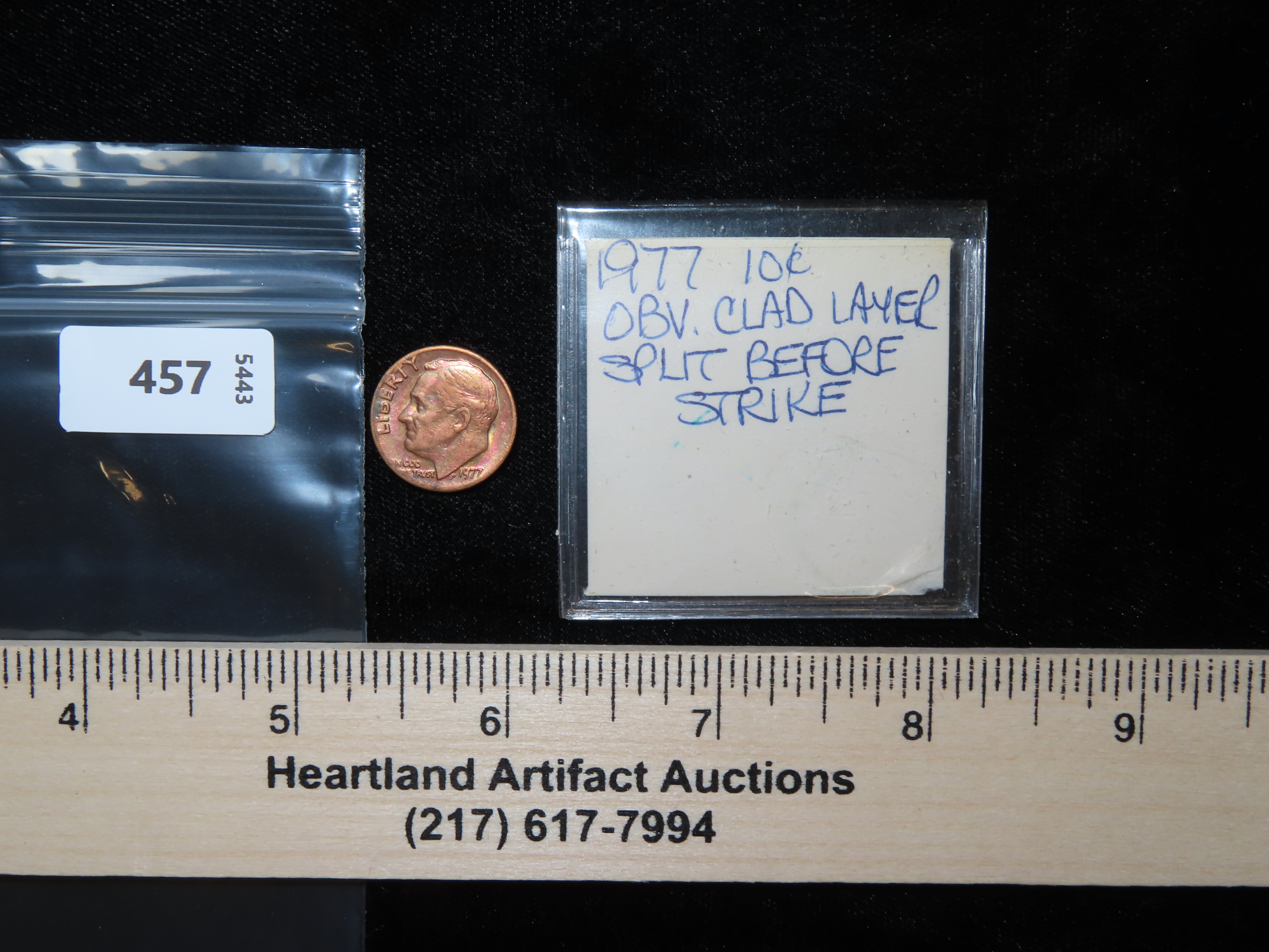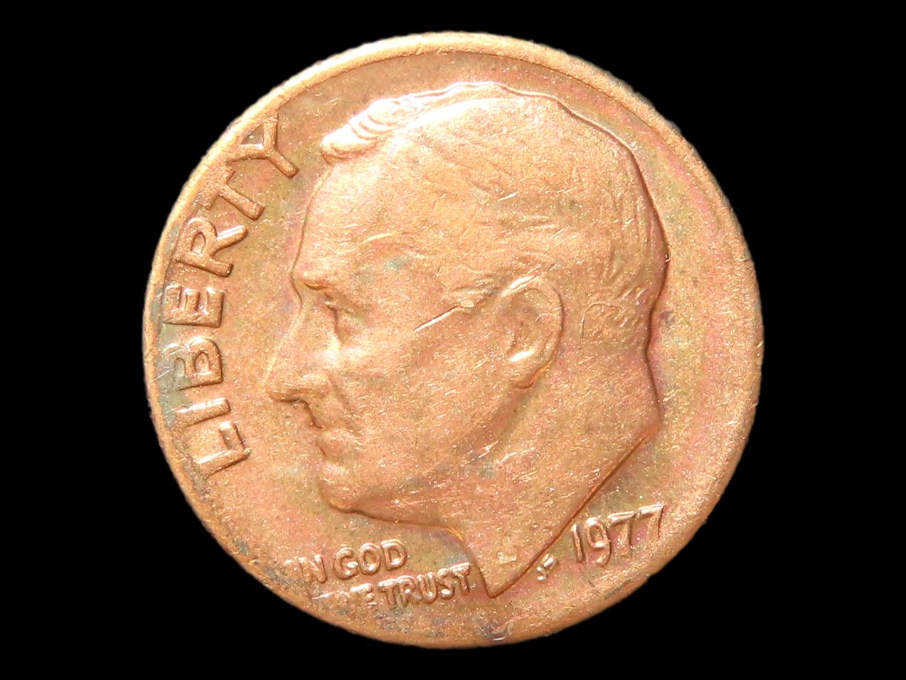 Lot of 1 Coin, USA 1 dime, Roosevelt Dime 1946-2024, ( 1977 Clad layer split before strike).