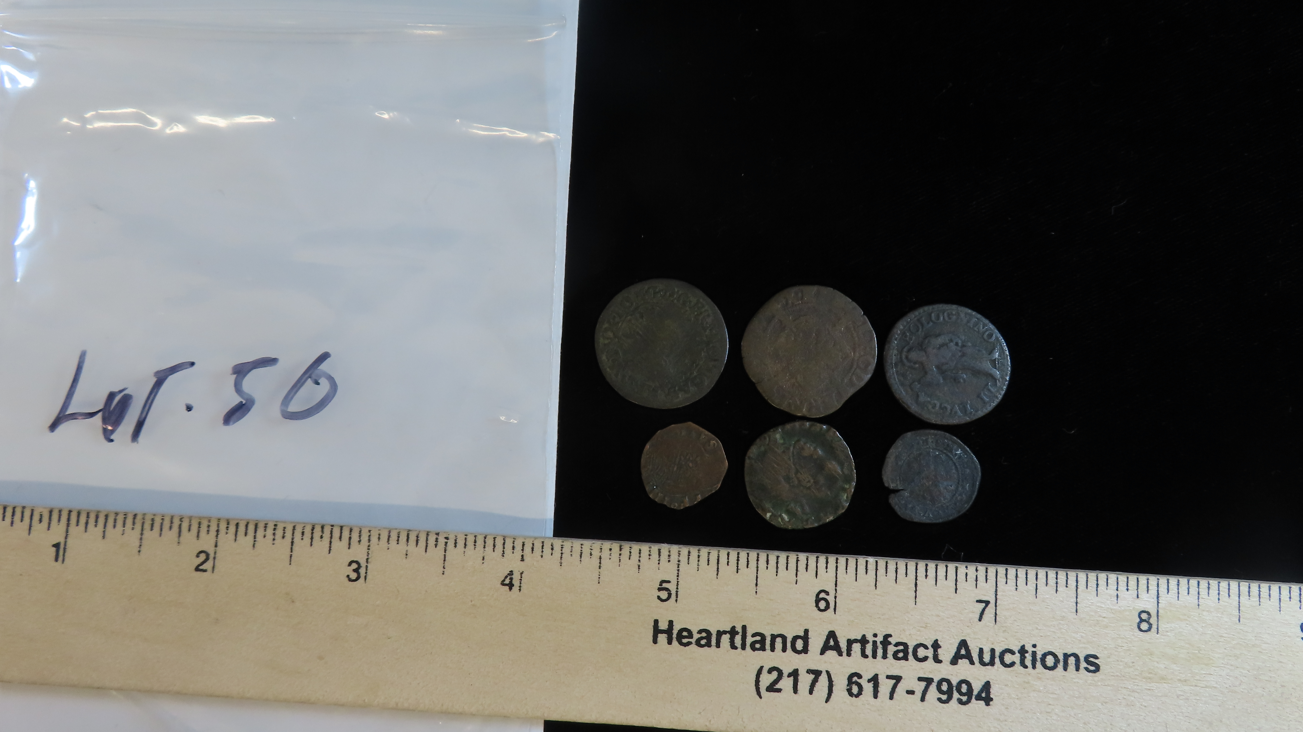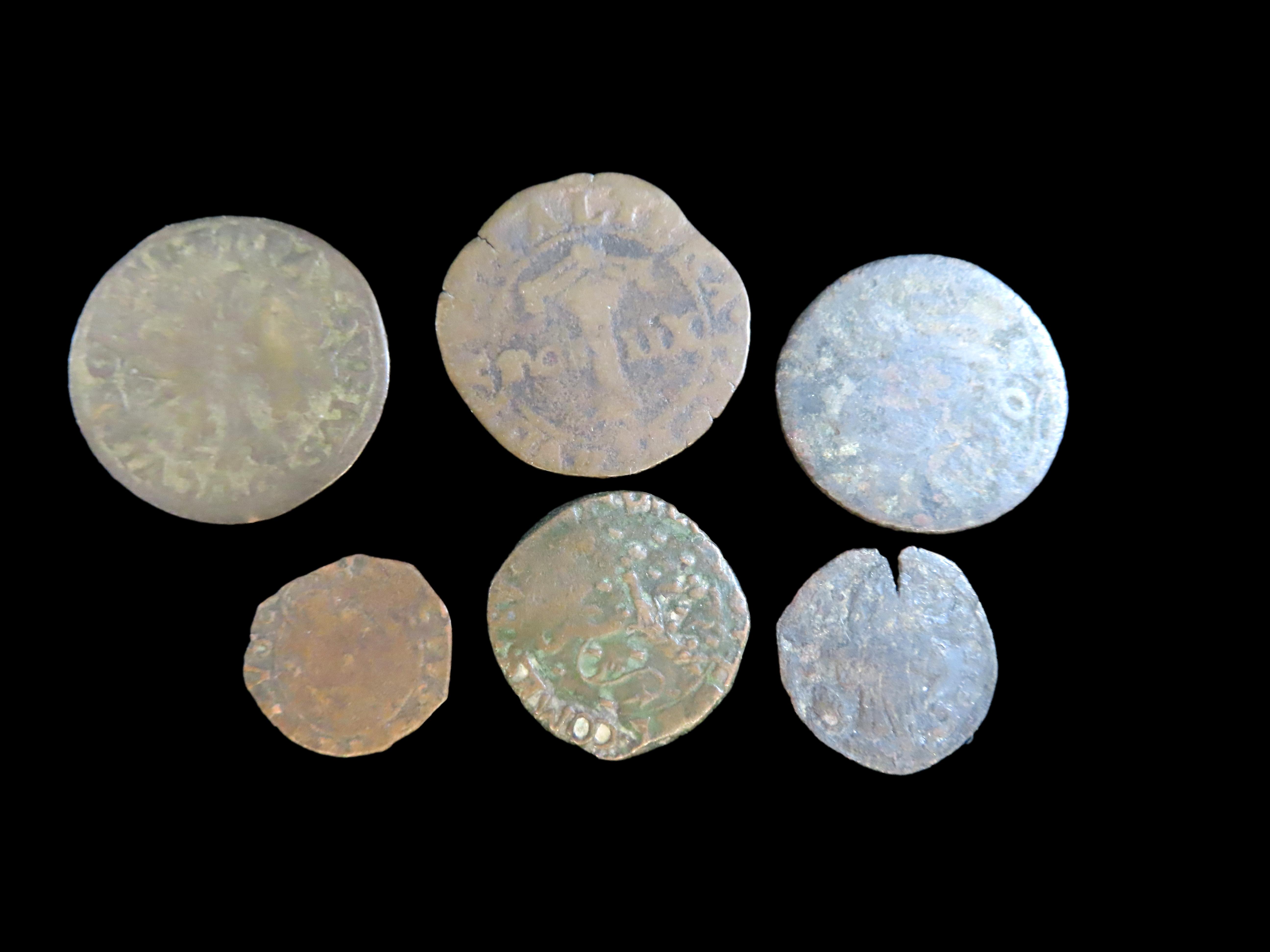 Lot of 6 Coins Russian Empire 1 denga 1704-1712, Mysore 20 cash 1833-1843, Lucca 2 soldi 1717-1790, Bremen 1 grote 1746-1752, Brunswick-Luneburg 1 mariengroscen 1682-1683, Poland 1 grosz 1597