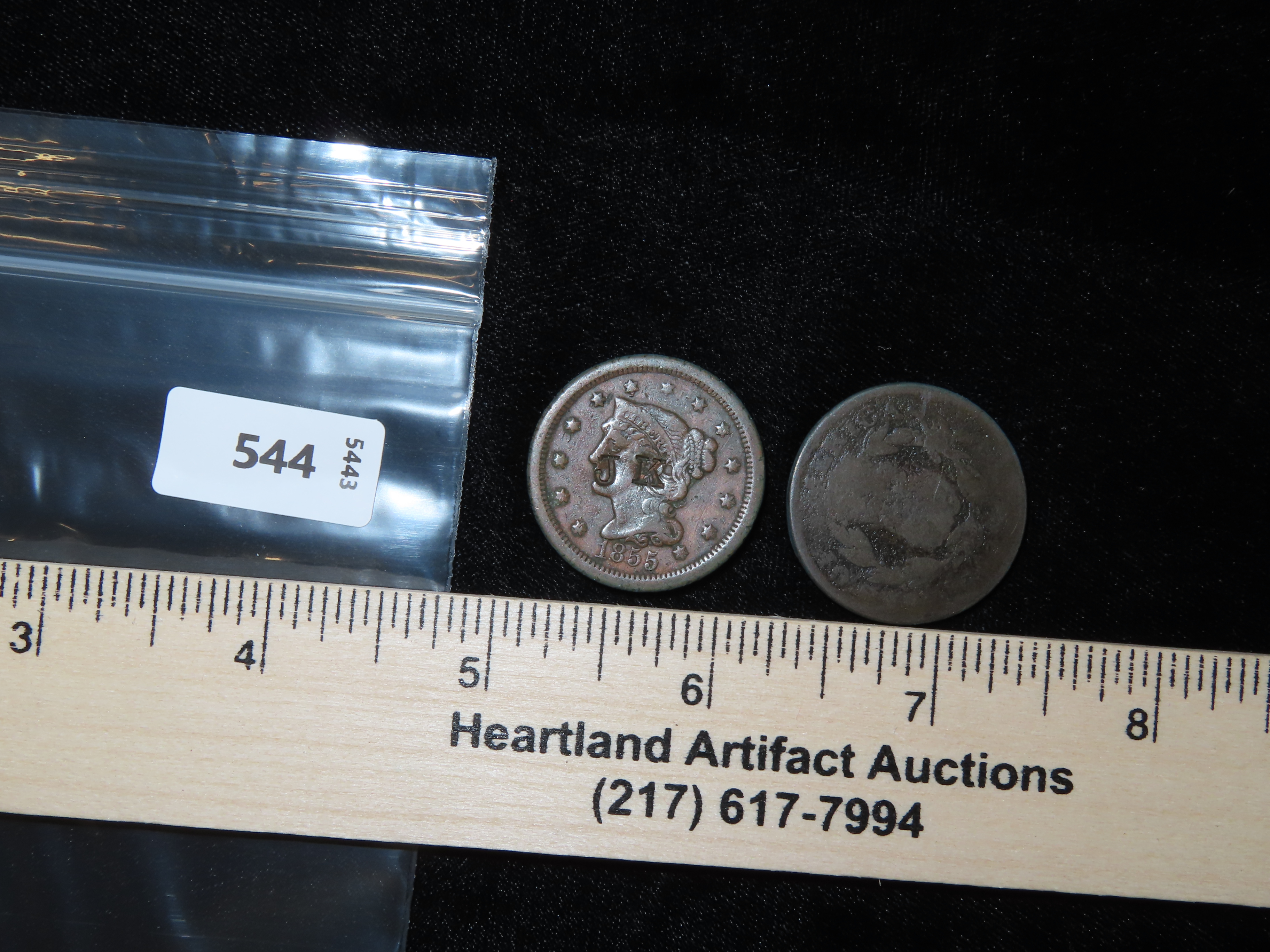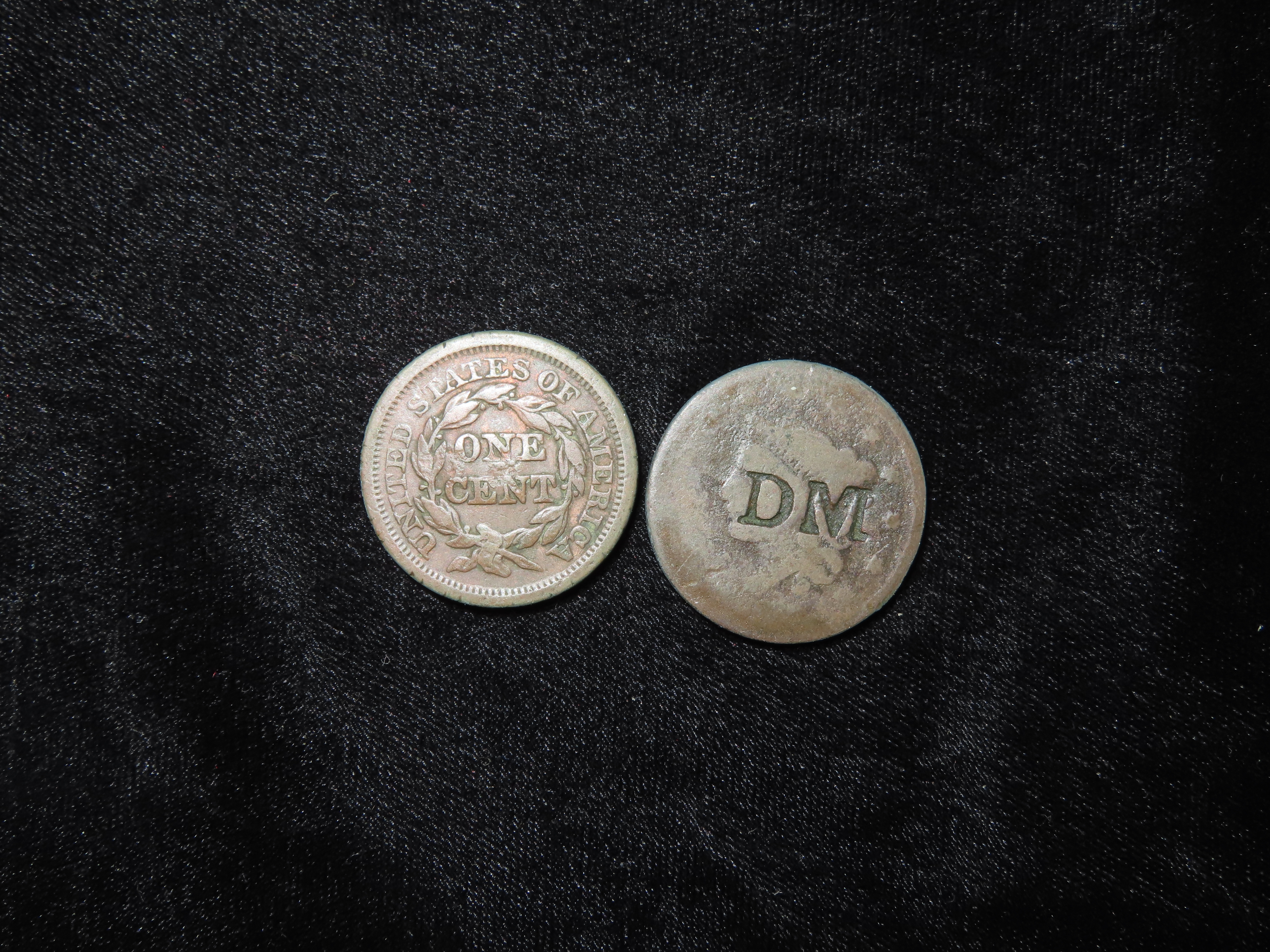 Lotof 2 Coins, USA 1 cent, Liberty Head Cent 1840-1857, (1855), Argentine provinces 2 reals 1853-1856.