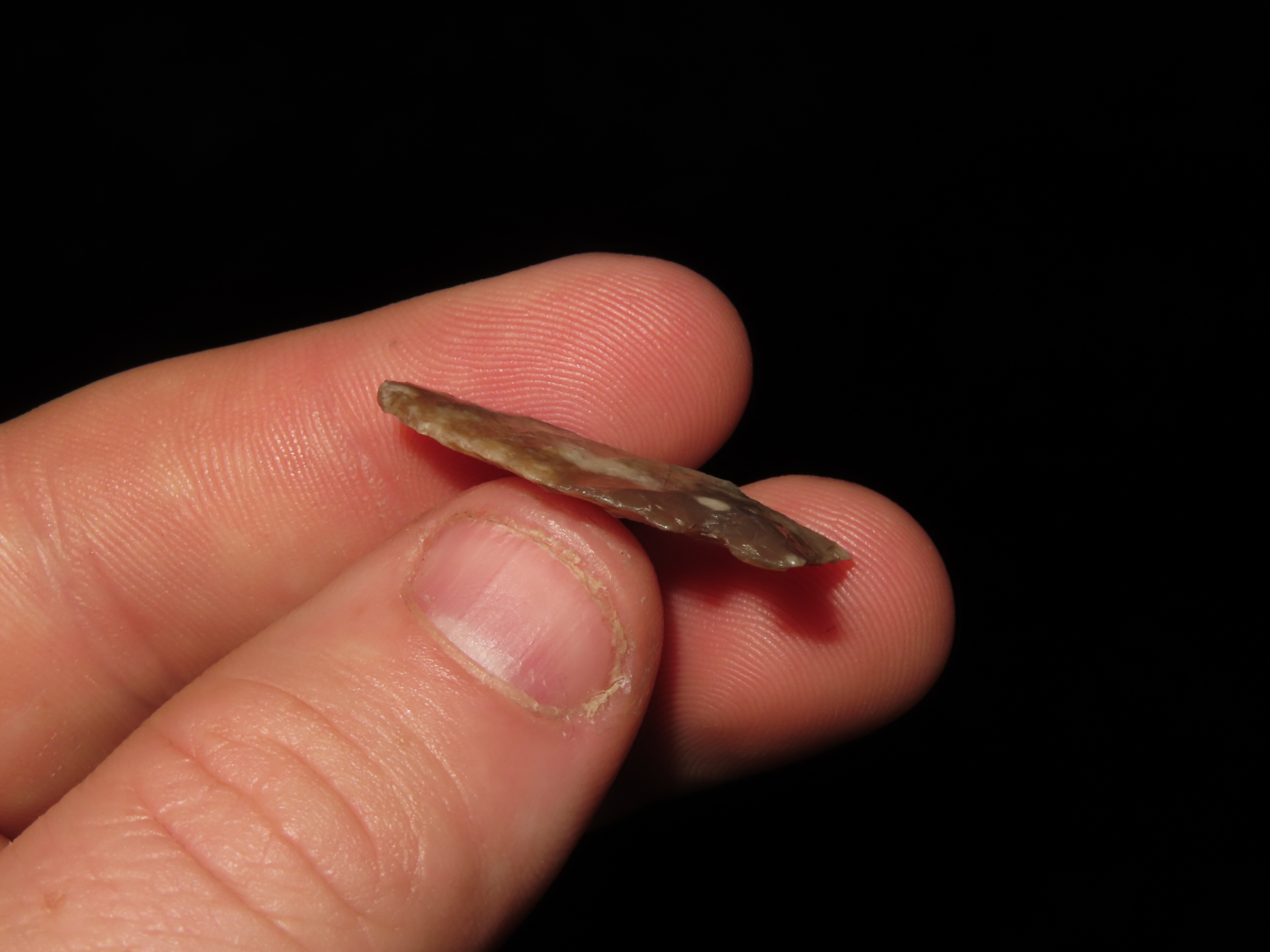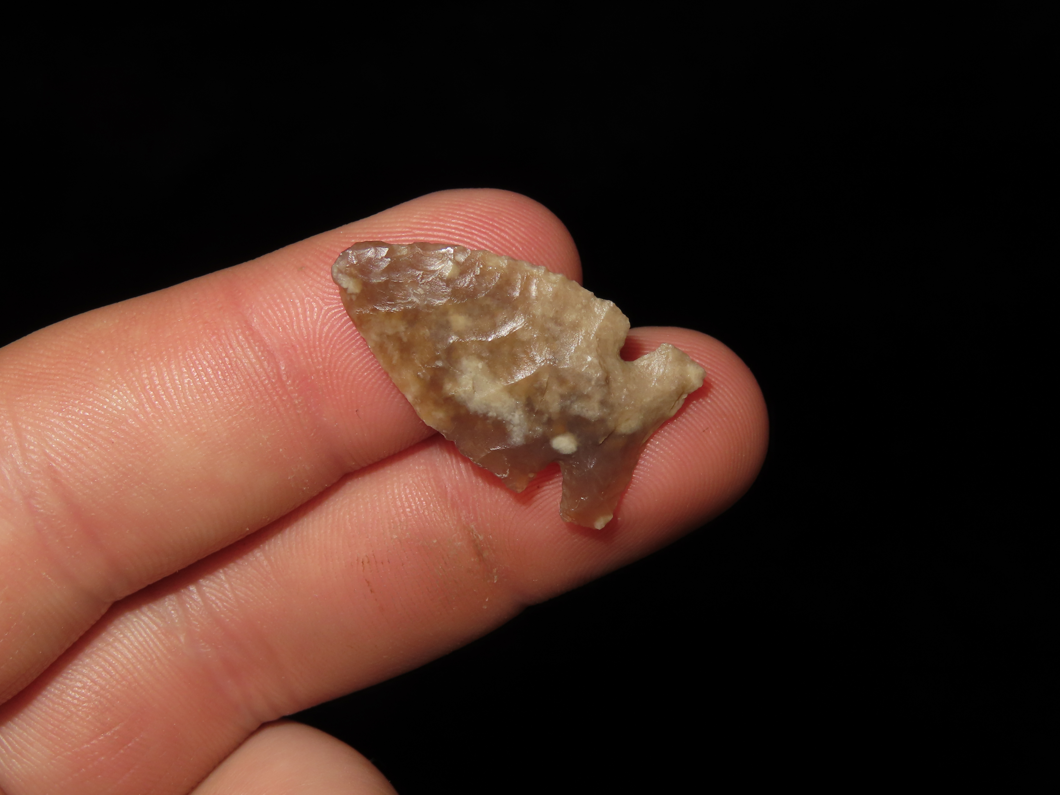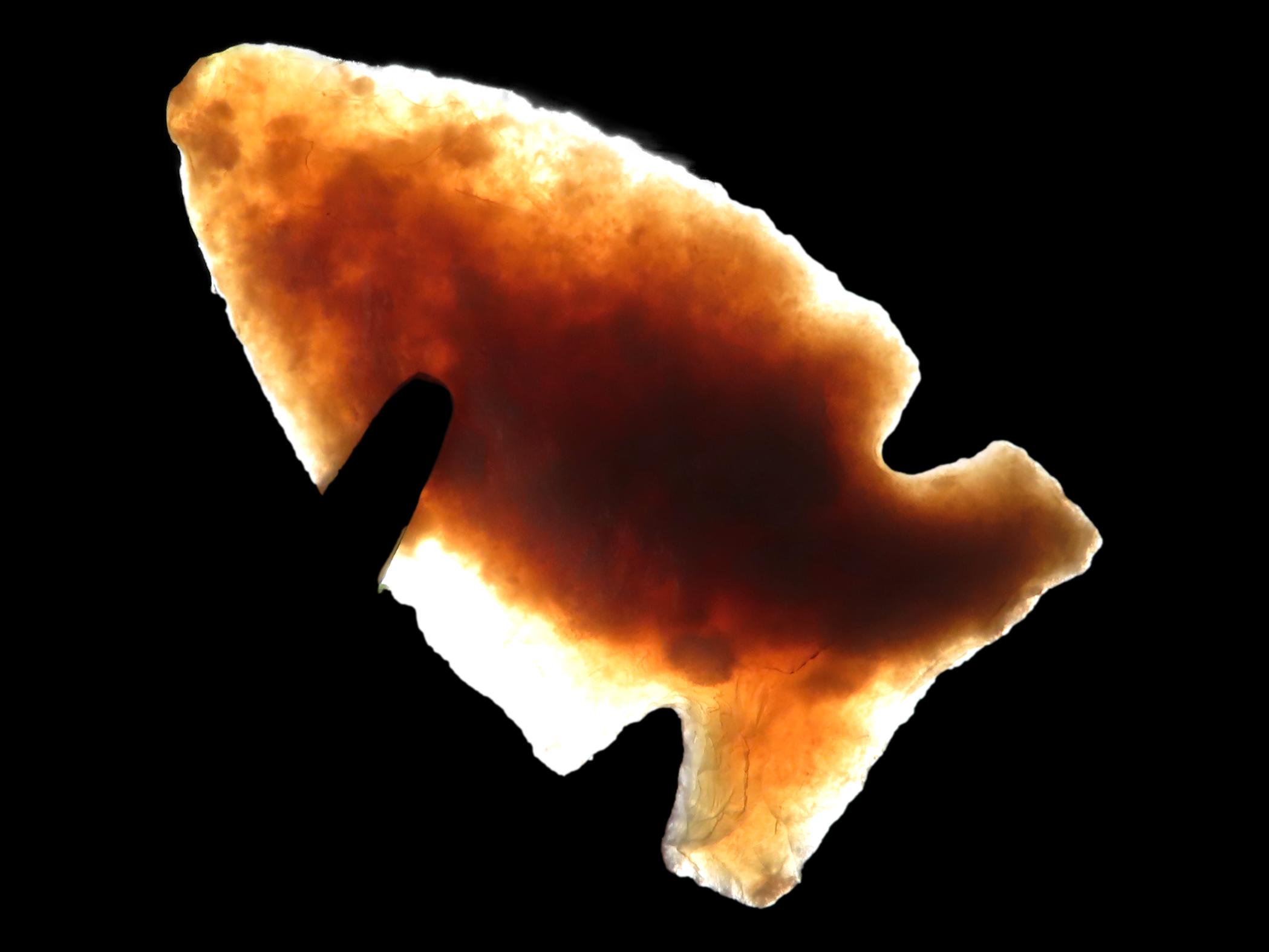 Amazing Knife River Flint Lookingbill, Montana, 1 1/8″ long, Highly Translucent, well made example with Great patina, Indian Arrowhead, Bird point