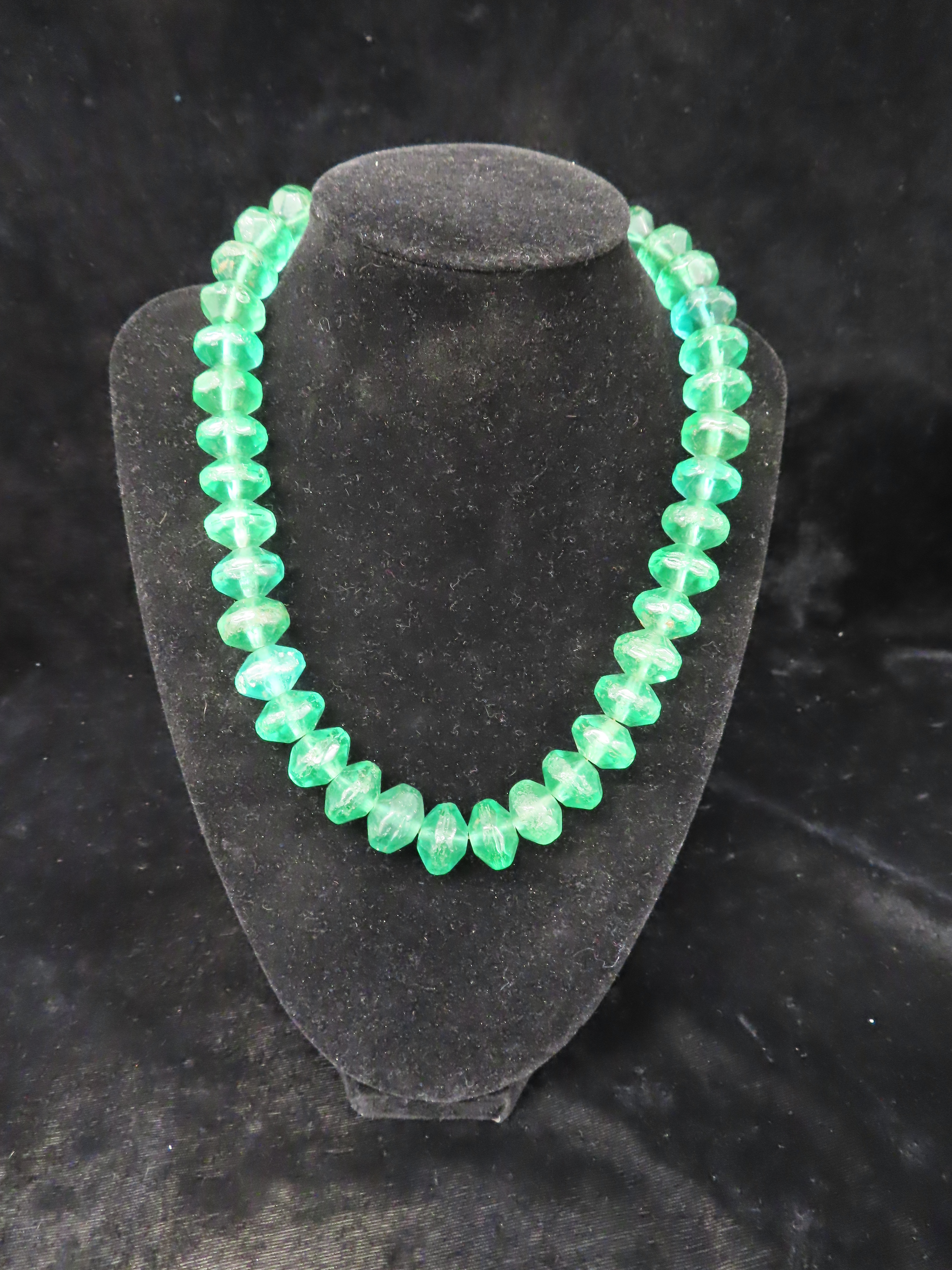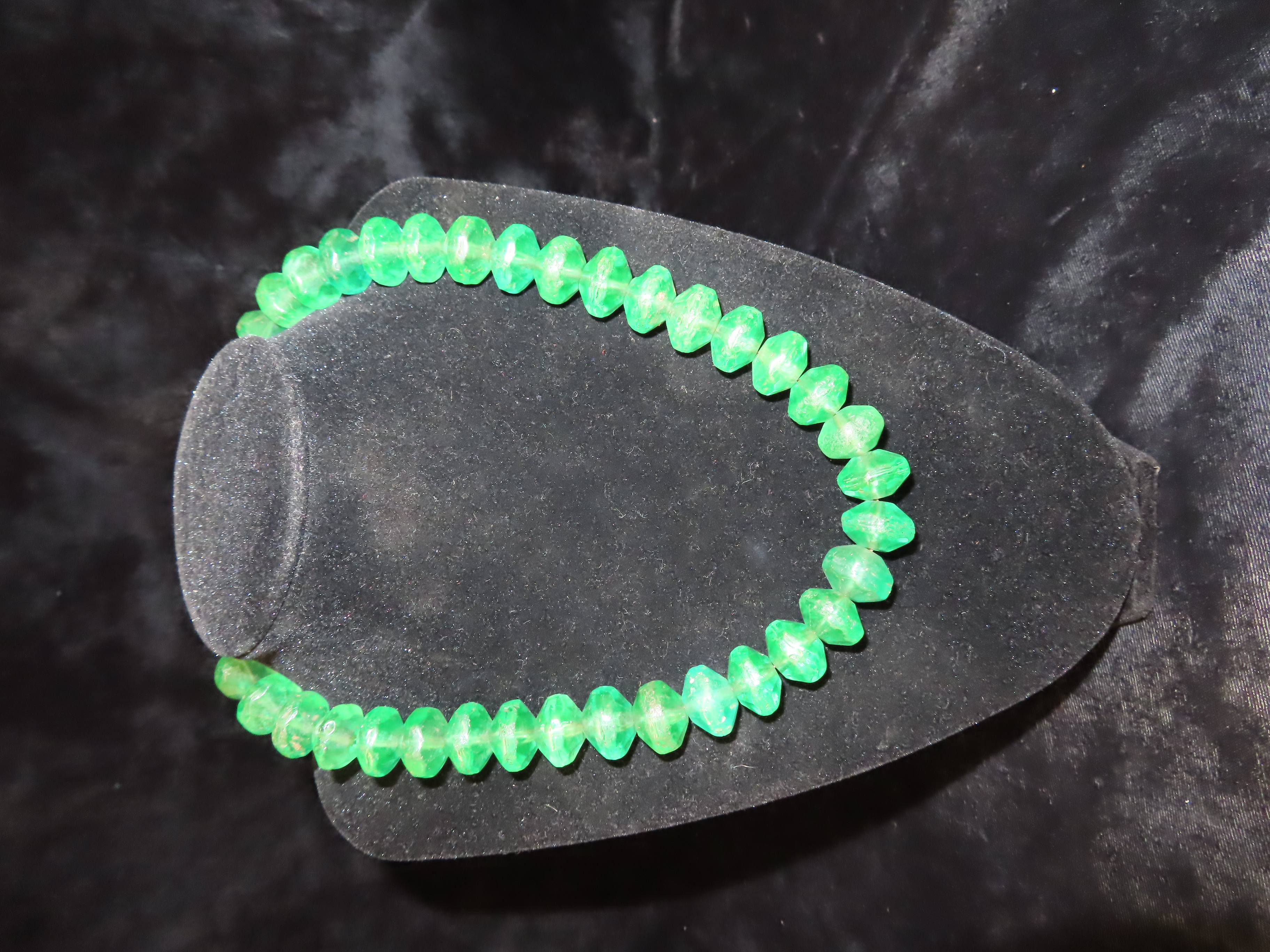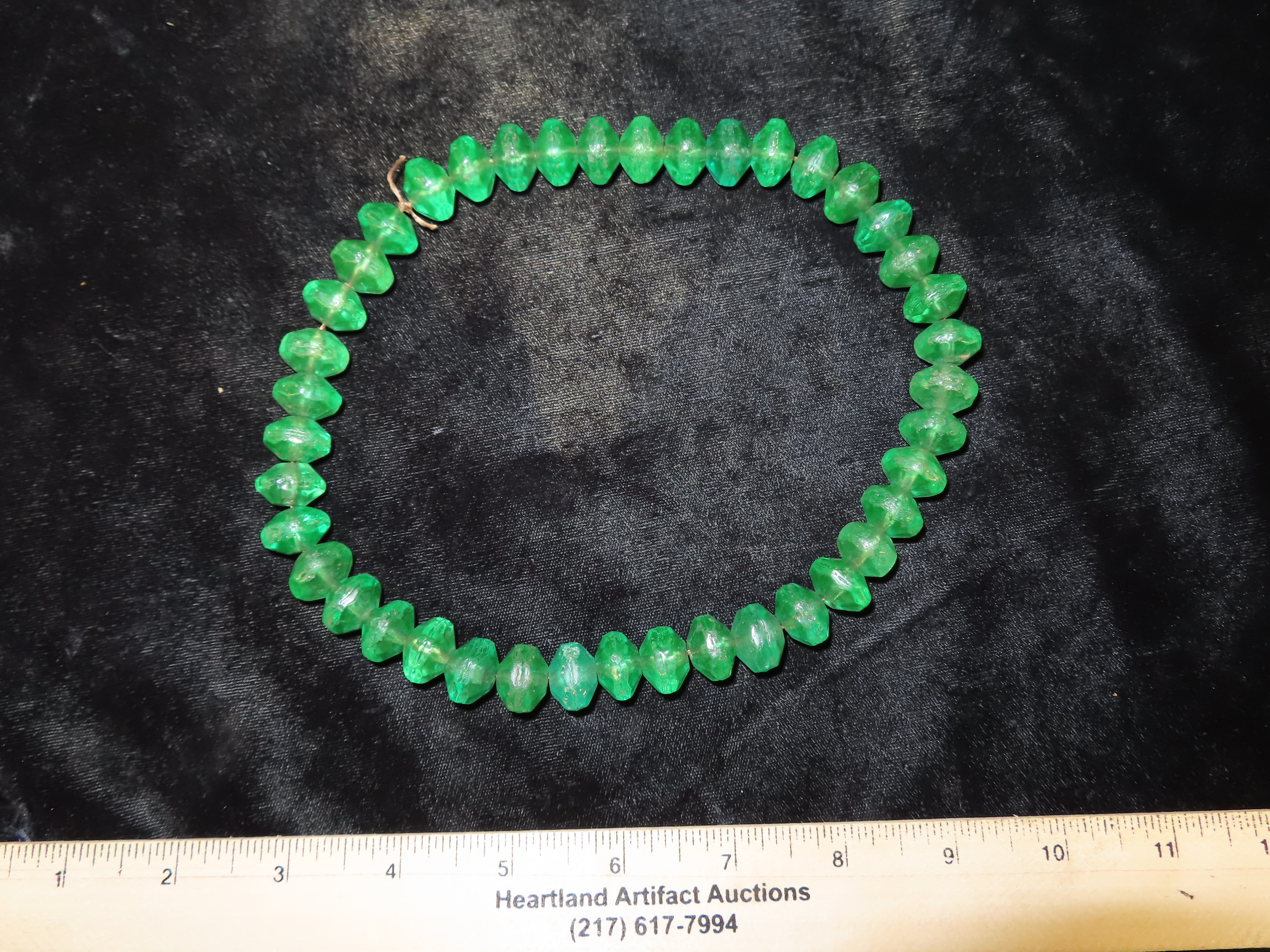 18″ Strand of Old Emerald Green Vaseline Trade Beads, Uranium Glass, Beautiful Deep Rich Color