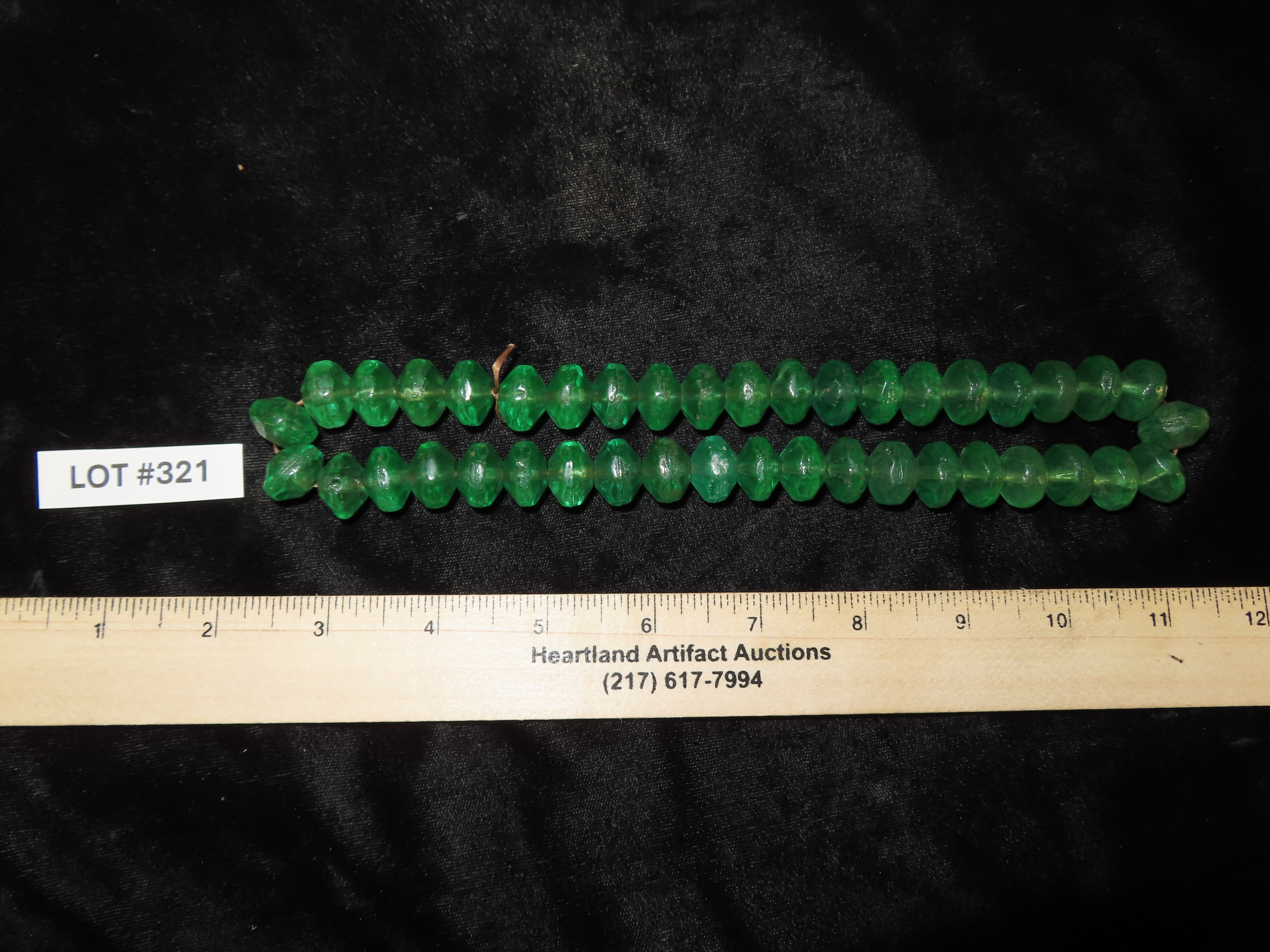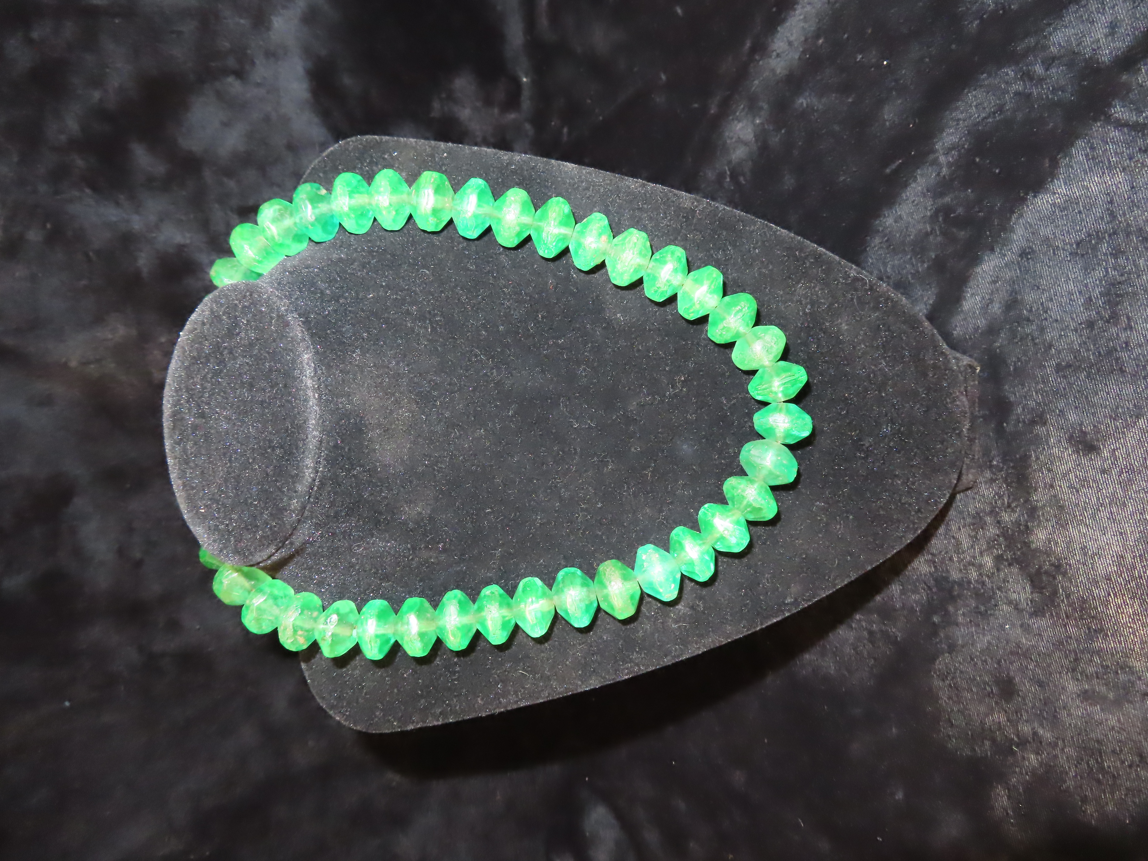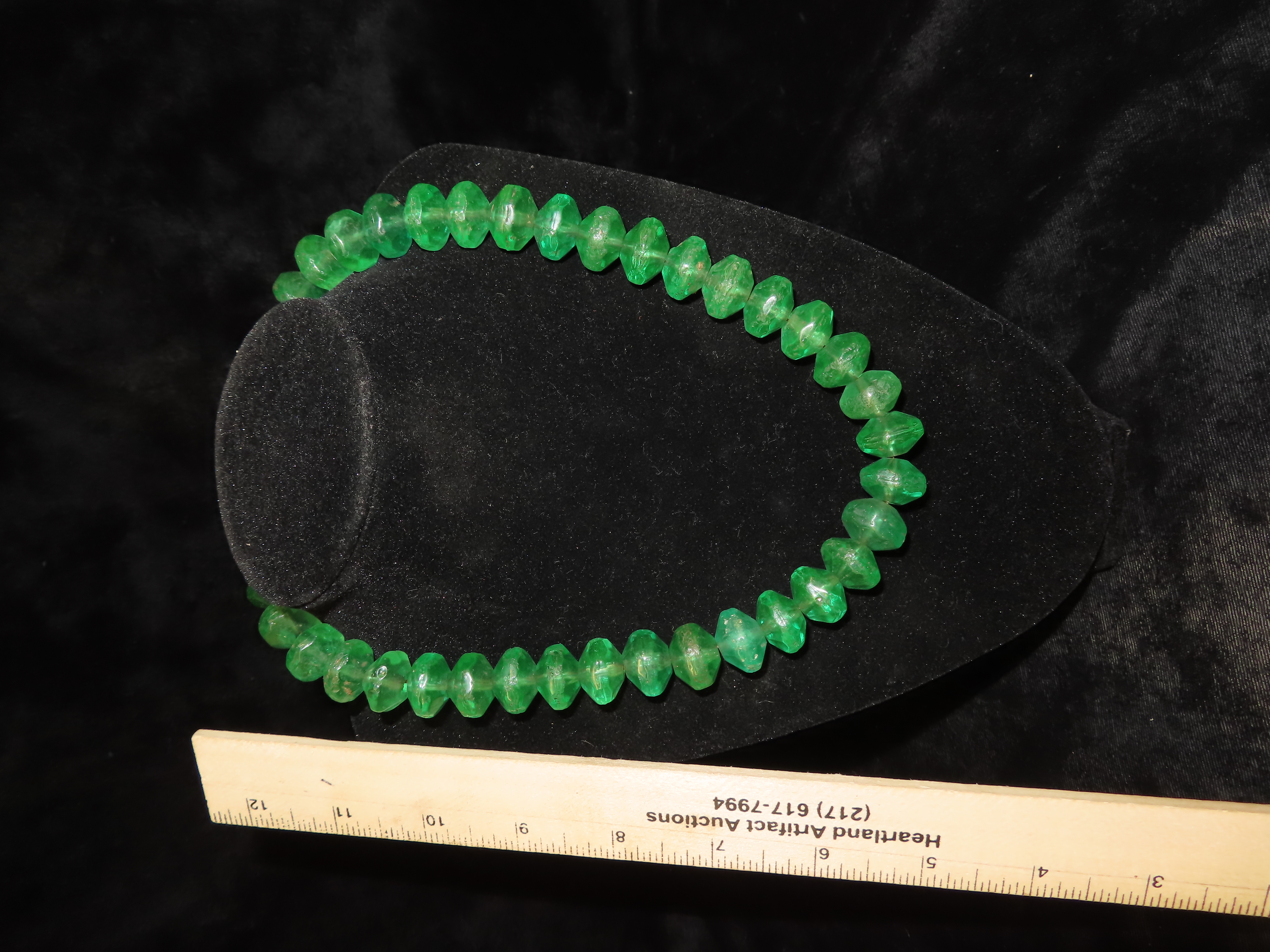 18″ Strand of Old Emerald Green Vaseline Trade Beads, Uranium Glass, Beautiful Deep Rich Color