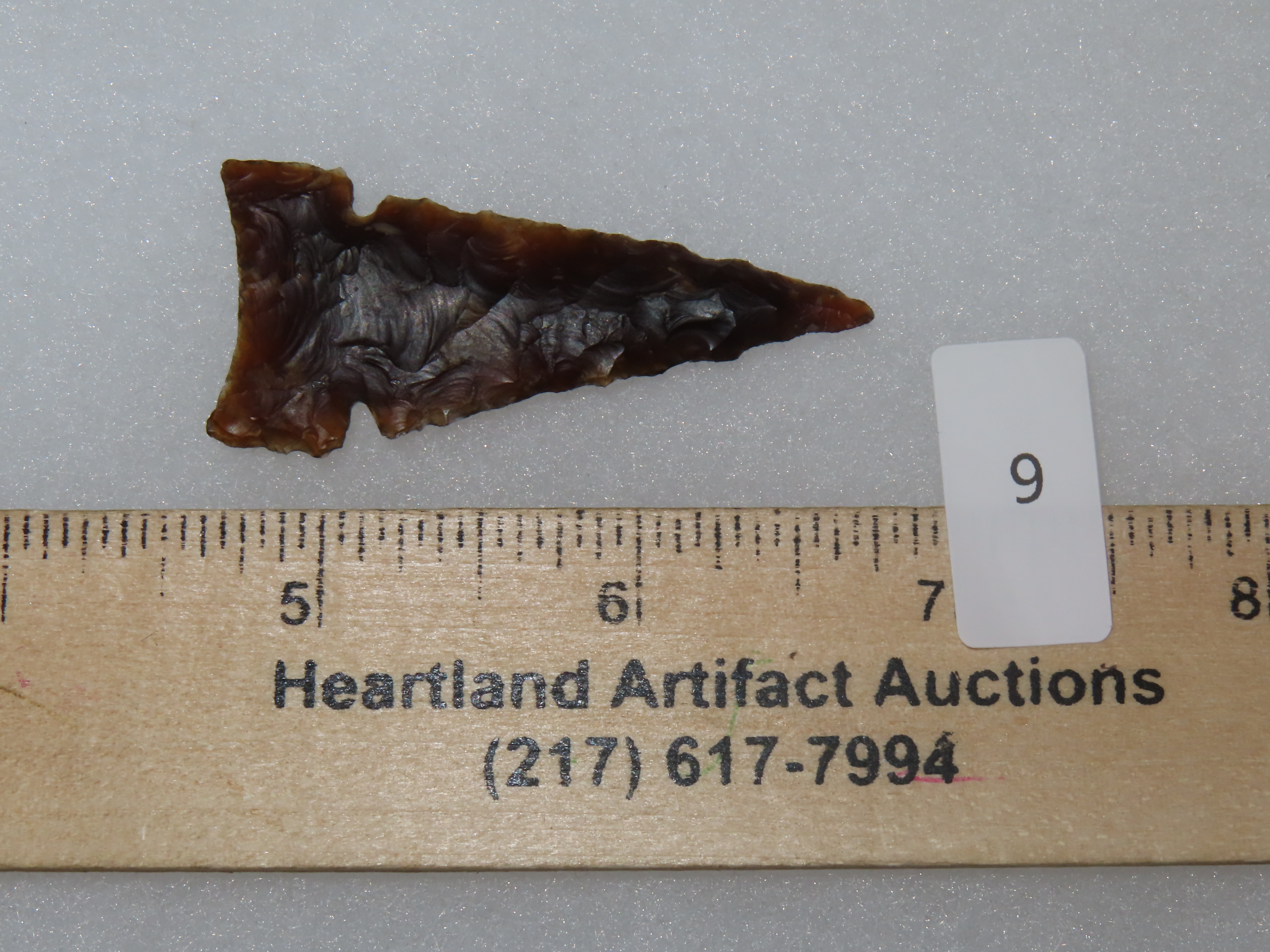 2 3/16" Translucent Knife River Flint Desert Side notch, Stillwater County Montana, Outstanding Example, Very Well Flaked with Great Age & Patina, Indian Arrowhead