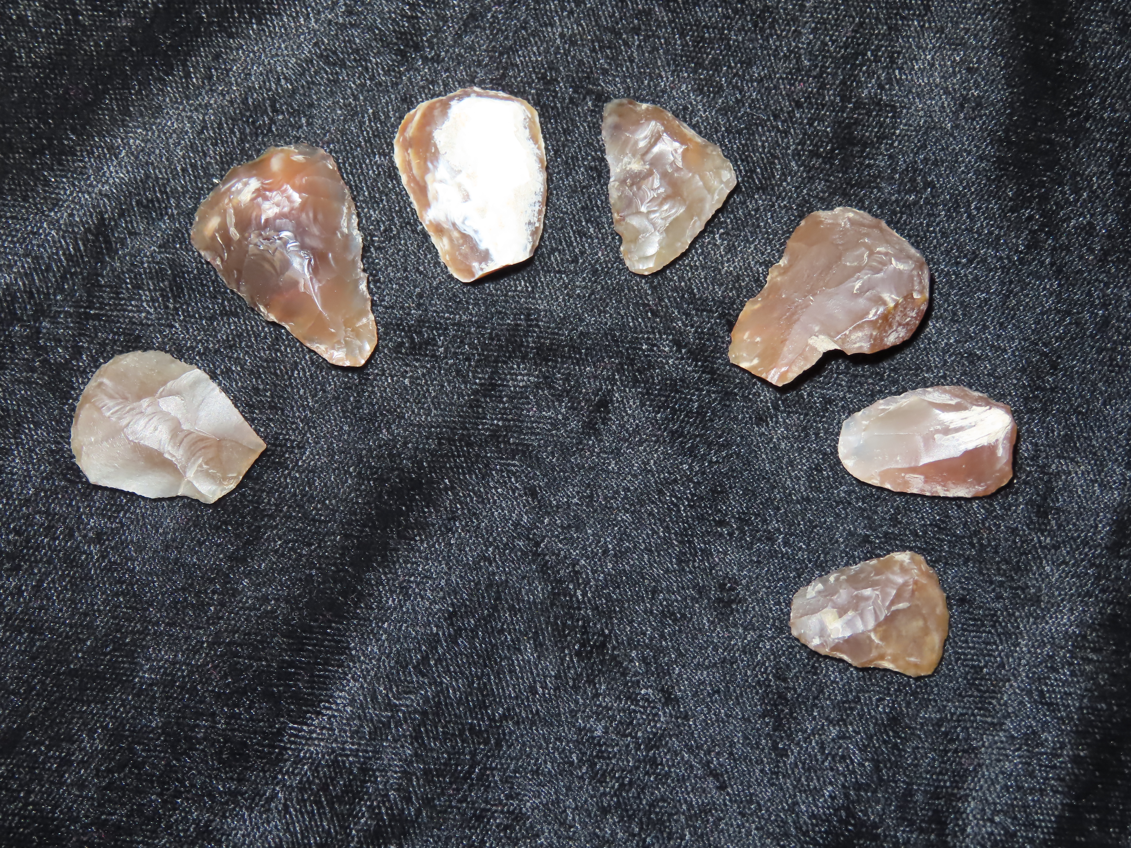 Amazing Lot of Knife River Flint Thumb Scrapers, South Dakota. Highly Translucent & Well patinated Examples.