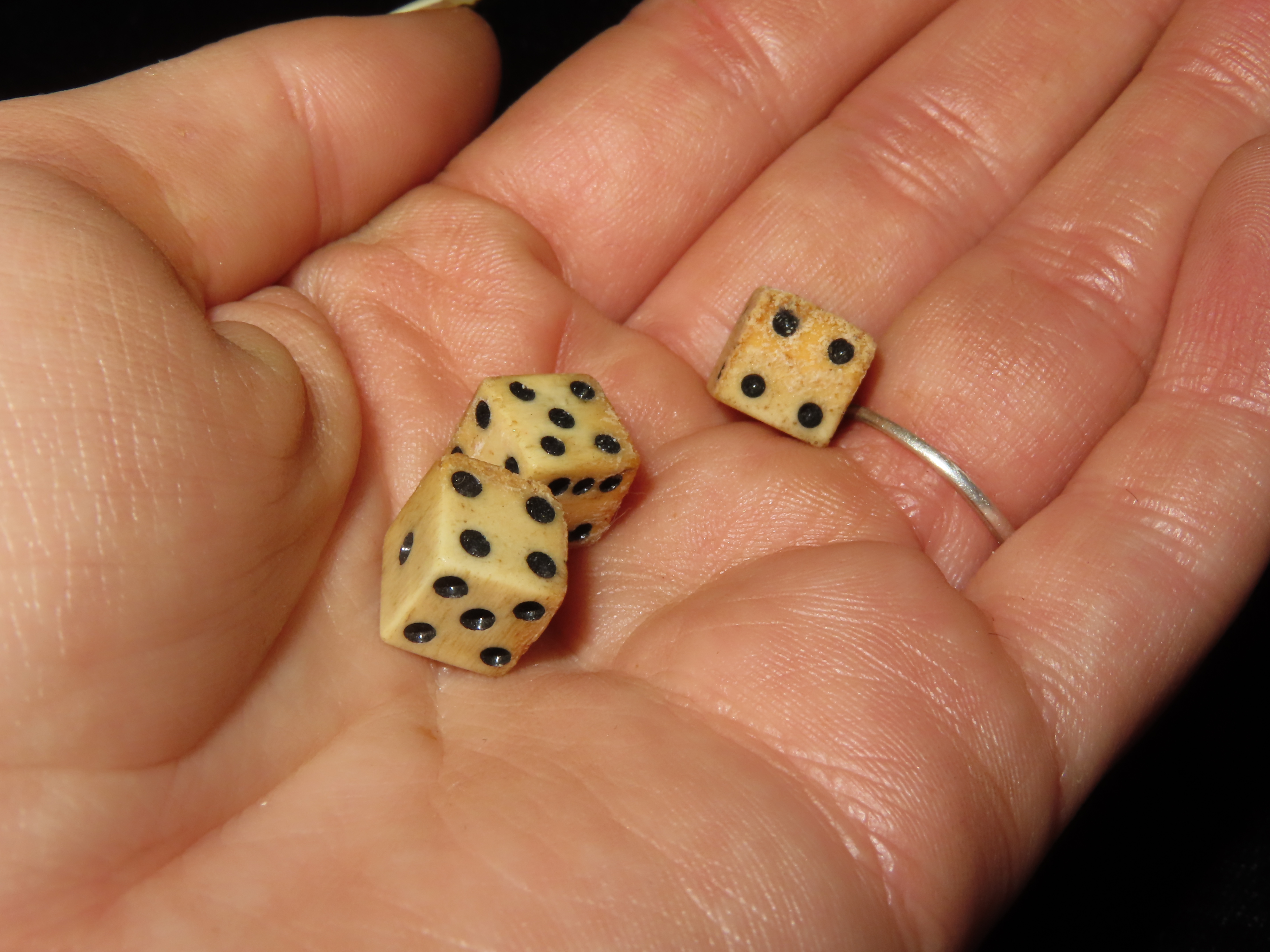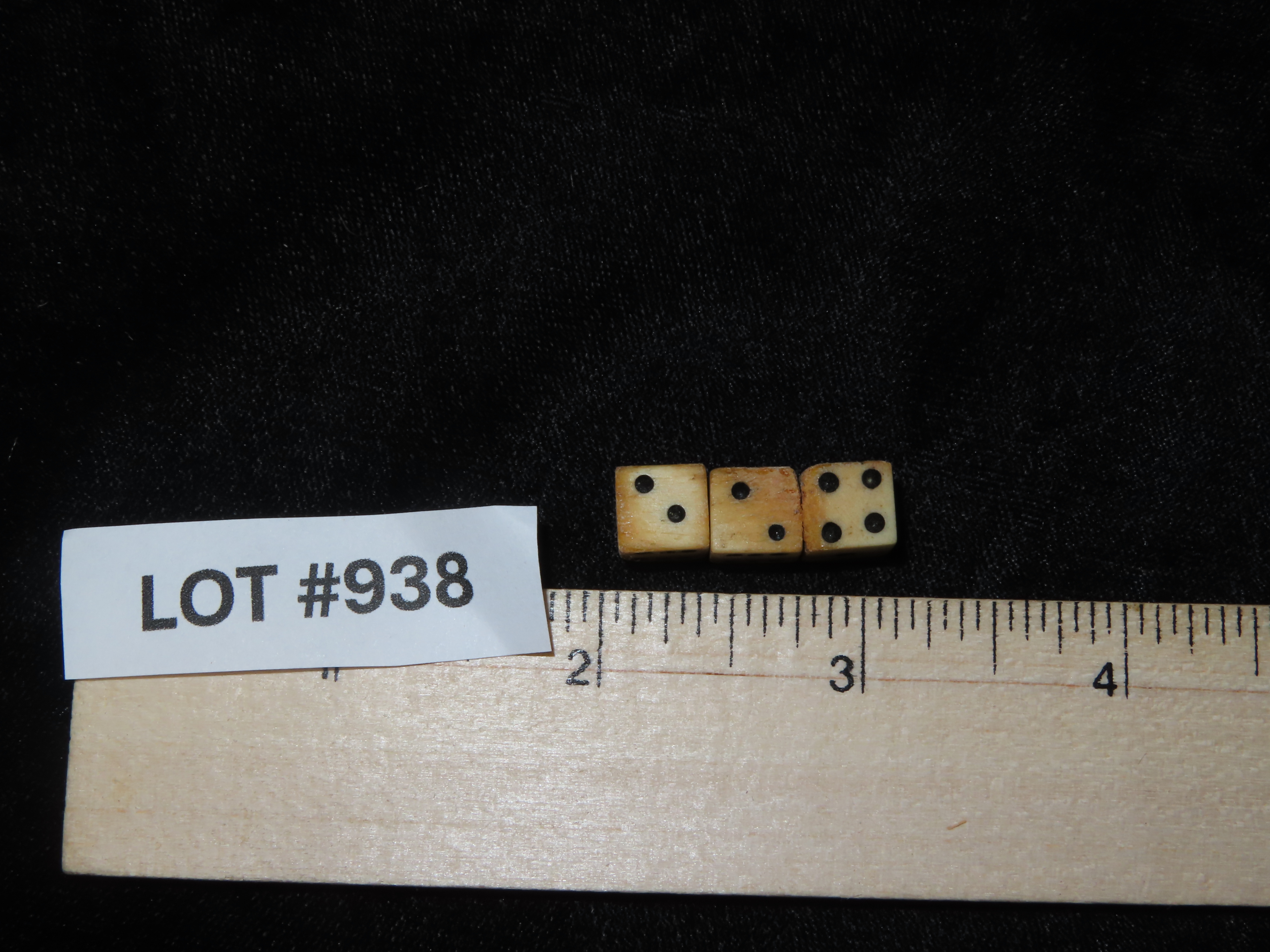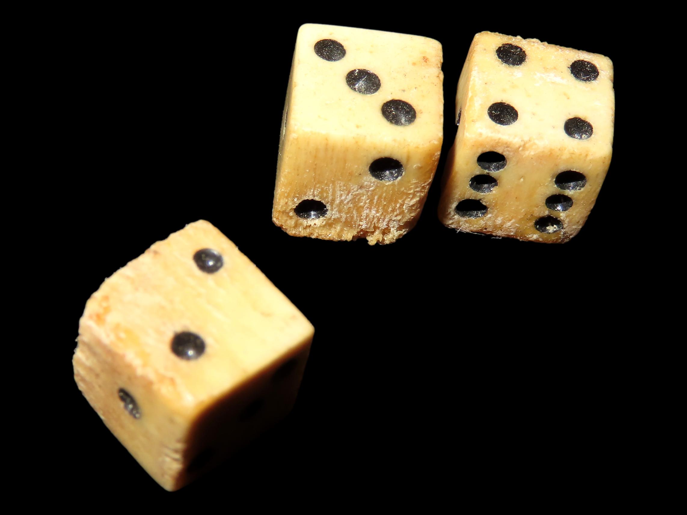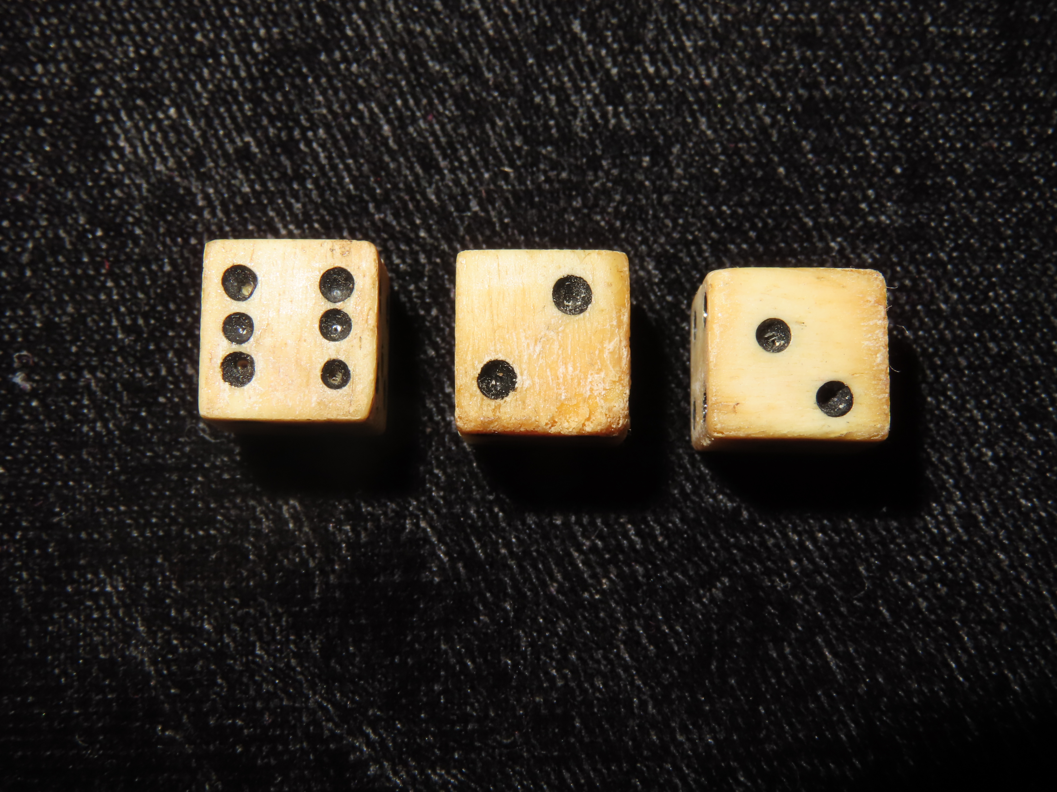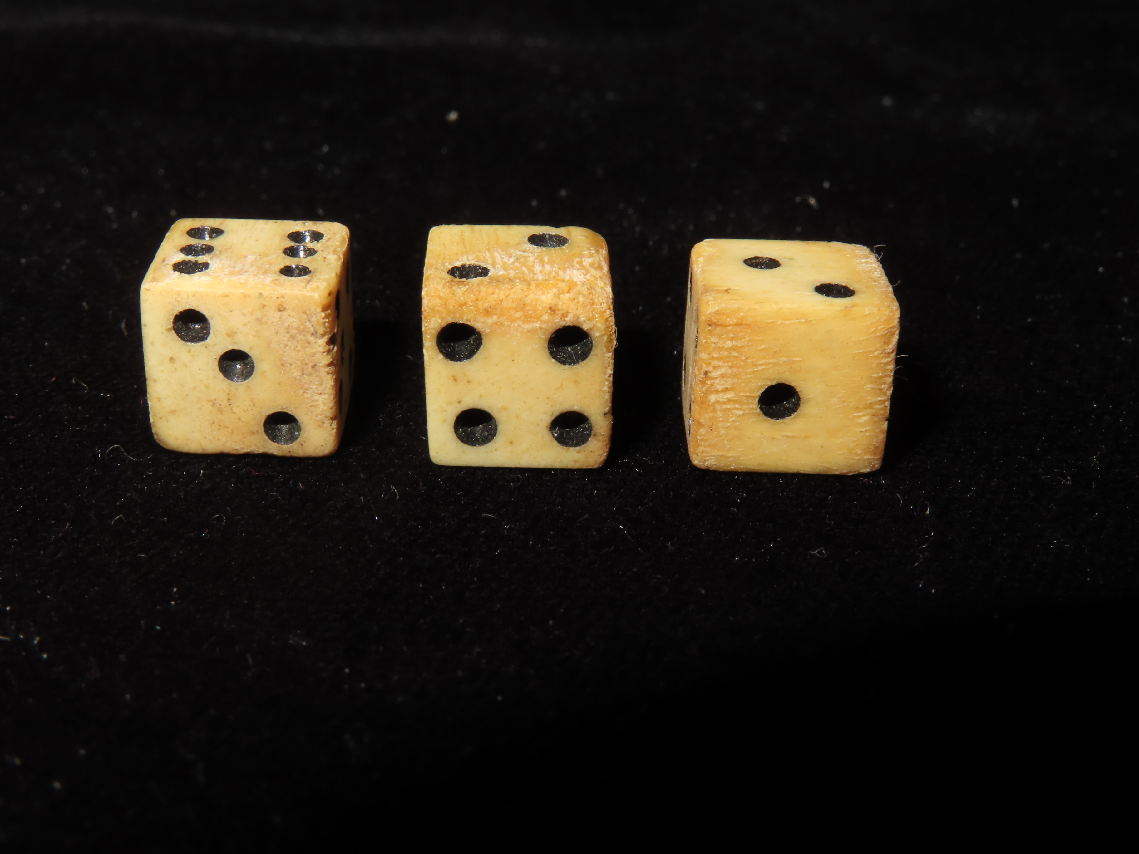 Lot of 3 Civil War Bone Dice, Matching Set, Original Period Relics