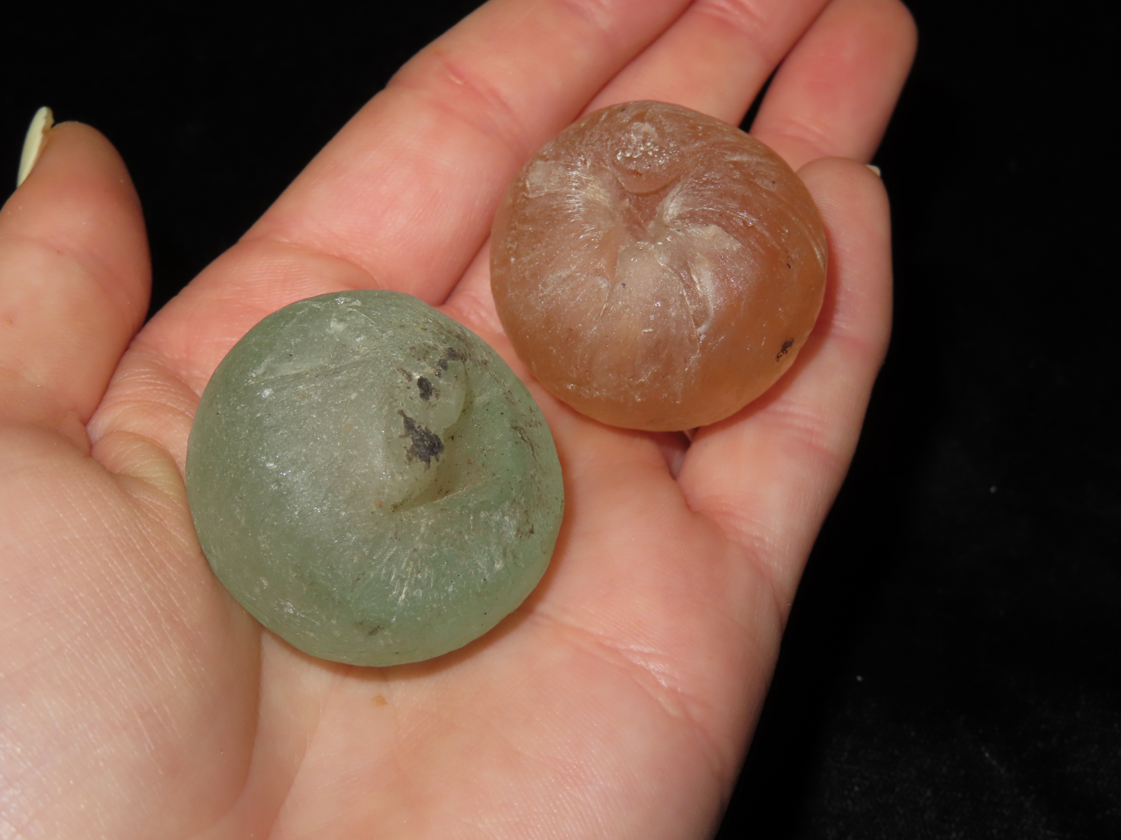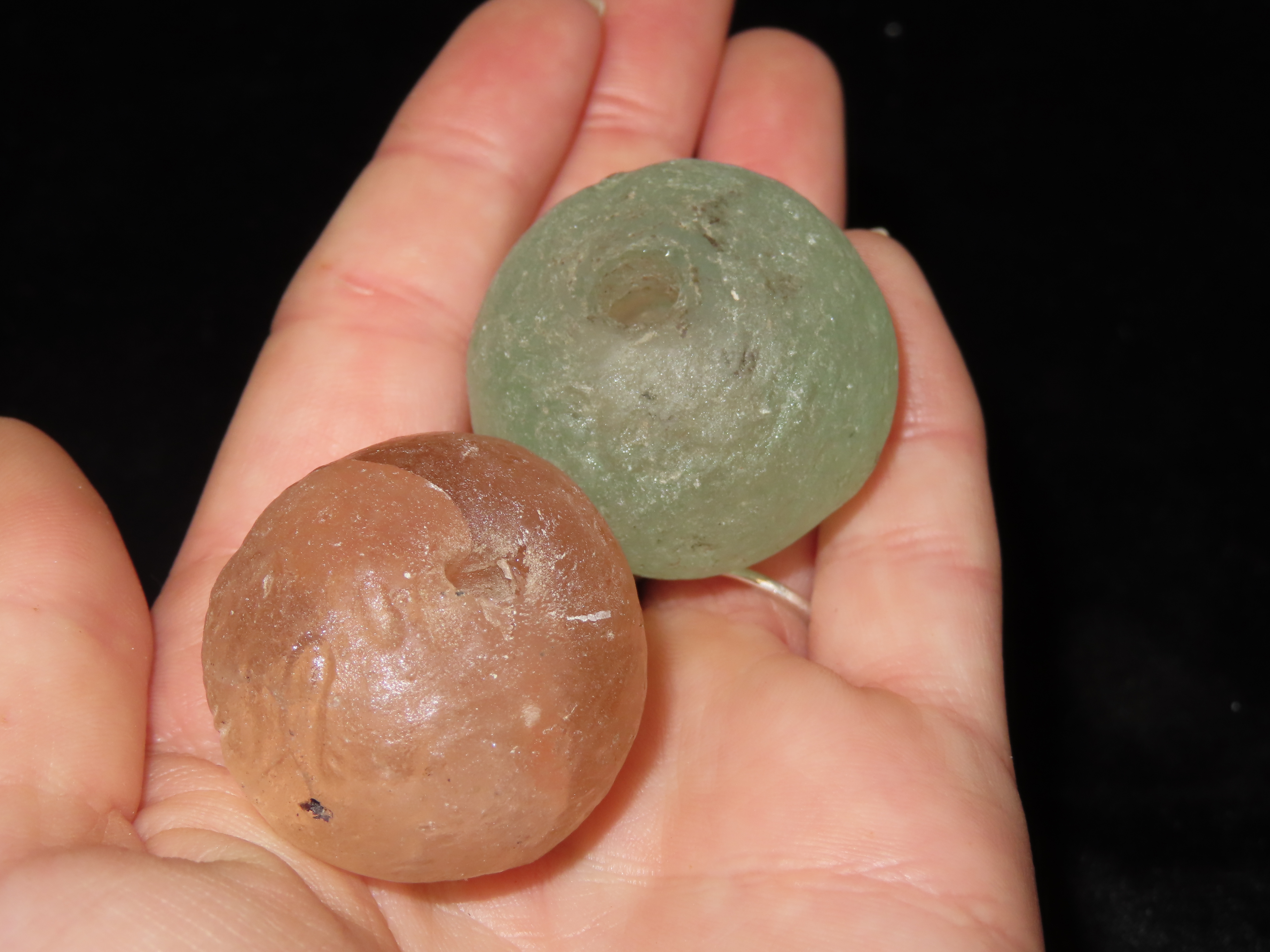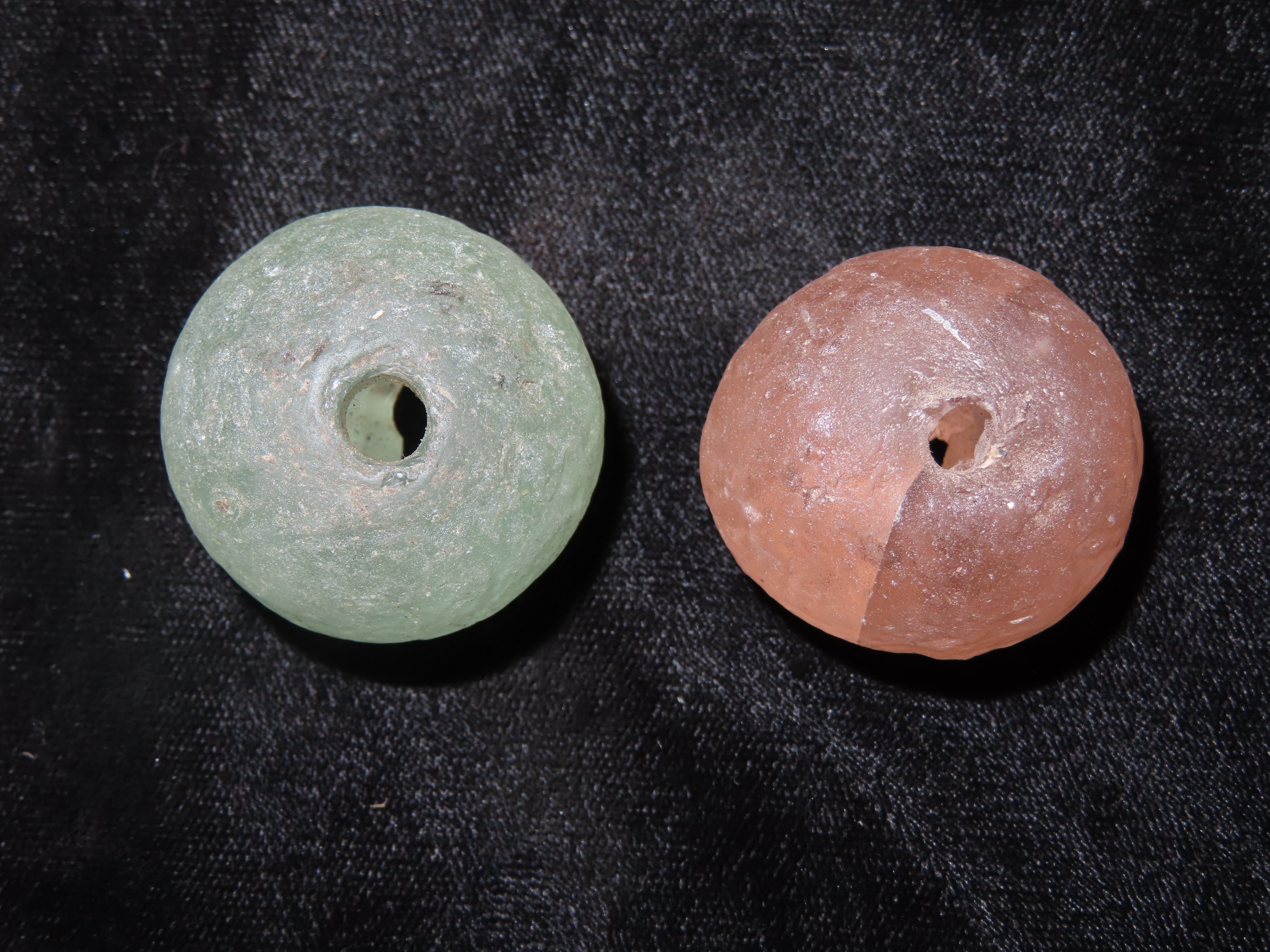 Pair of HUGE Early Glass Trade Beads. Very Large examples. Out of an old Alabama Collection.