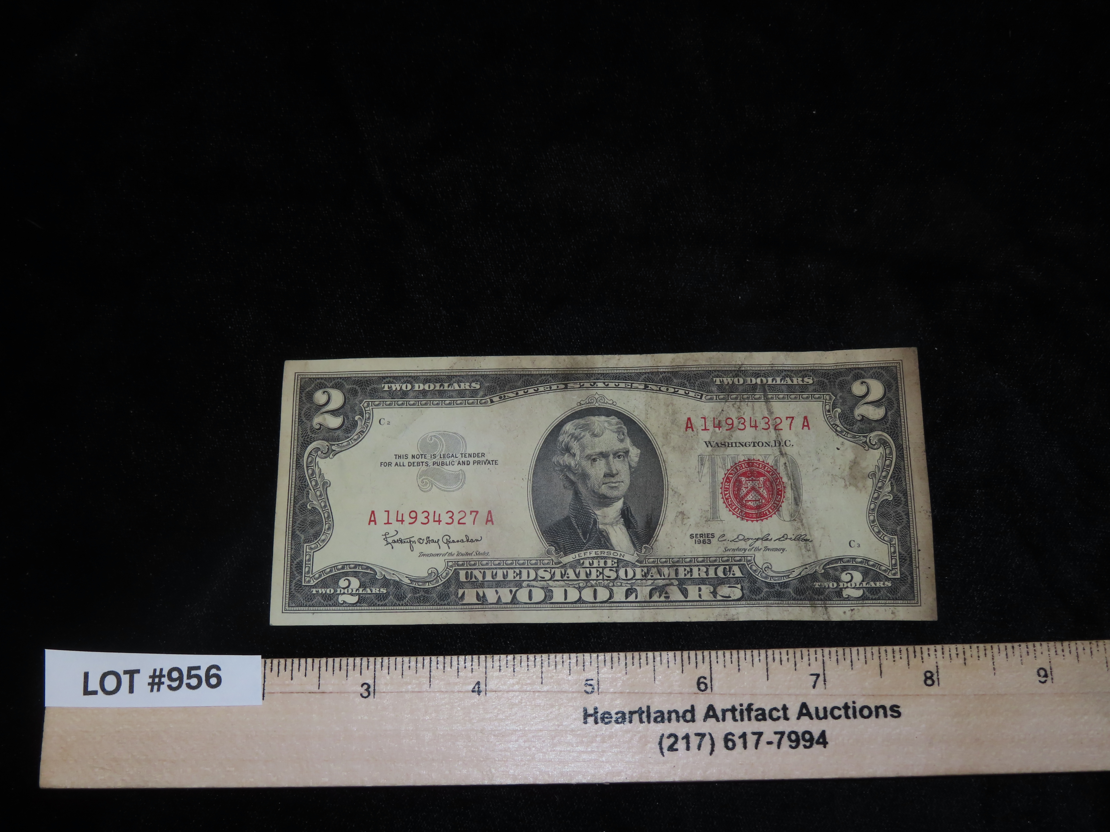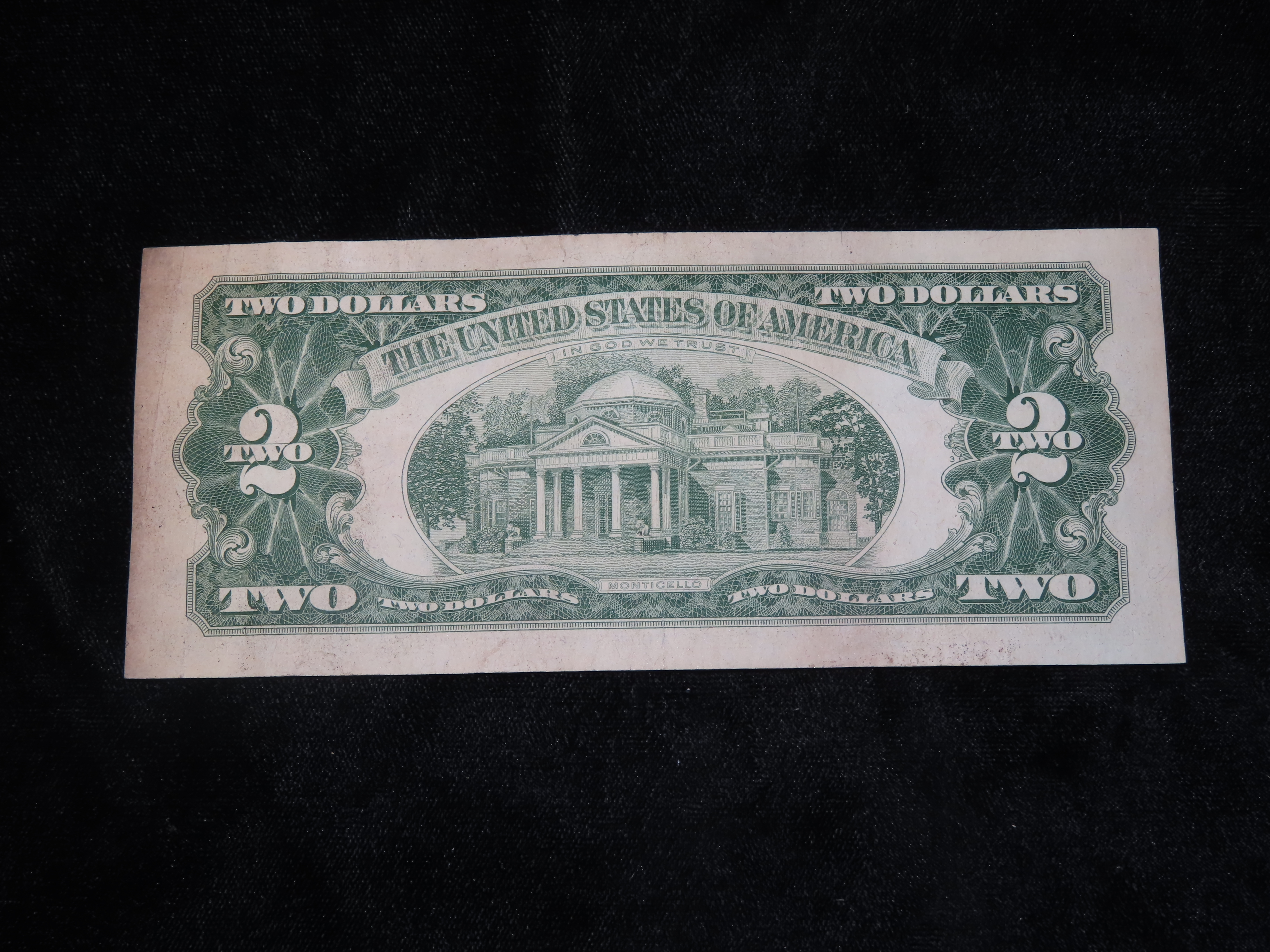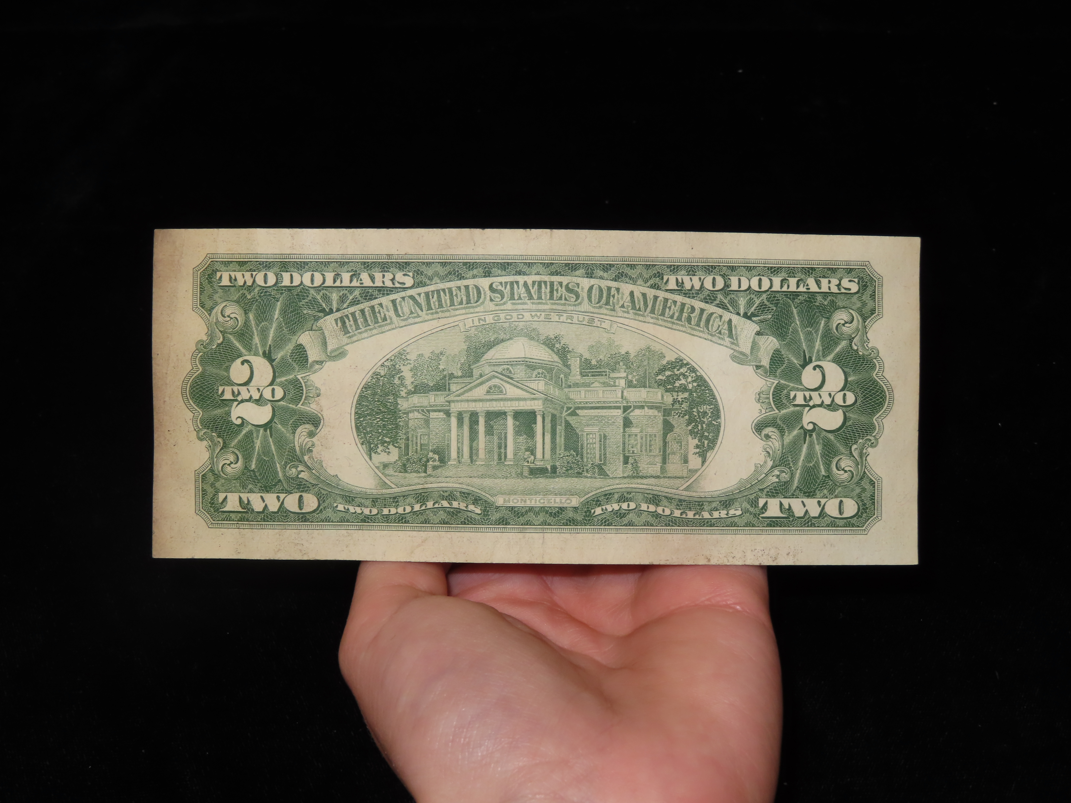 1963 Red Seal Two $2 Bill, Early Obsolete Note, U.S. Currency. Thomas Jefferson