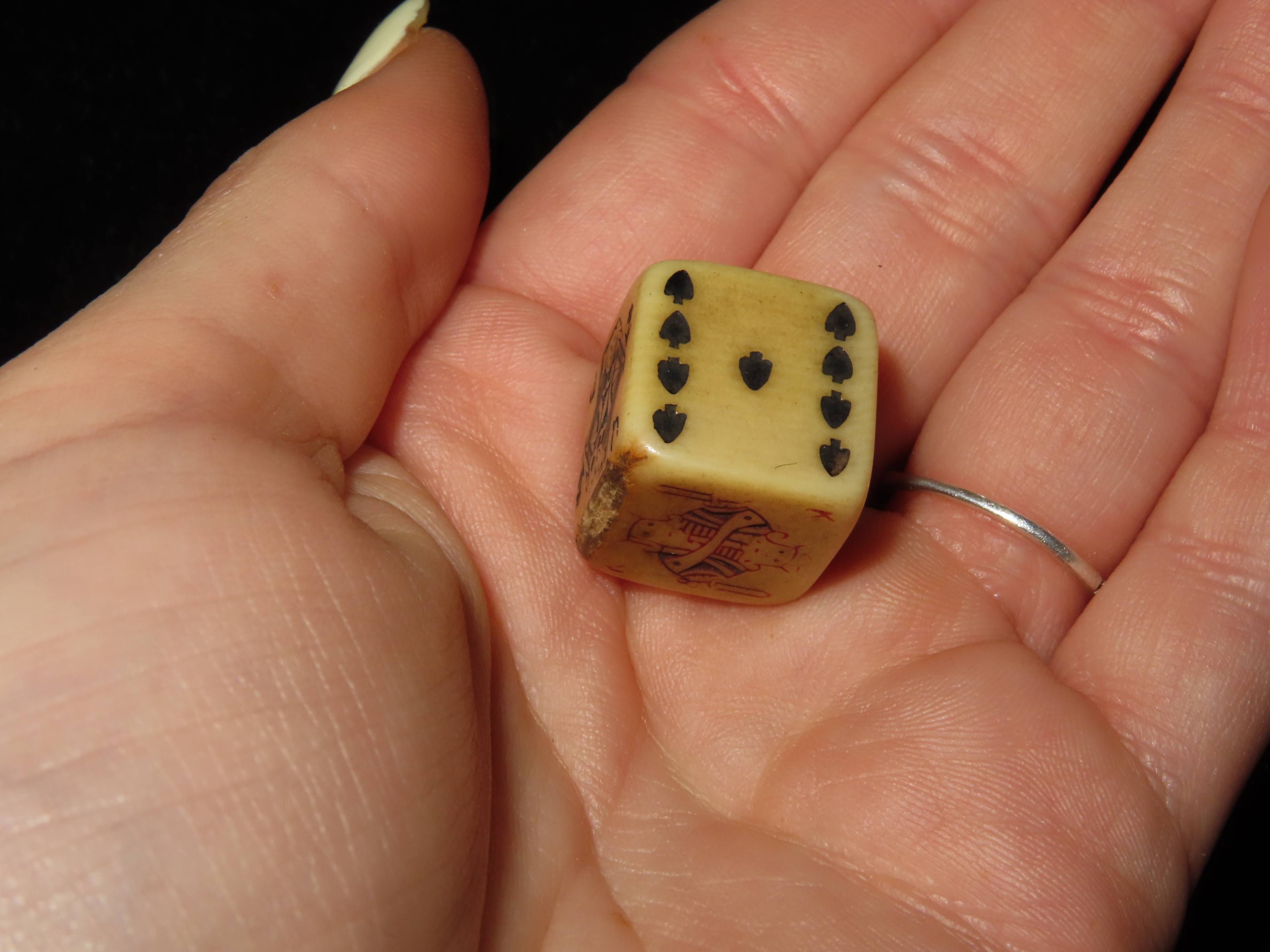 Vintage Antique Engraved Dice, Die, Jack, King, Queen, Poker, Gambling