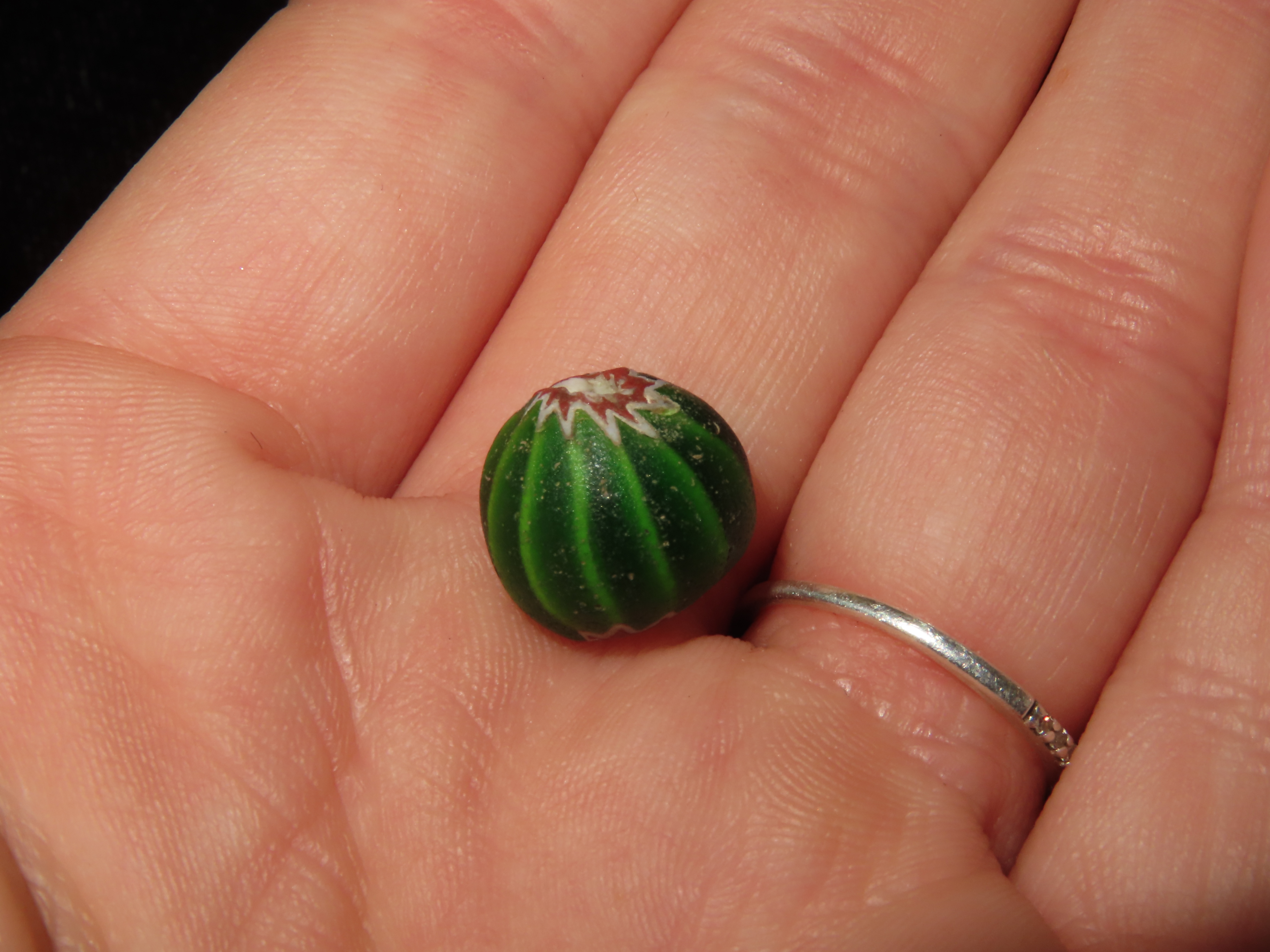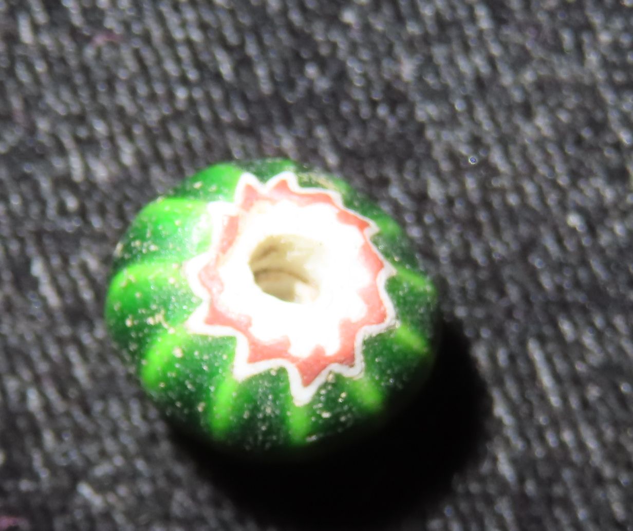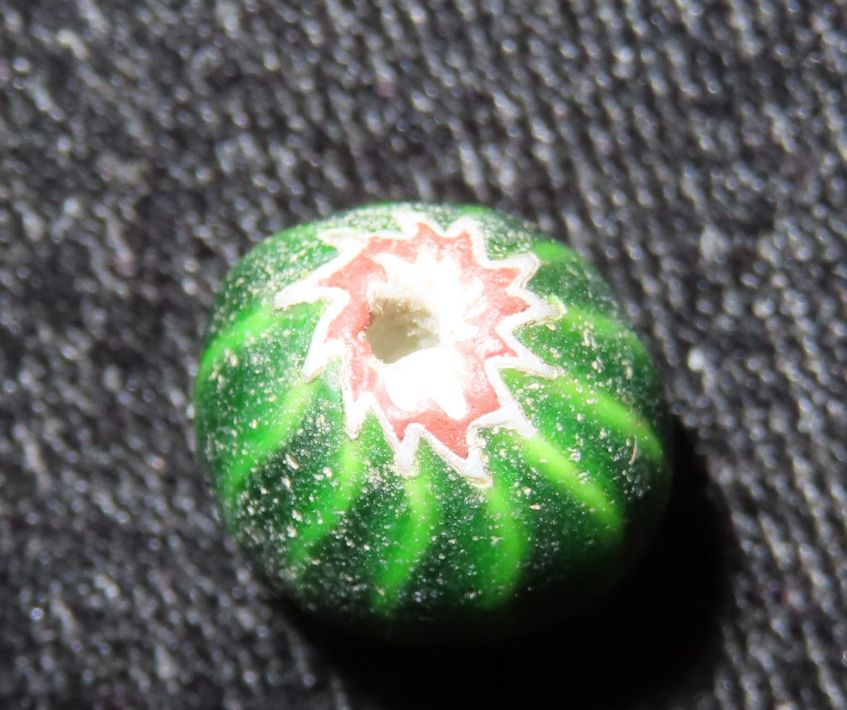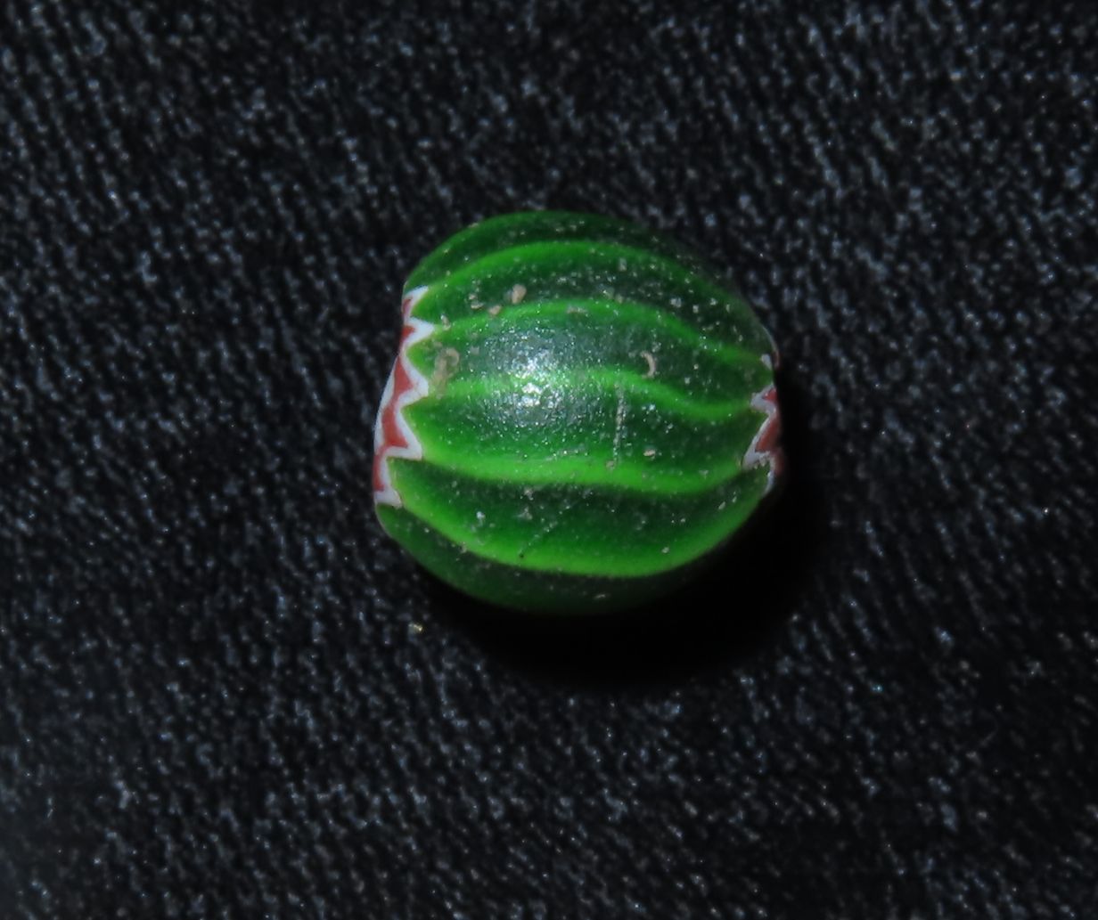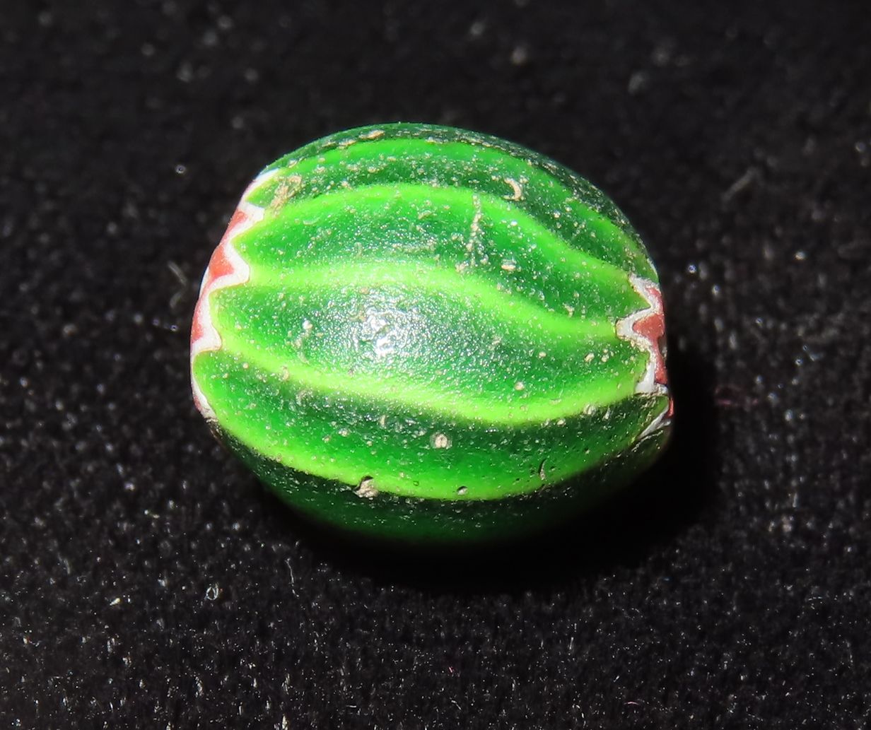 Nice Watermelon Trade Bead out of an old New York Collection. Chevron, multi Layer Bead. Excellent Patina