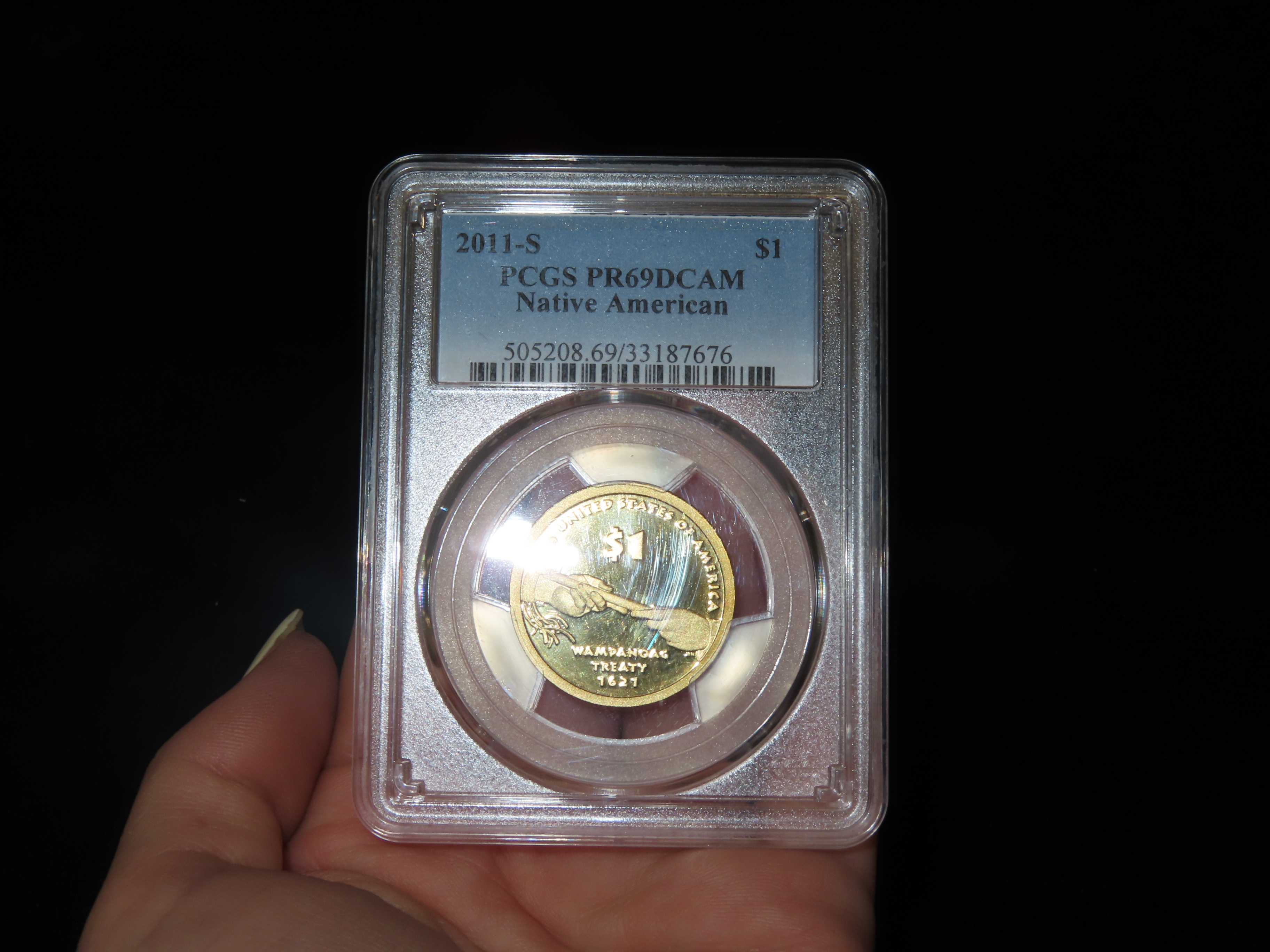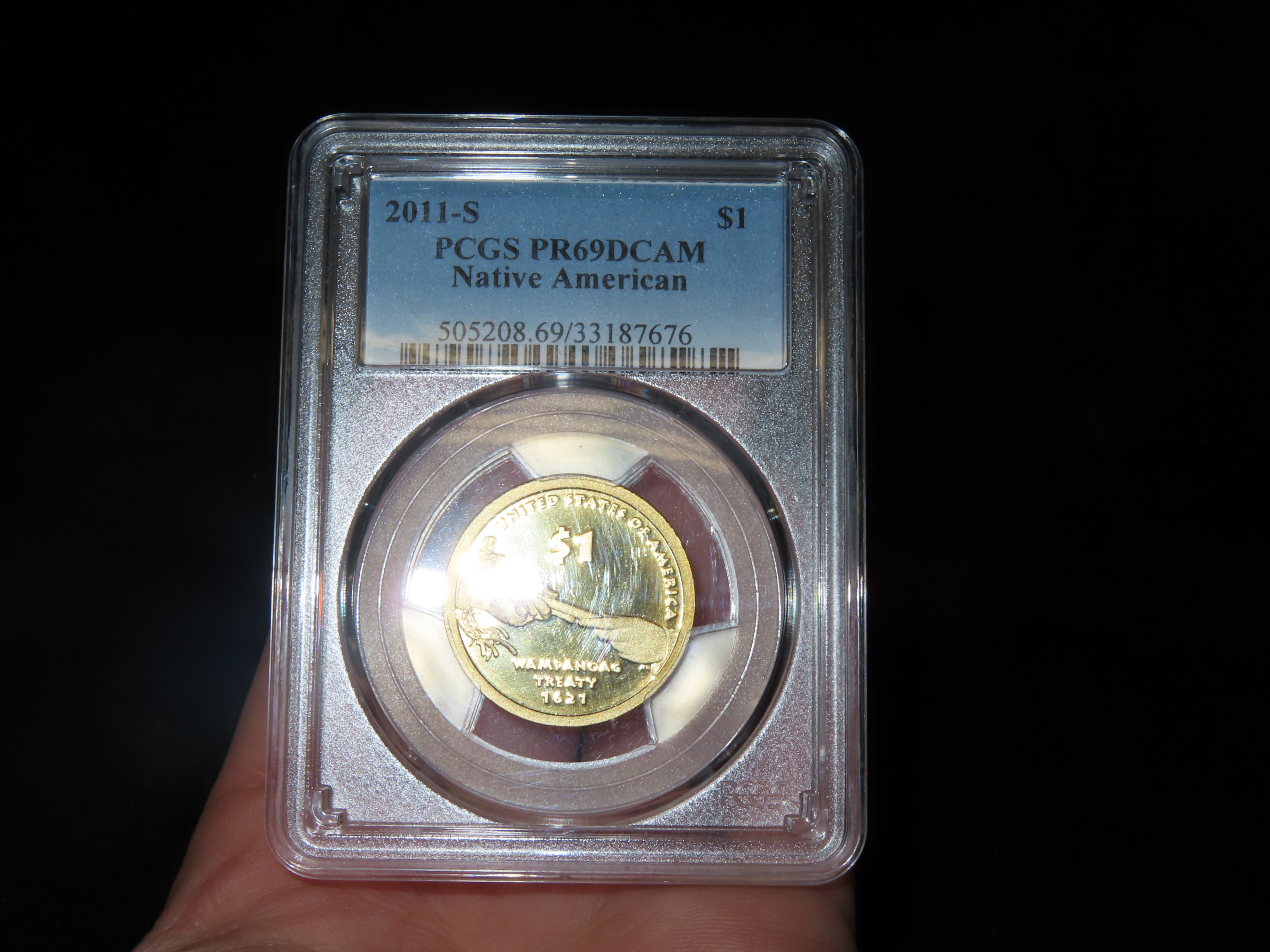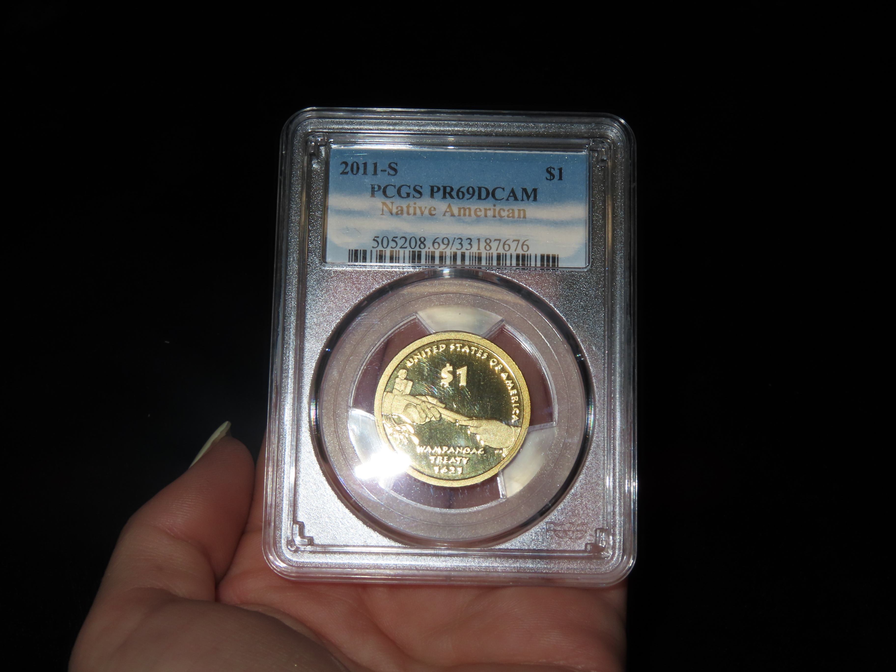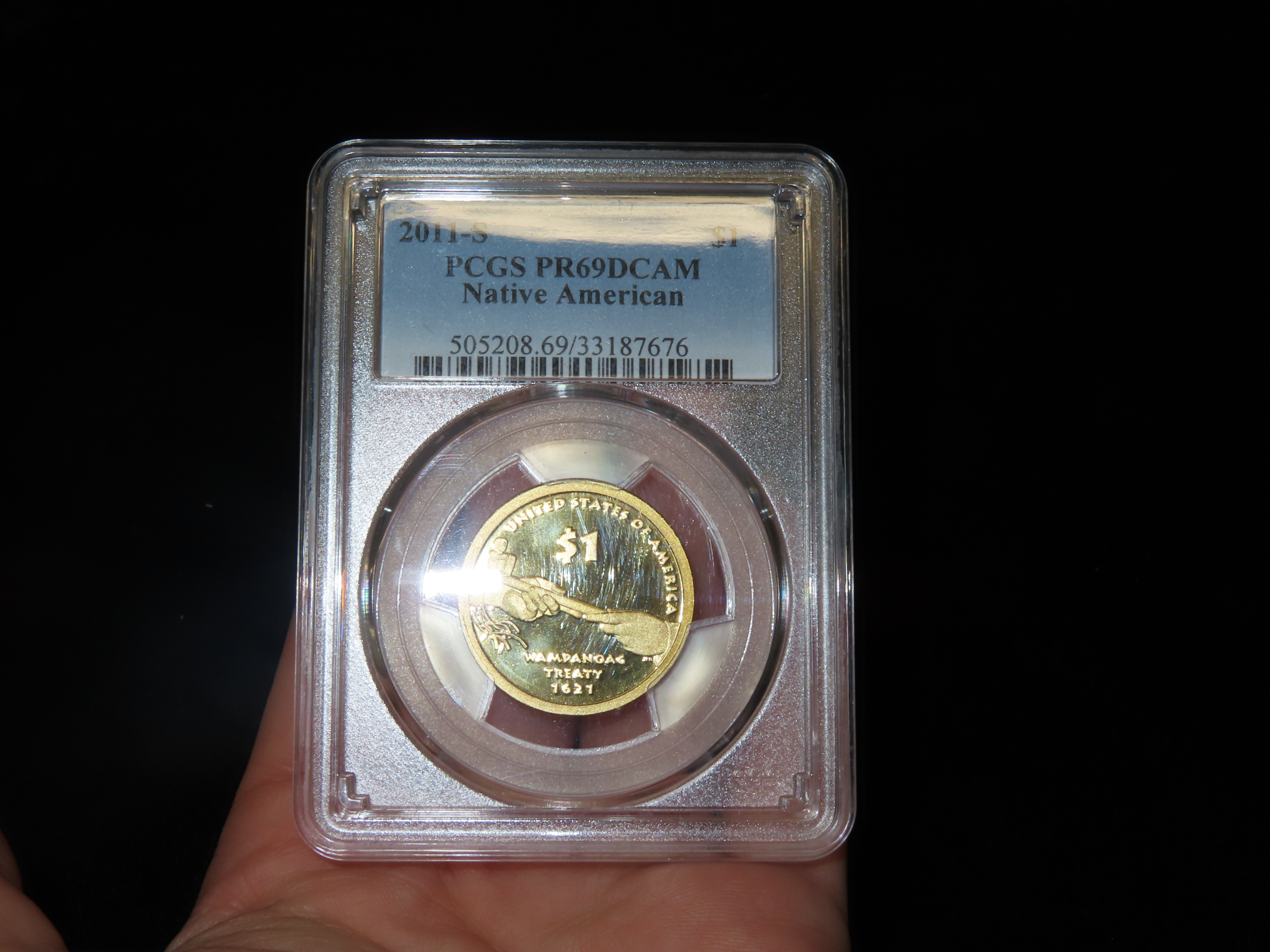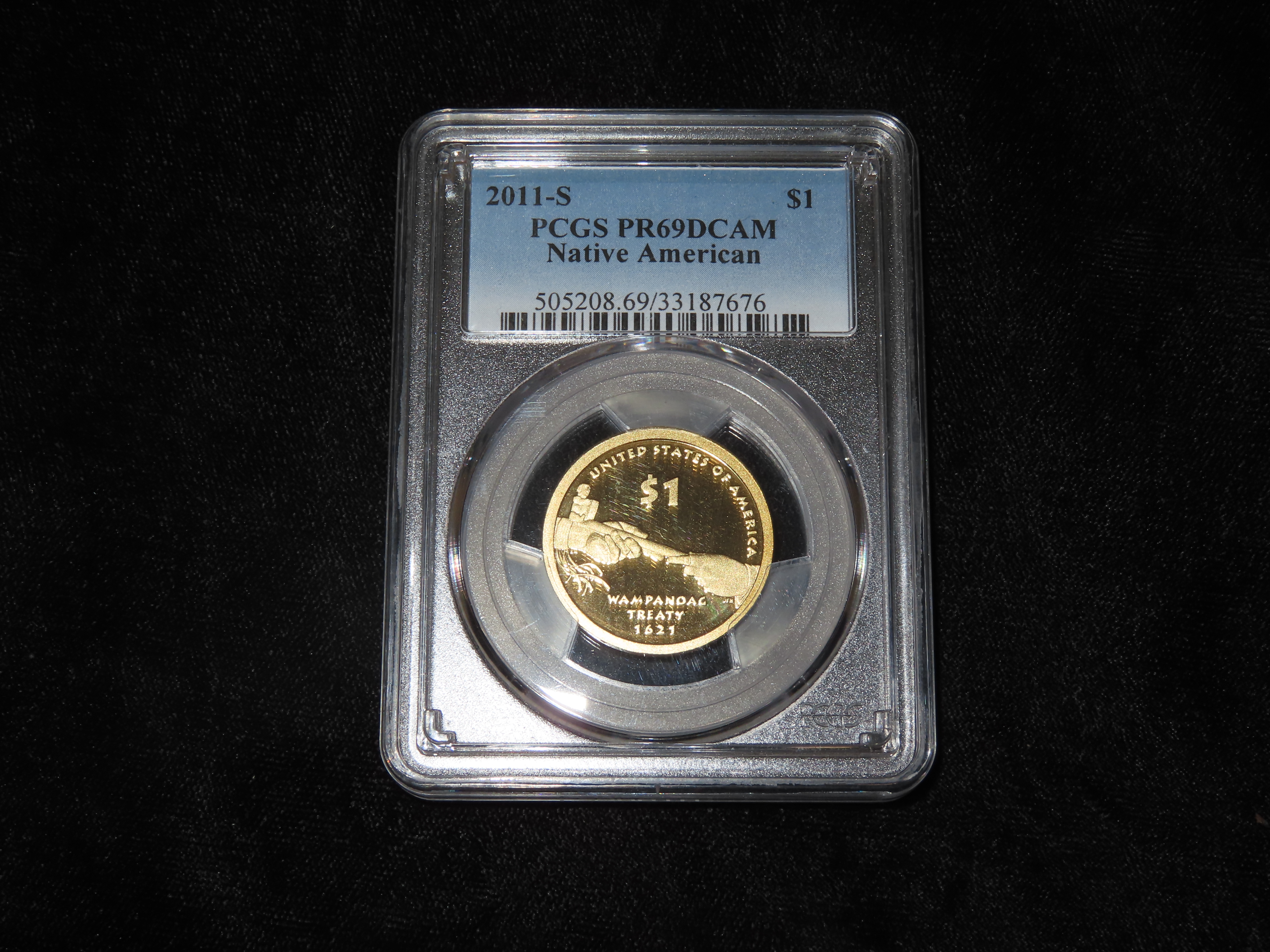 HIGH GRADE Proof 69 Deep Cameo PCGS Slabbed & Graded 2011-S Sacagawea $1 Dollar U.S. Gold Colored Clad Coin