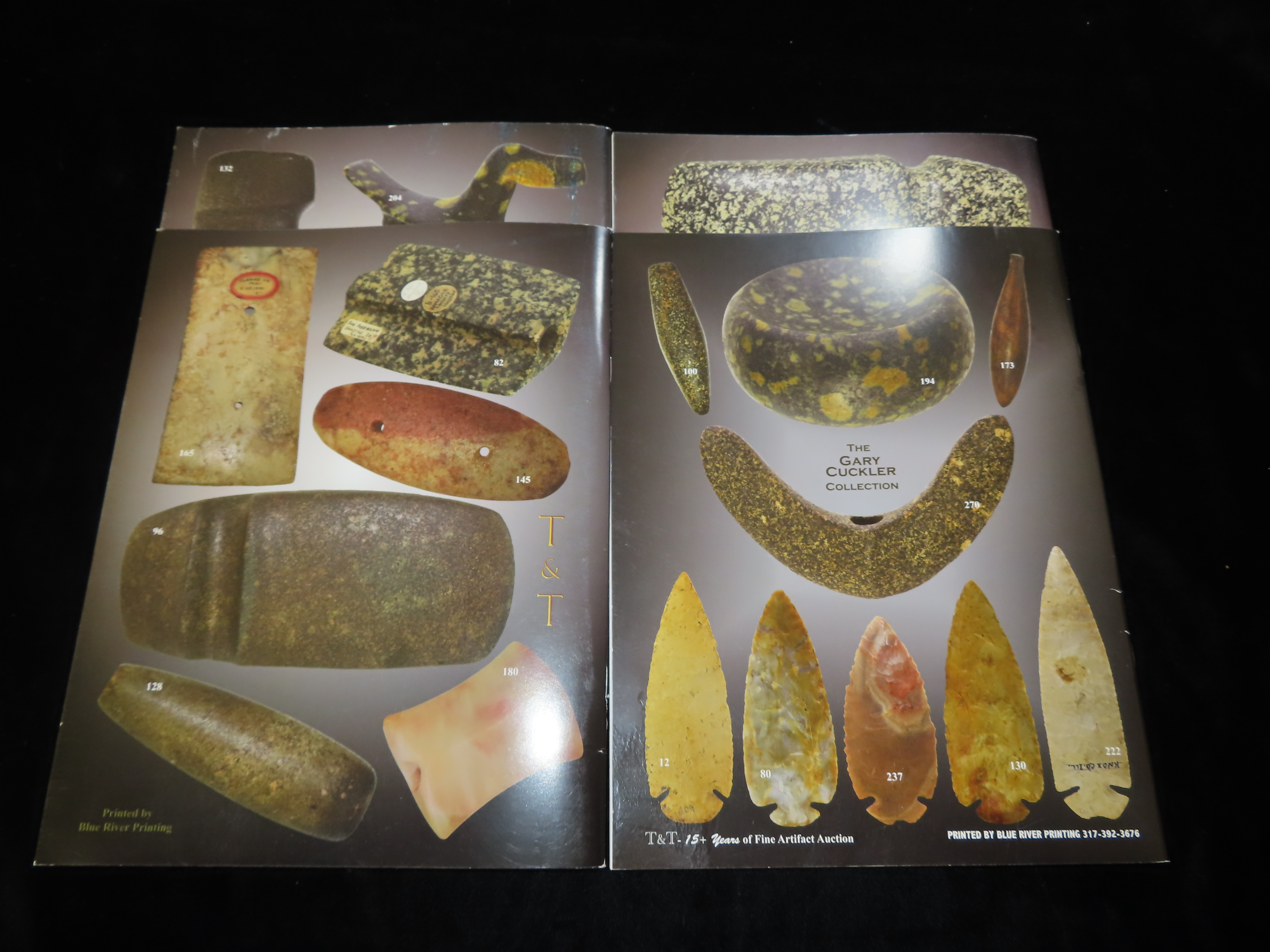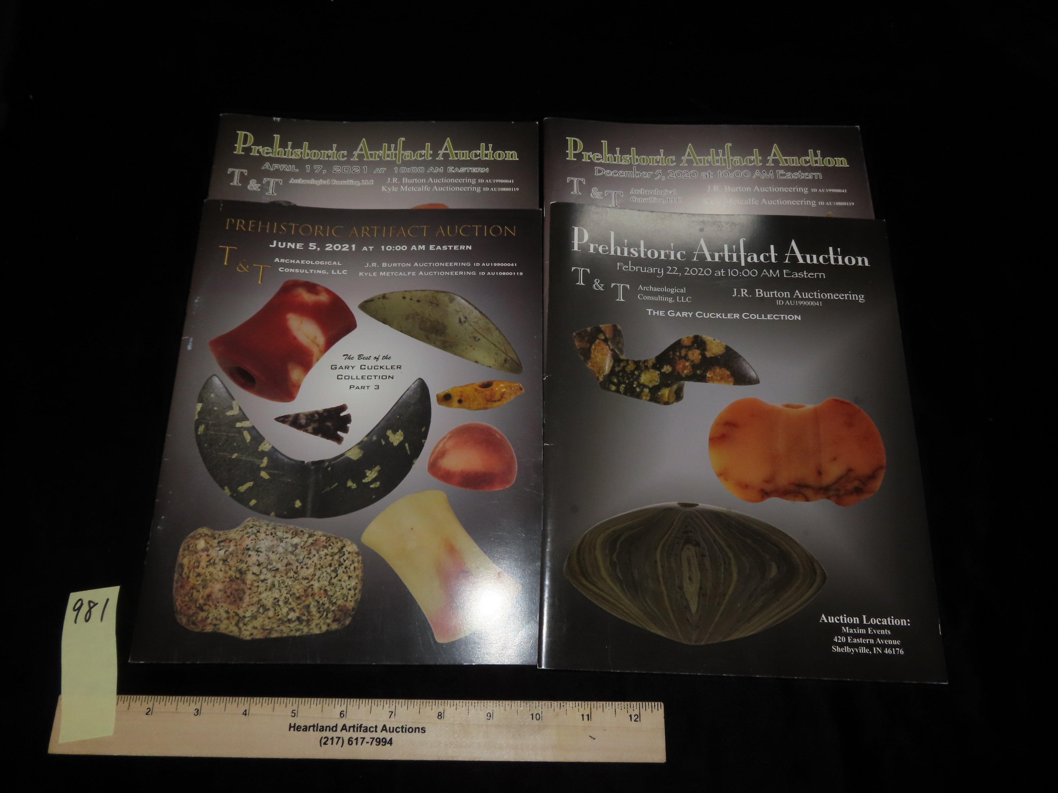 ALL 4 GARY CUCKLER AUCTION CATALOGS, QUARTZ BANNERSTONES, POP-EYED BIRDSTONES, PIPES, CLOVIS, AXES, AND MUCH MUCH MORE