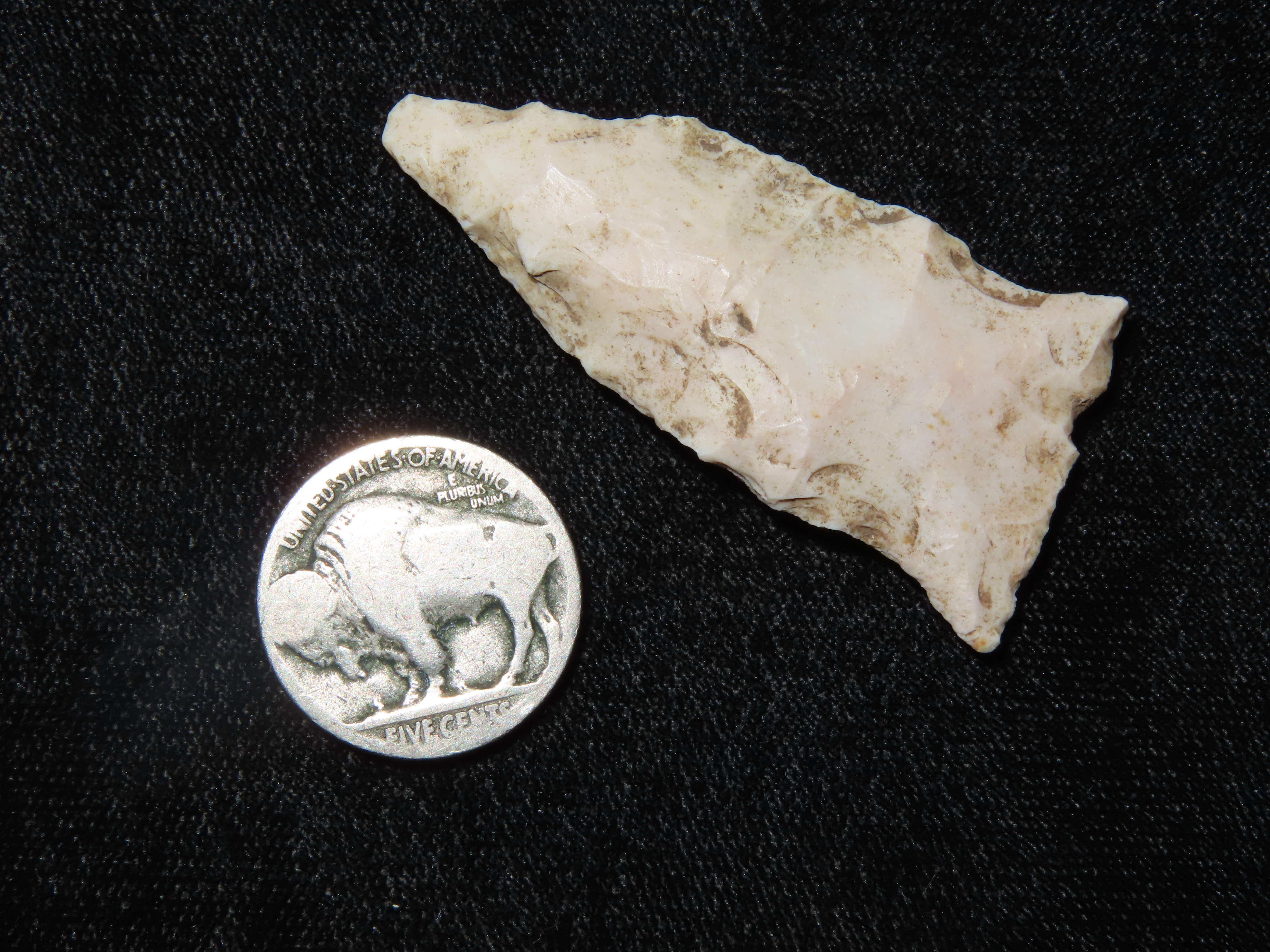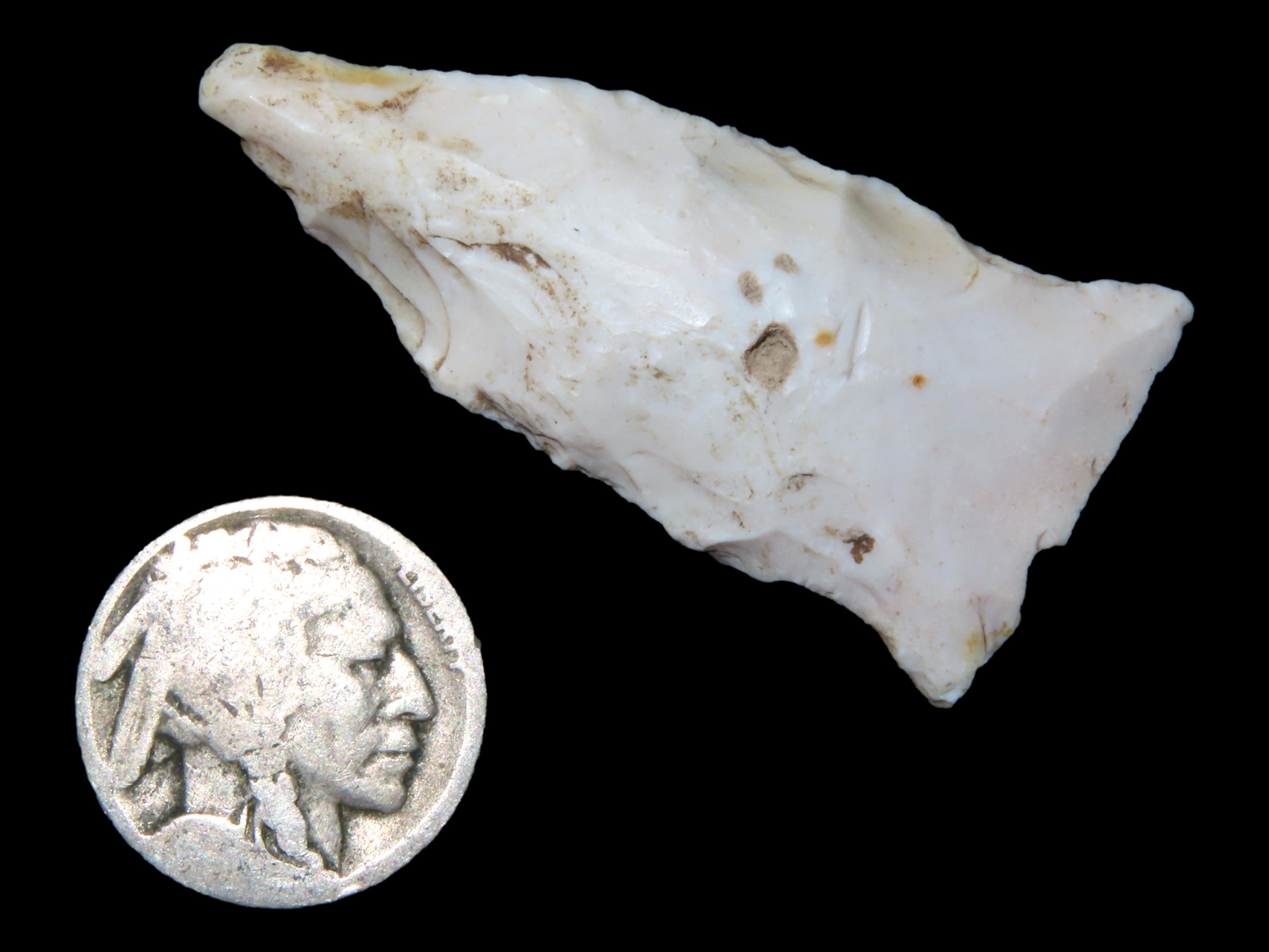 Nice Rice Shallow Side Notch Arrowhead & Buffalo Nickel, Southern Missouri.