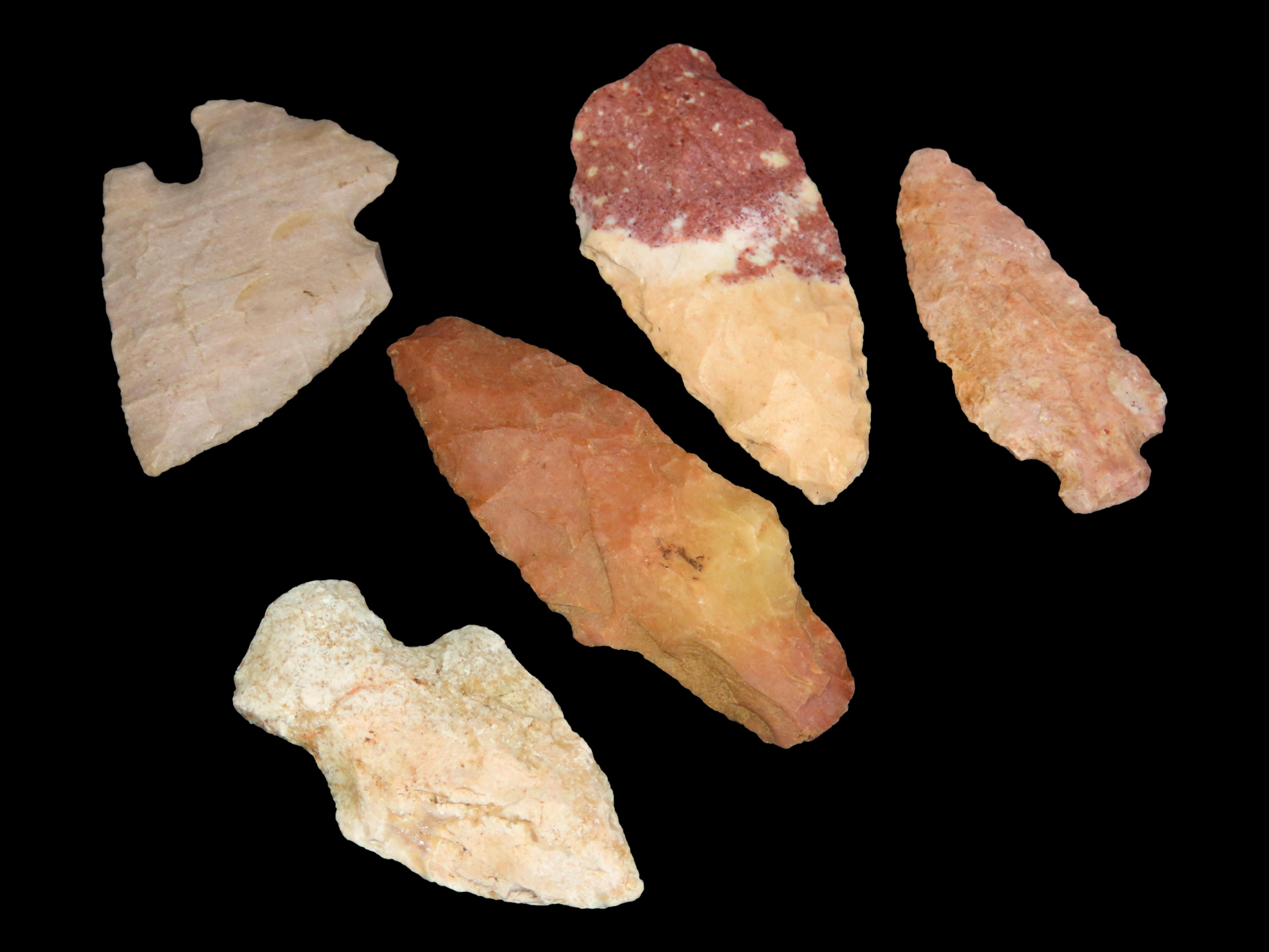5 Colorful Arrowheads found on the Joe Czaia Farm in Jersey Co IL