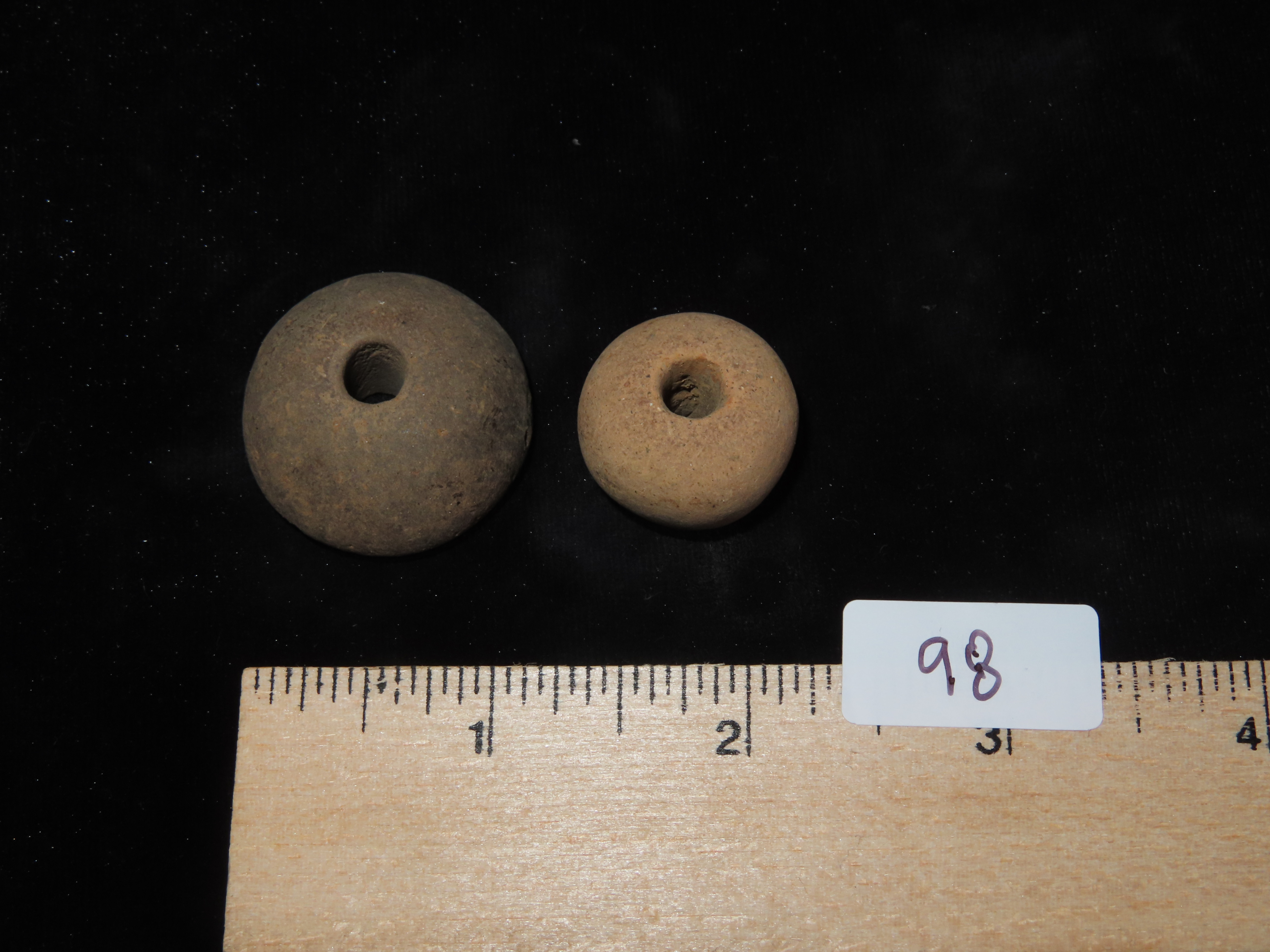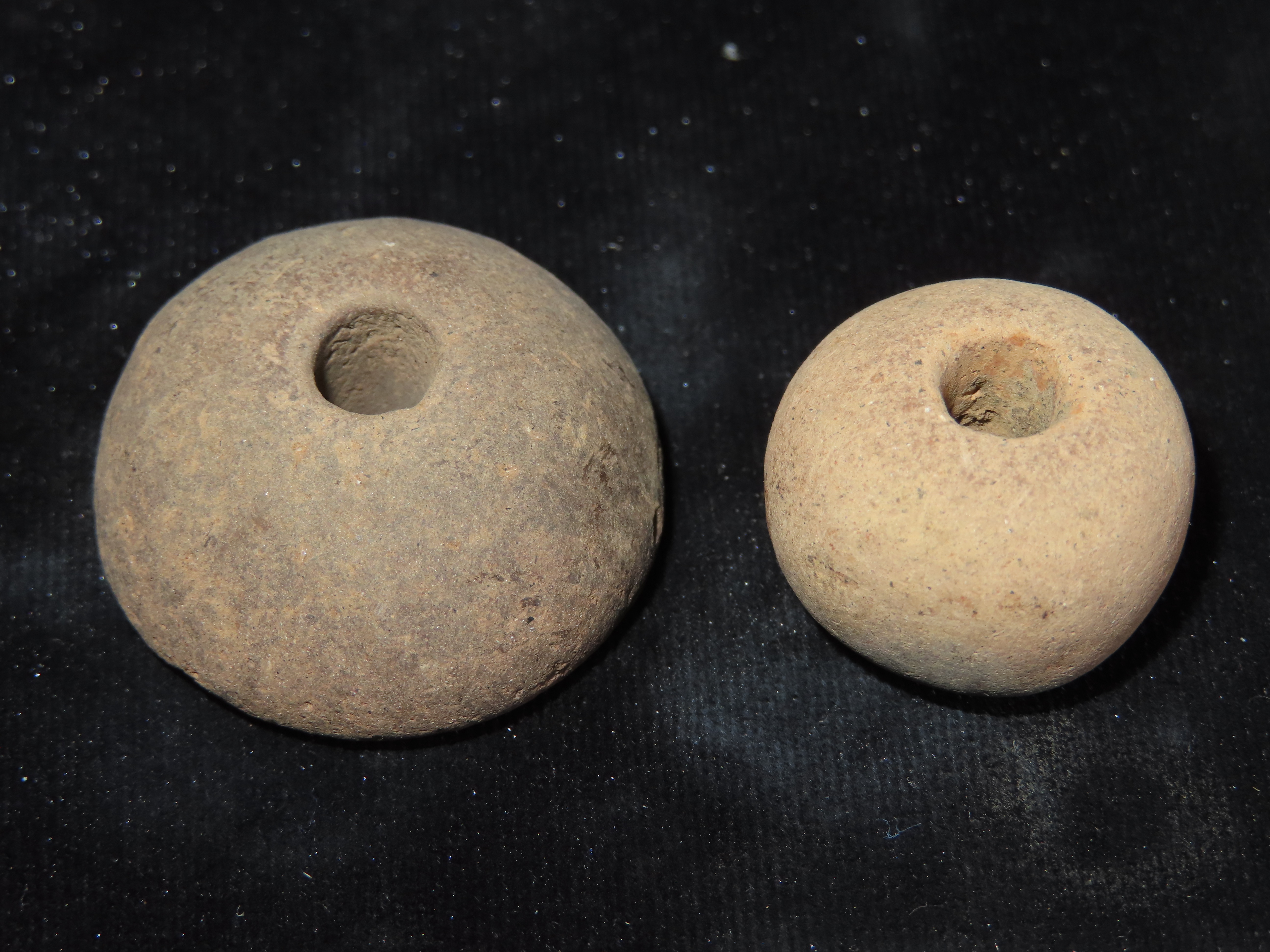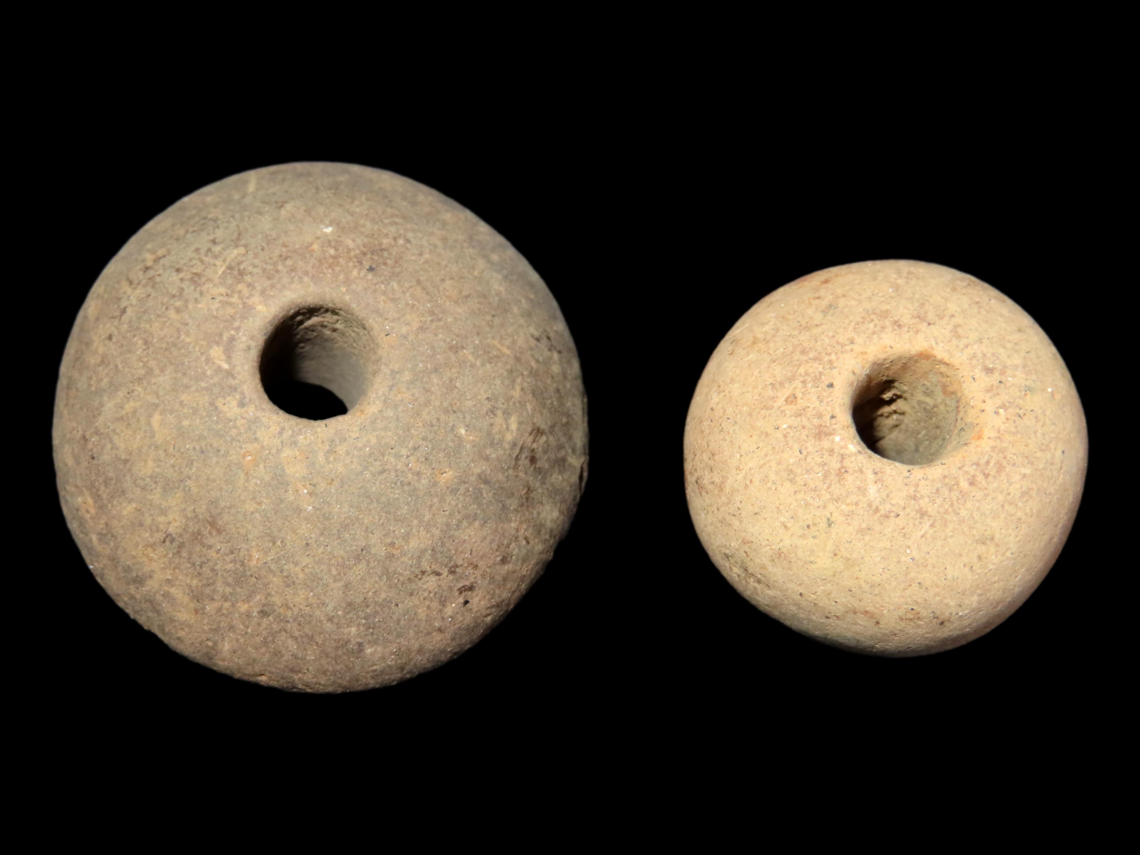 2 Pre Columbian Spindle Whorl Beads,