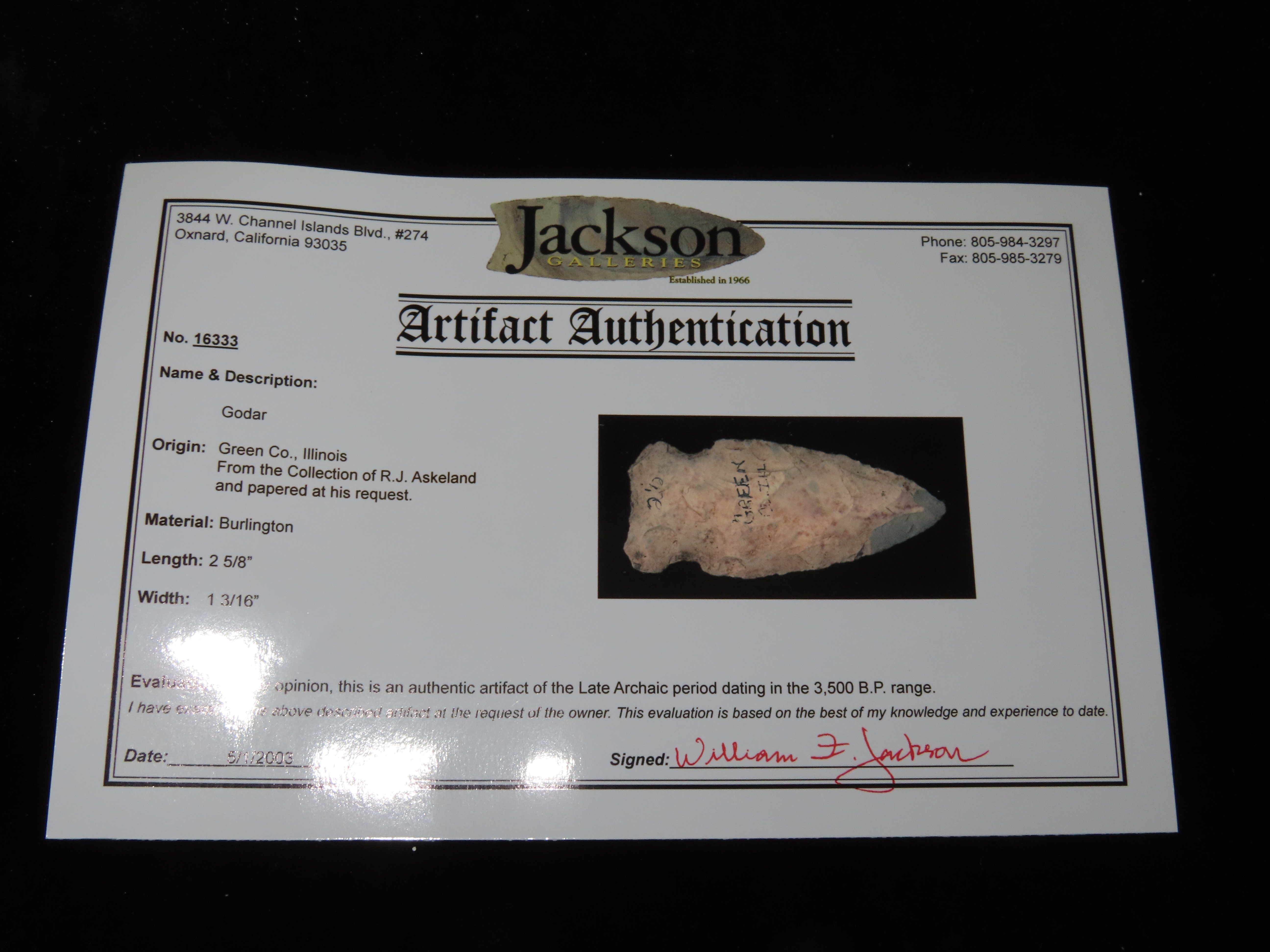 2 5/8″ Godar Pt Keele, COA Greene Co., Illinois, EX Askeland