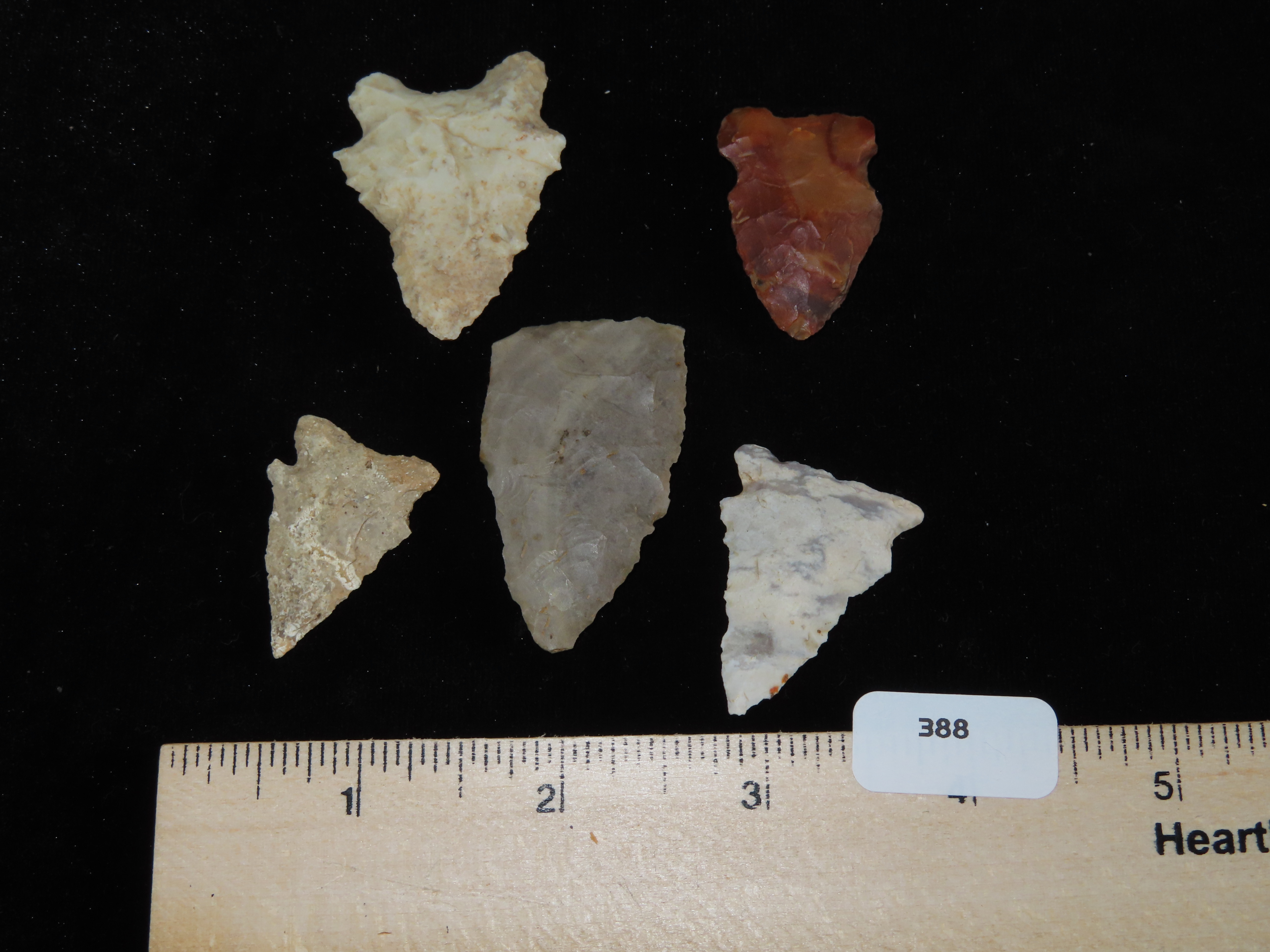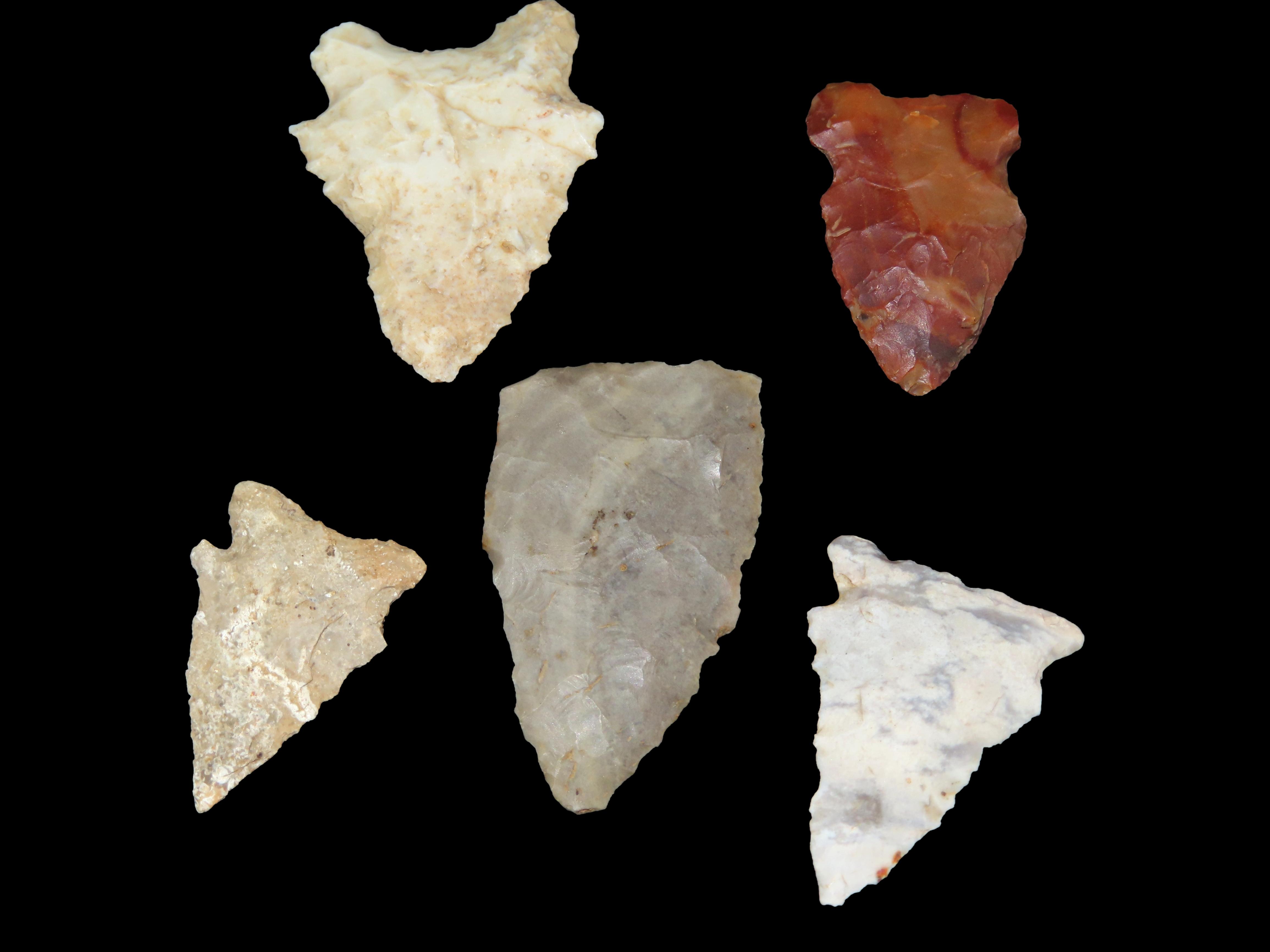 5 Archaic Arrowheads, EX Wilkerson, Pike Co., Illinois