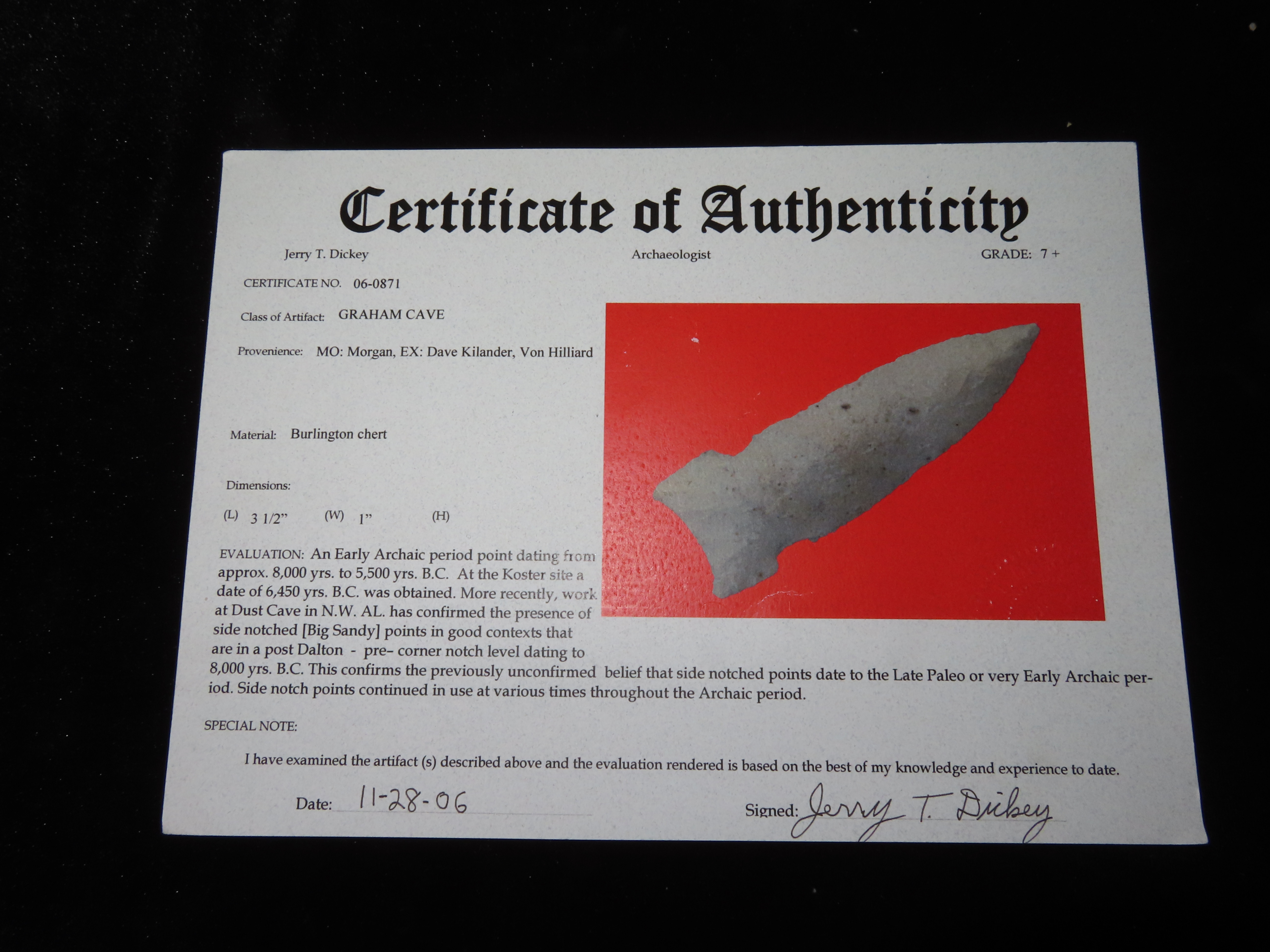 3 1/2 Graham Cave, Dickey COA, Morgan Co. Mo, Ex Dave Kilander