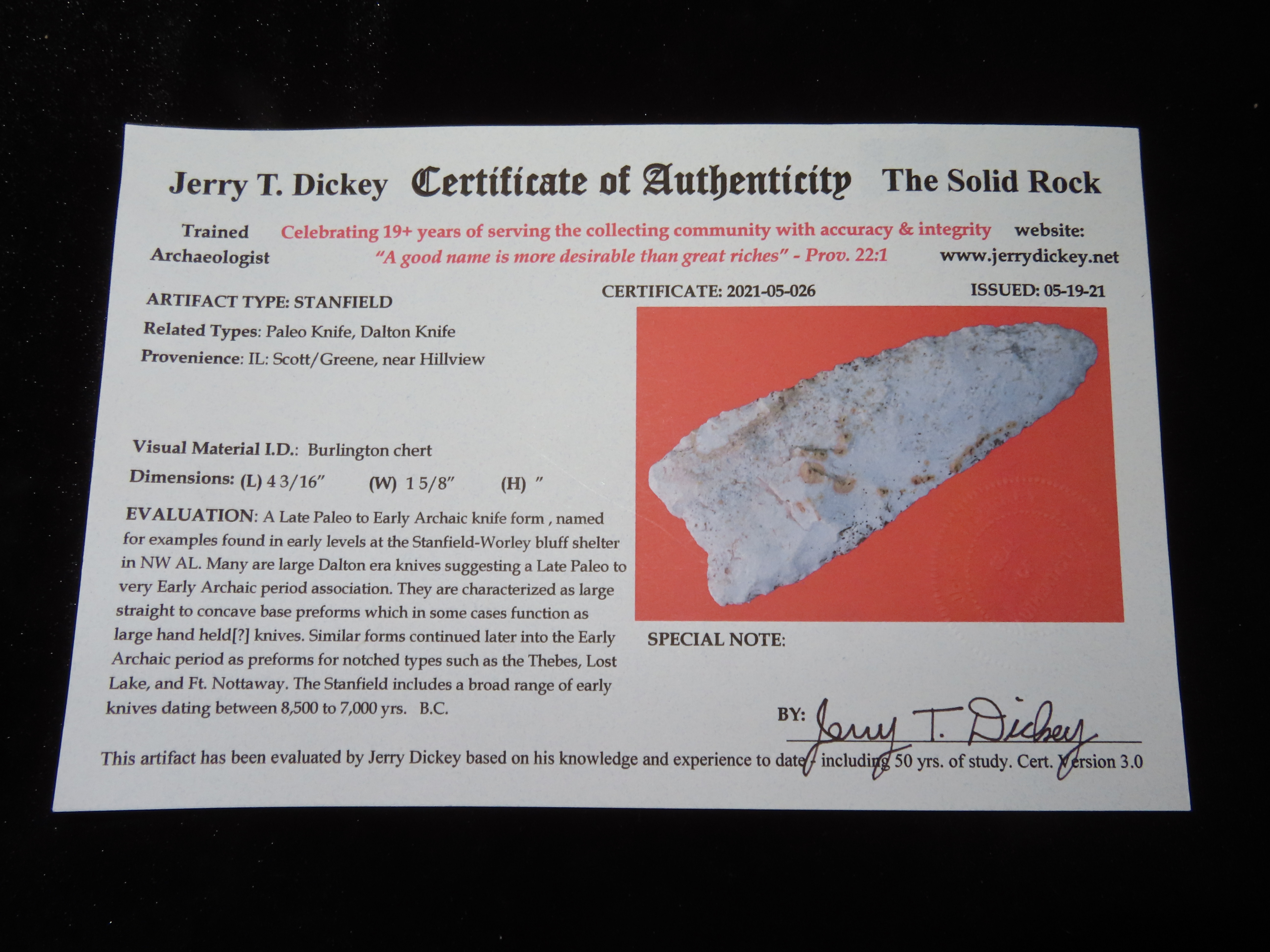 4 3/16″ Stanfield Blade, Dickey COA, South Greene Co. near Hillview